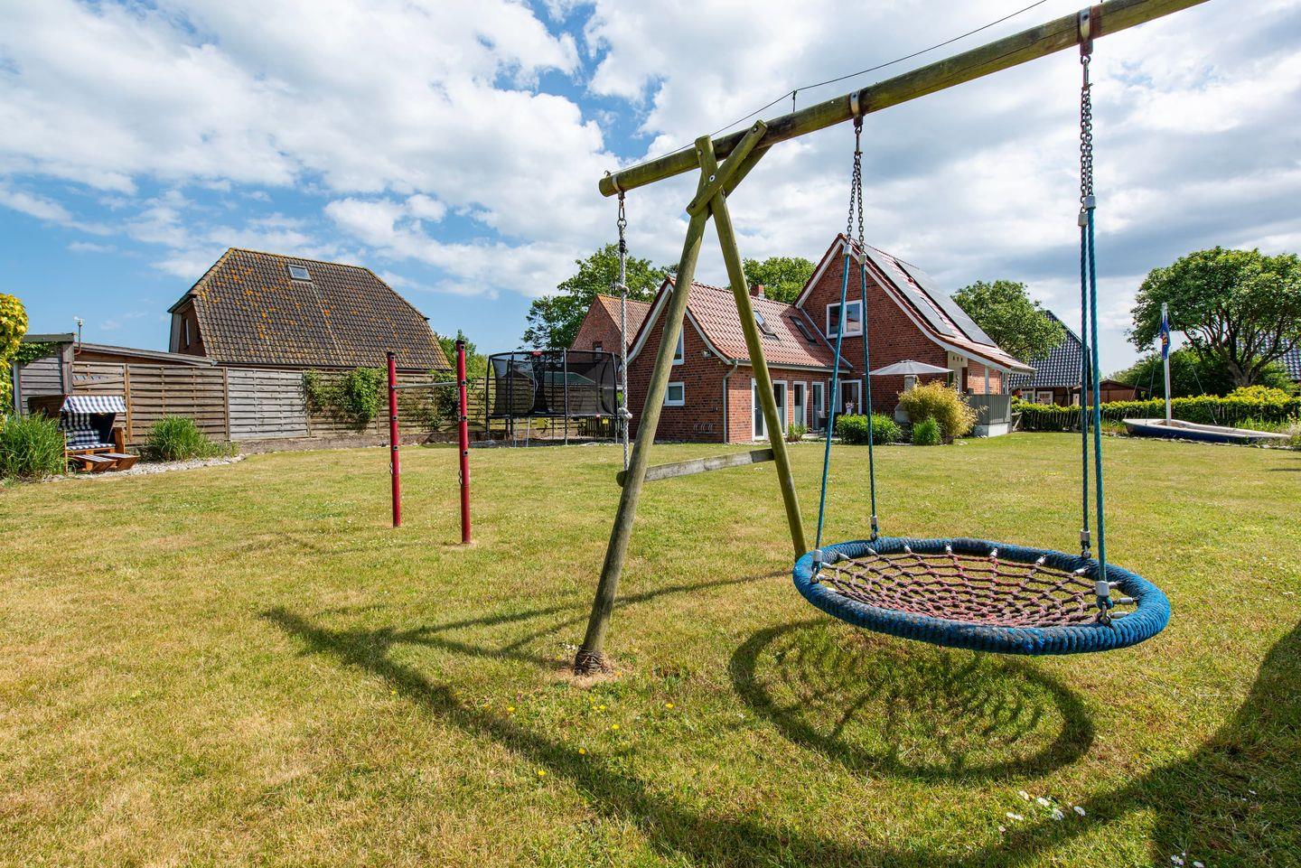 Gerade Familien finden vielfältige Annehmlichkeiten: Ein eigenes Spielzimmer, Kinderspielzeug, sowie praktische Details wie Fliegengitter an den Fenstern, Laminatboden in den Schlafzimmern, Sichtschutz für alle Fenster und eine eigene Waschmaschine sind vorhanden. Im Außenbereich erstreckt sich das 800 m² große Grundstück mit gepflegtem Garten und Liegewiese. Das Angebot für Kinder reicht von Sandkasten, Schaukel, Trampolin bis hin zu einem Strandkorb – ideale Voraussetzungen für Spiel und Erholung an der frischen Ostseeluft. Ein Gartenhaus, ein Kohlegrill und Gartenmöbel bieten den perfekten Rahmen für gesellige Stunden im Freien.