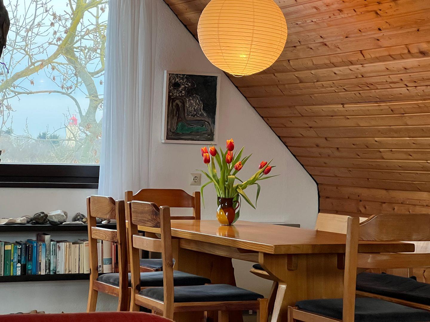 Das freistehende Haus liegt auf einem 1000 m² großen Grundstück mit altem Baumbestand in naturnaher Lage, das gerne von Rehen, Hasen und einer Vielzahl von Vögeln besucht wird.