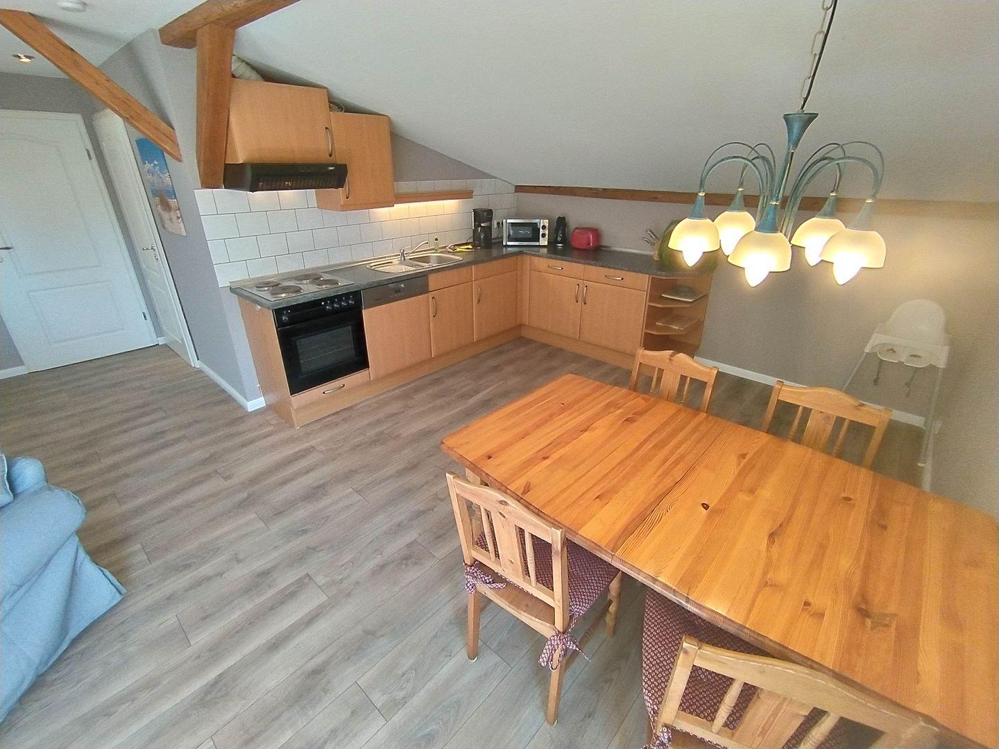 Sie genießen einen gemütlichen Wohnbereich für entspannte Abende und eine gut ausgestattete Küche.