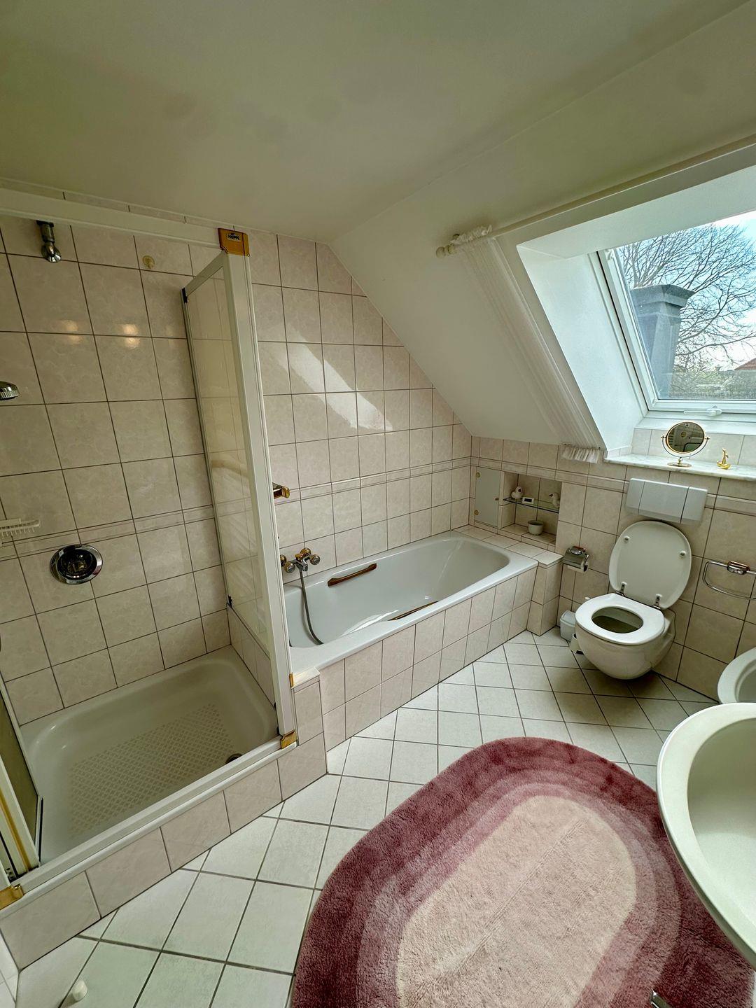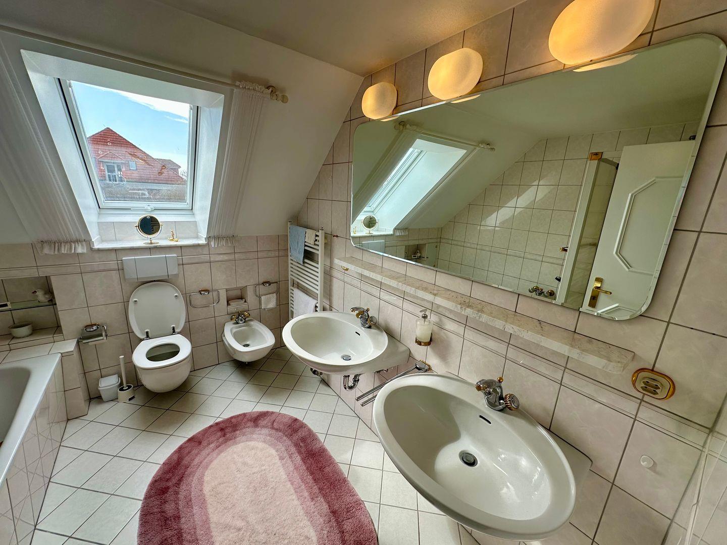 ? Vollbad mit 2 Waschbecken, Bidet, Toilette, Badewanne, Dusche, Föhn und
