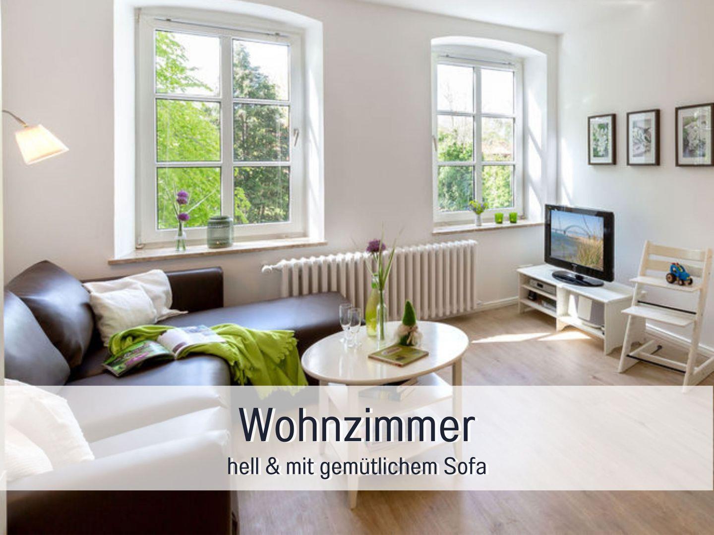 Willkommen in der „Rosmarin“! Diese helle Ferienwohnung für bis zu 4 Personen liegt im 1. Obergeschoss unseres historischen Gebäudes, der „Alten Meierei“. Hier wohnt ihr mittendrin und doch gemütlich für euch. Das Herzstück ist der Wohnbereich: Dank der Ausrichtung nach Süden habt ihr hier fast den ganzen Tag Sonne. Große Fenster sorgen für eine freundliche Atmosphäre beim Frühstück am großen Esstisch oder beim Entspannen auf der Sofaecke.