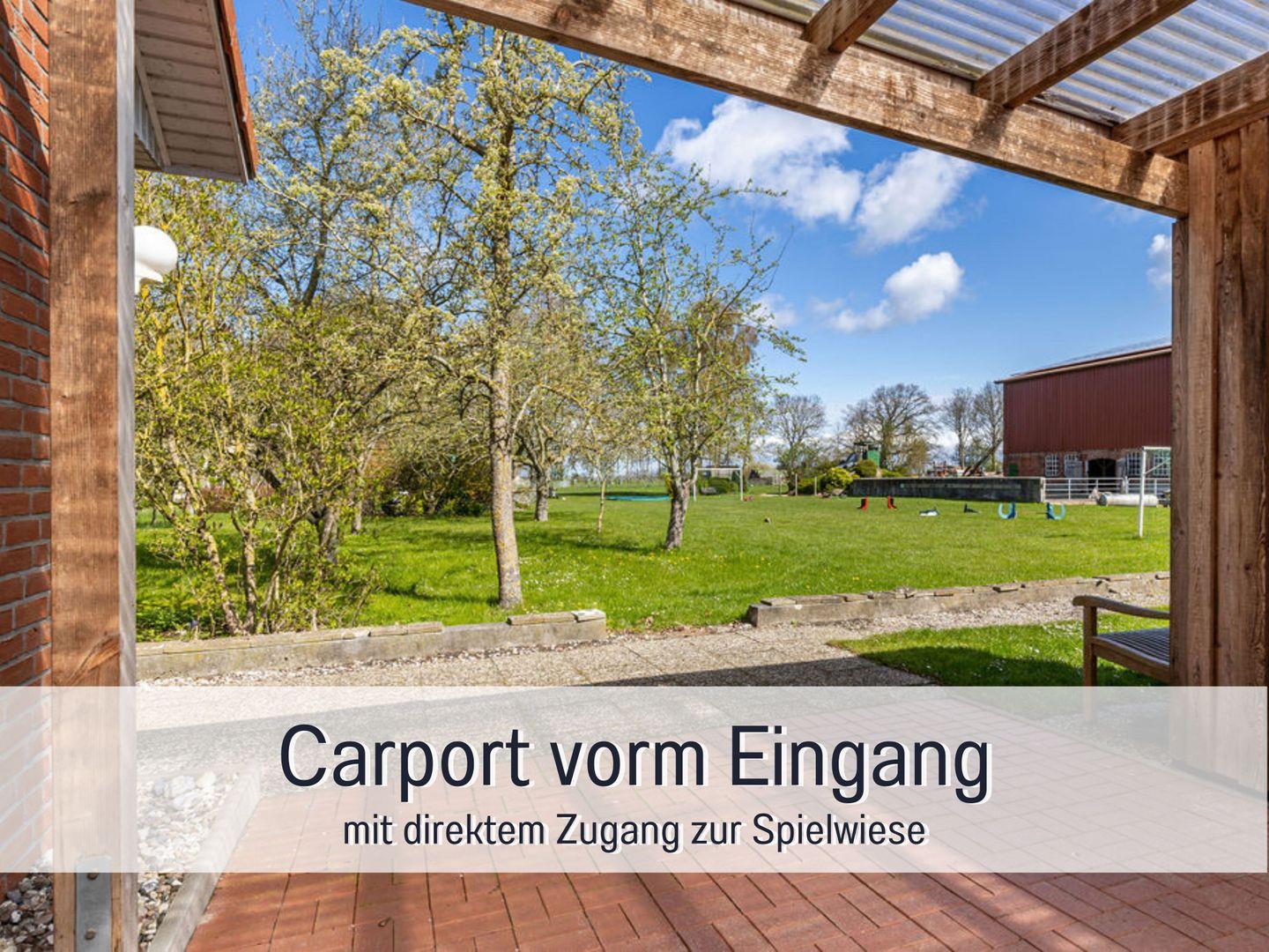 Direkt am Haus stehen euch zwei Parkplätze sowie ein Carport mit Schuppen zur Verfügung – perfekt, um Fahrräder oder Kinderwagen sicher und trocken unterzustellen.