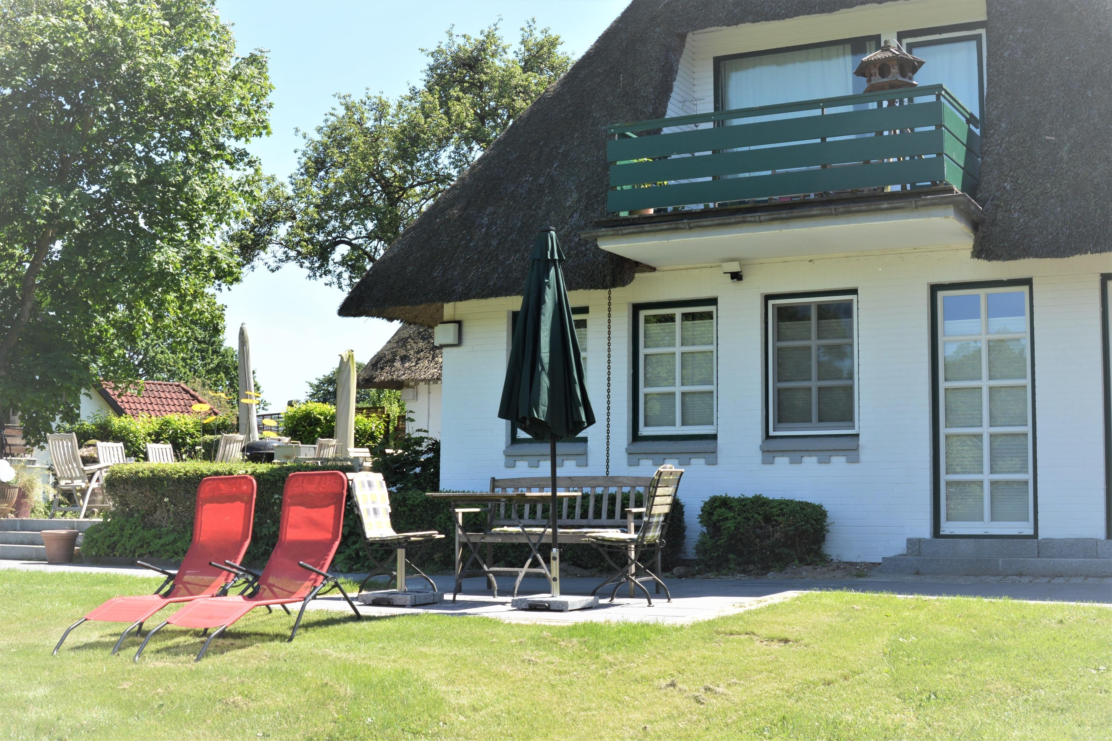 Die neu ausgebaute, moderne und anspruchsvolle 40 qm Ferienwohnung im reetgedeckten Landhaus im Erdgeschoss hat einen direkten Zugang zum parkähnlichen, 2 ha großen Garten. Gartennutzung mit Gartenmöbeln und Grillmöglichkeit.