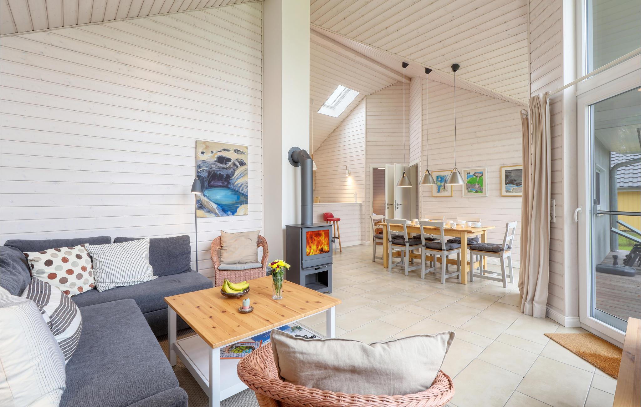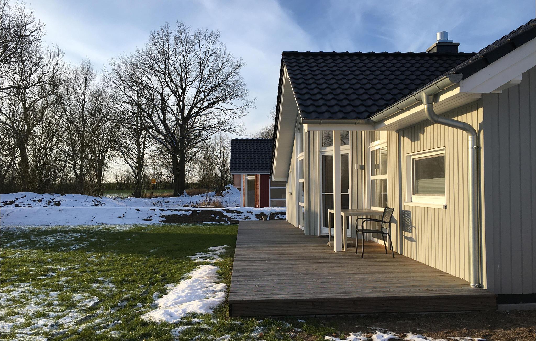 Modernes Holzferienhaus mit Sauna und Kamin am Wardersee für erholsame Familienzeit.