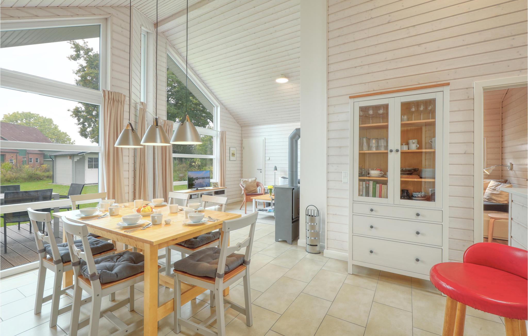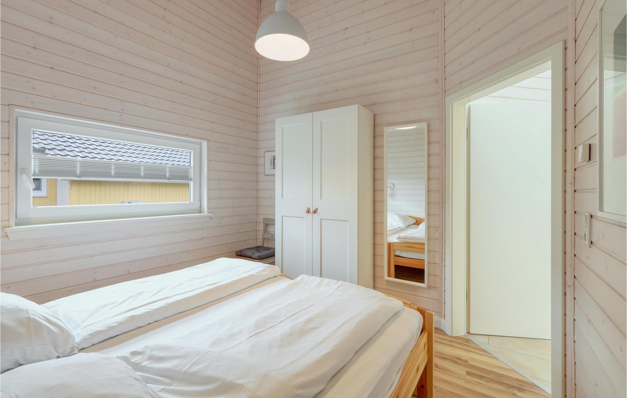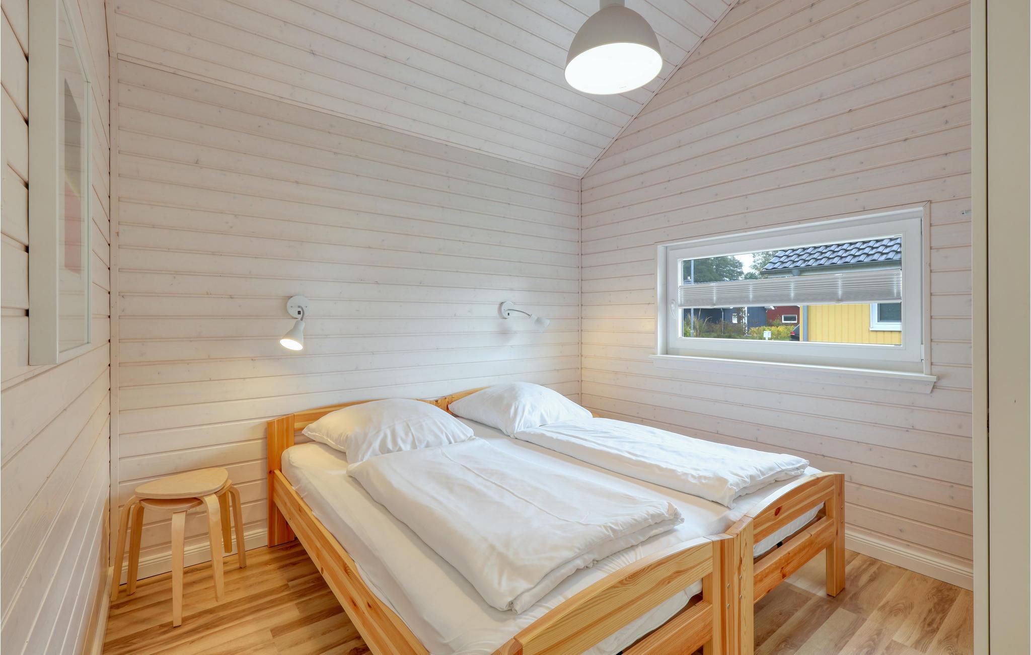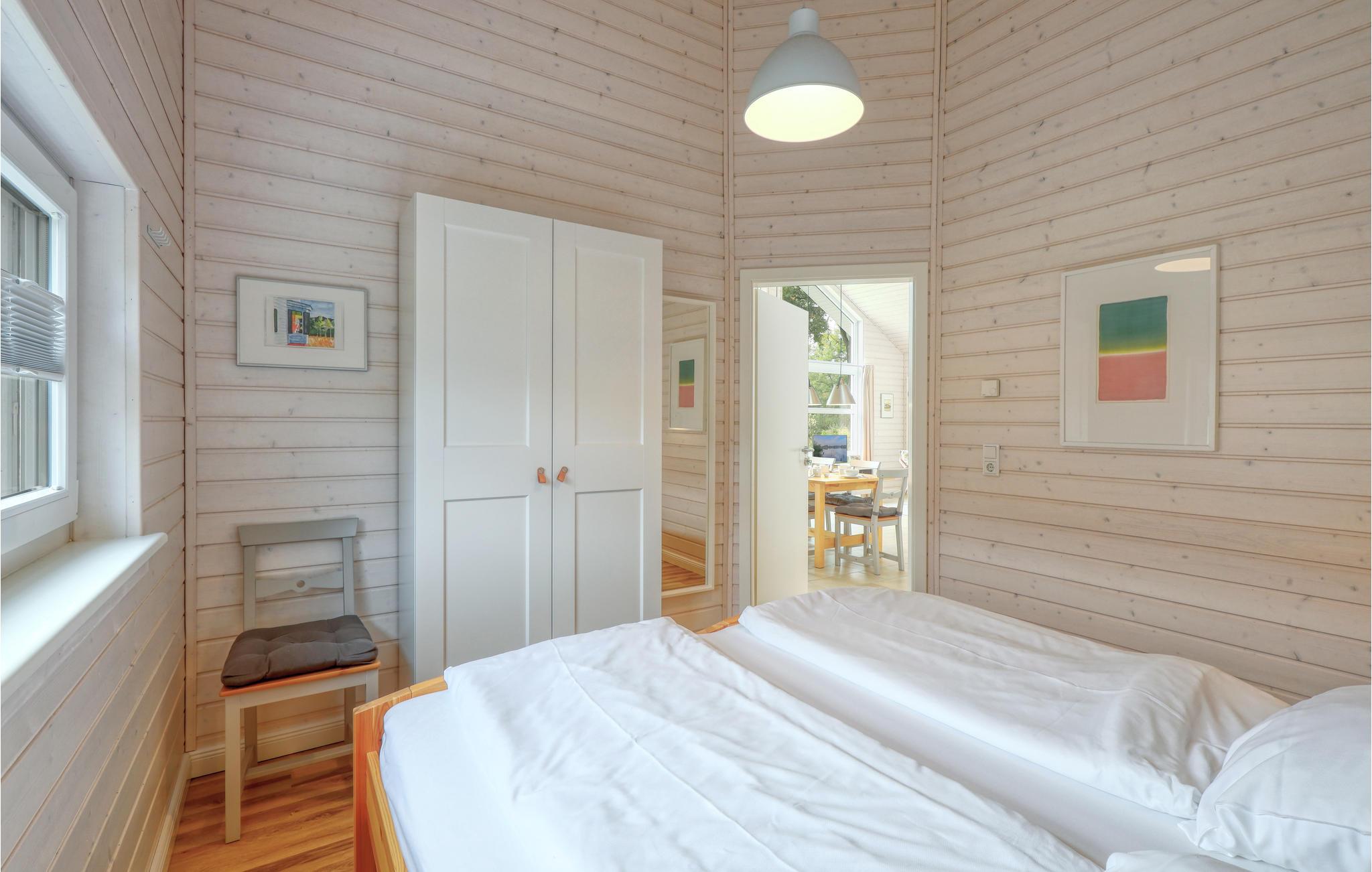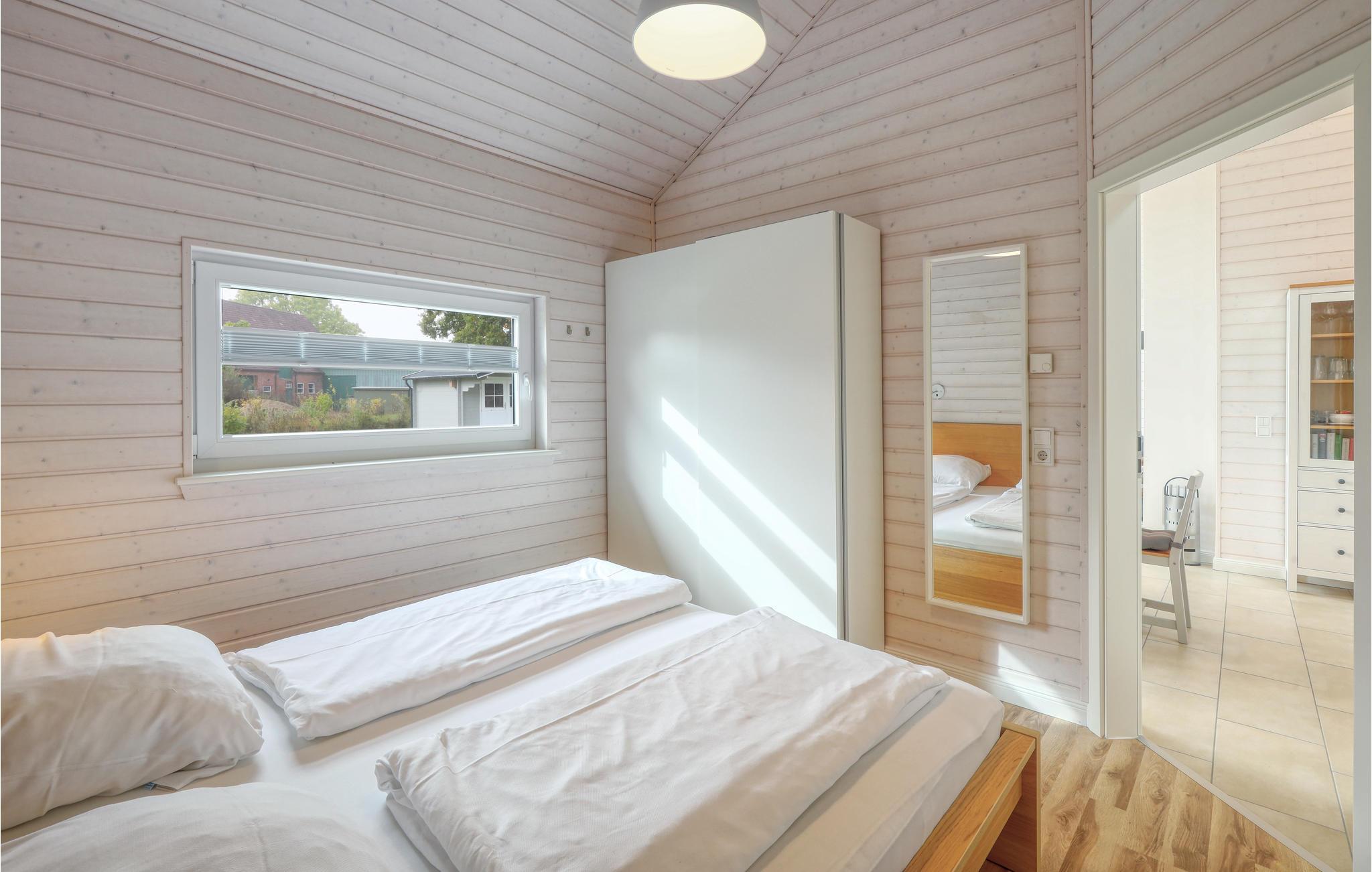 Verbringen Sie einen erholsamen Urlaub in diesem einladenden und modernen Holzferienhaus im Feriendorf Wadersee mit Platz für bis zu 6 Personen. Im 1. Schlafzimmer befindet sich ein Doppelbett, im 2. Schlafzimmer können Sie die Betten auch zu Einzelbetten auseinander schieben und im 3. Schlafzimmer das Einzelbett zu einem Doppelbett ausziehen. Entspannen Sie sich in der Sauna oder machen Sie es sich am Kaminofen im Wohnzimmer gemütlich und genießen Sie eine unbeschwerte Zeit mit Ihren Lieben.