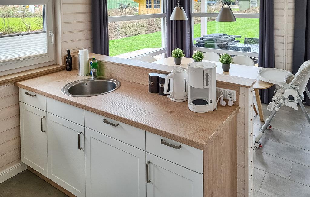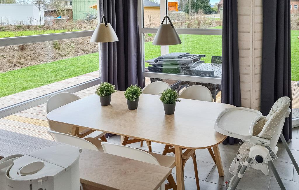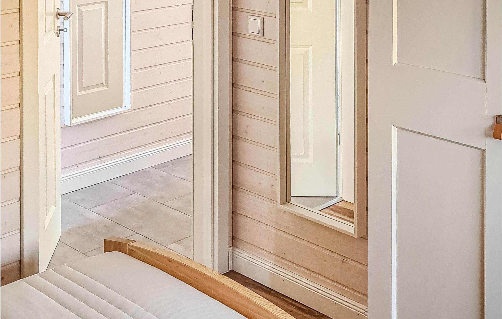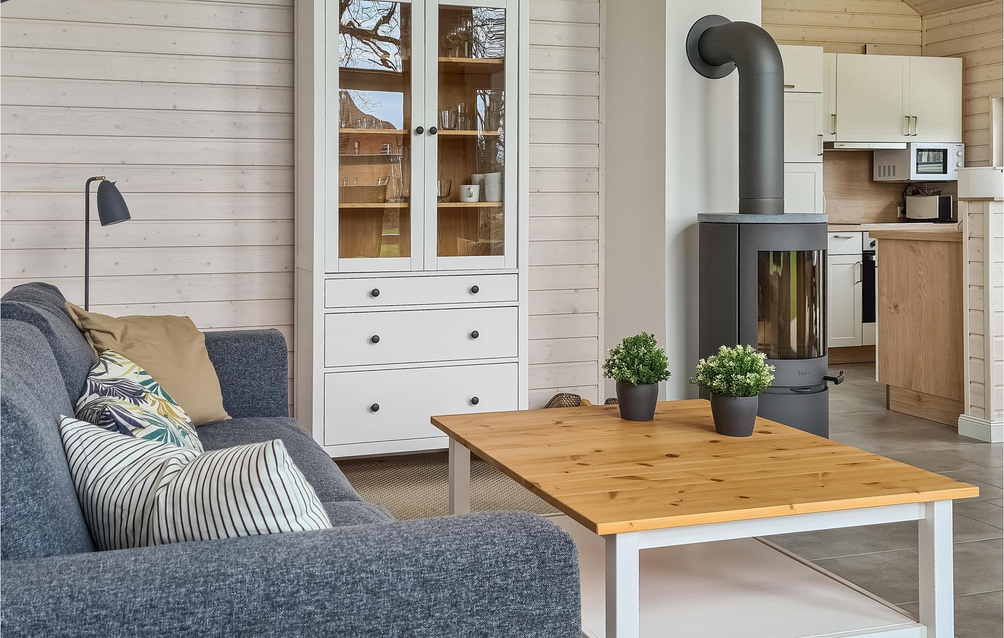 Das moderne Holzhaus überzeugt durch den skandinavischen Stil und bietet ausreichend Platz für 4 Erwachsene und 2 Kinder. Aufgrund der firsthoch offenen Decke genießen Sie hier ein angenehmes Raumgefühl und lichtdurchflutete Zimmer. Die Einrichtung in hellen Tönen trägt zur Gemütlichkeit bei.