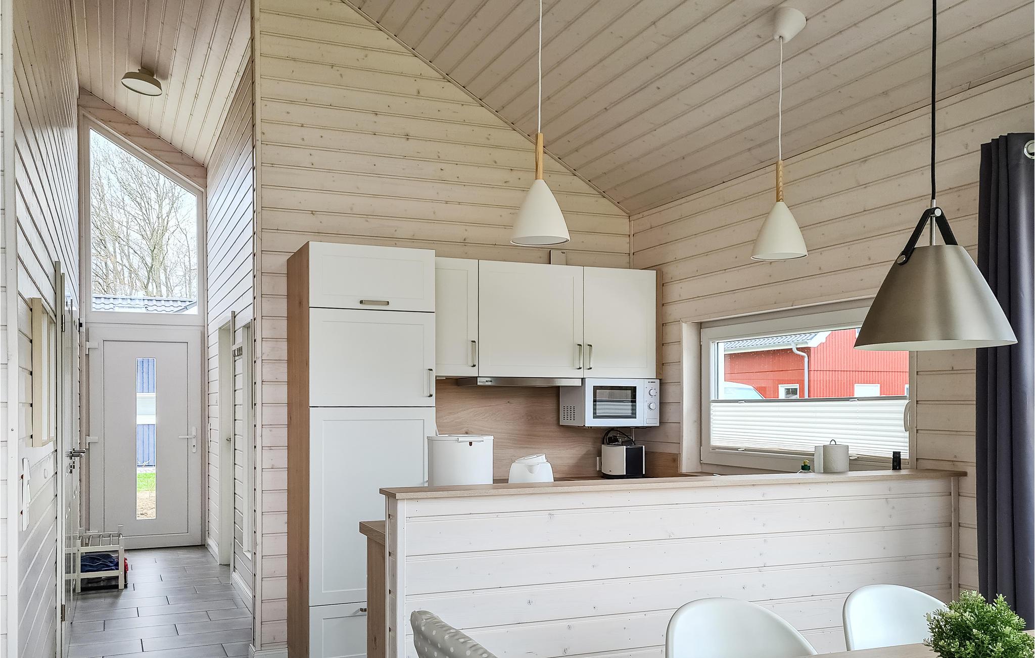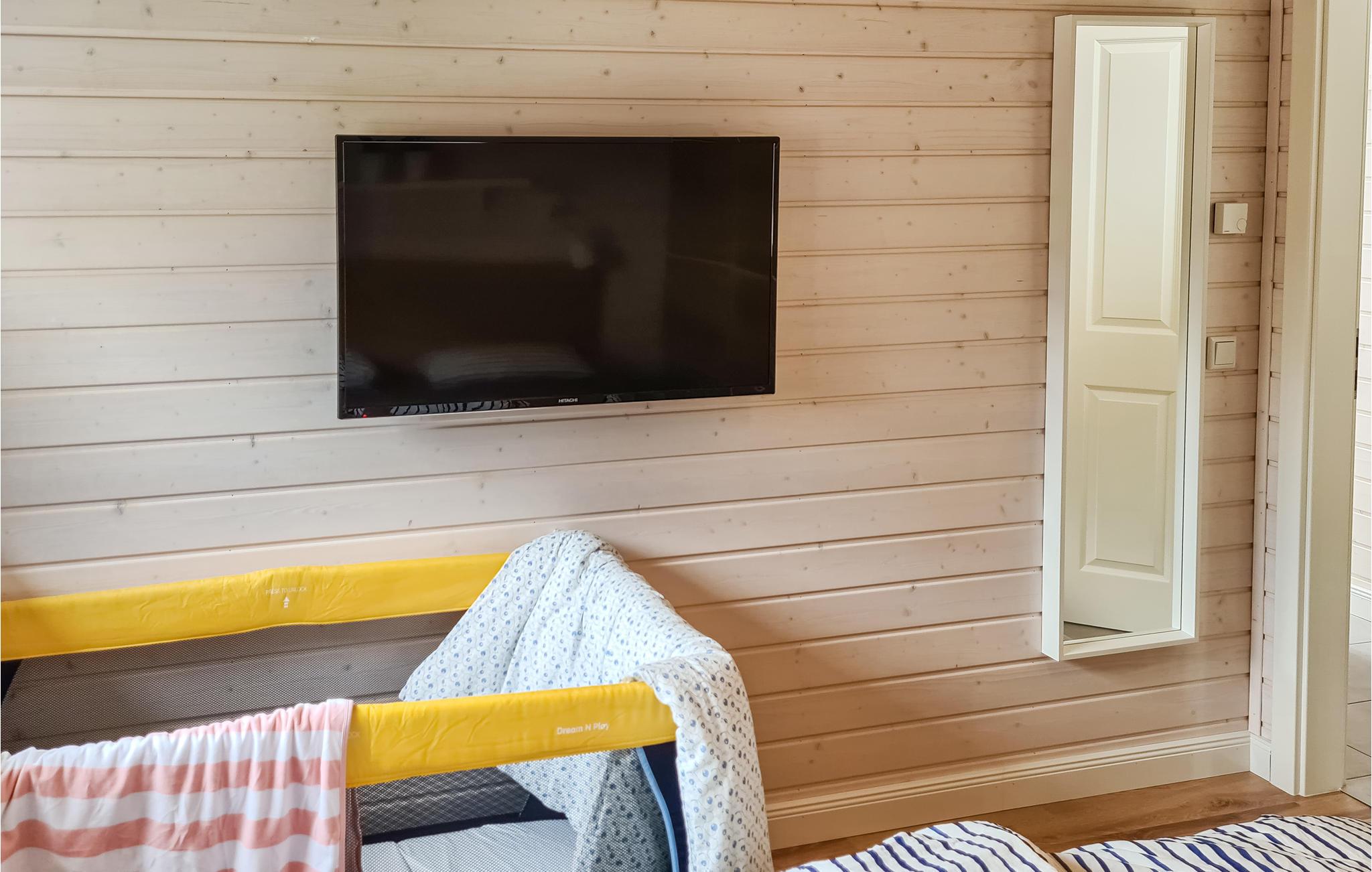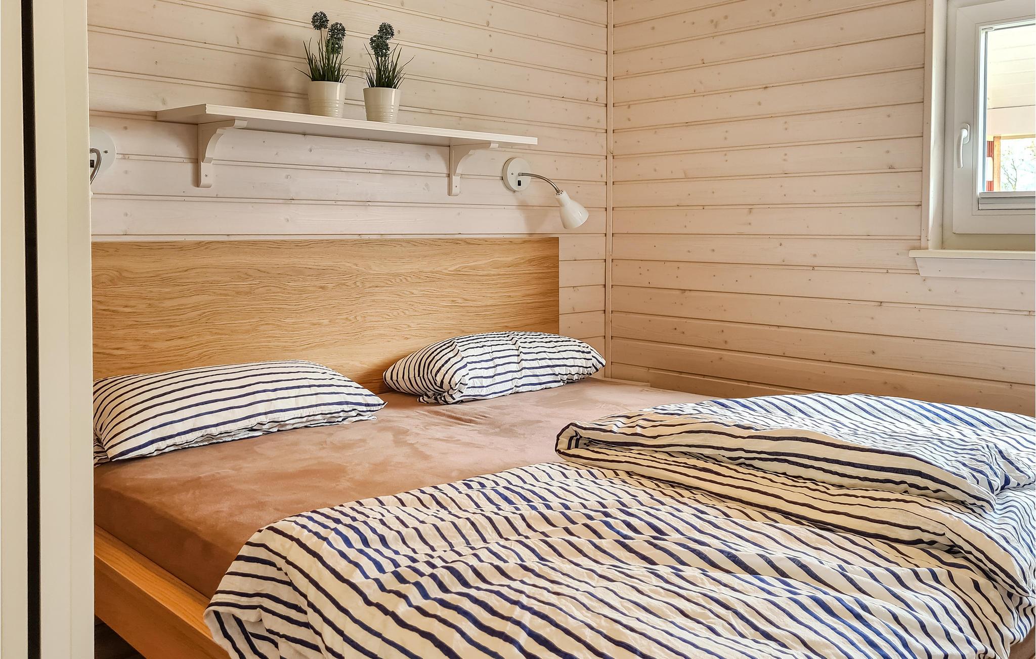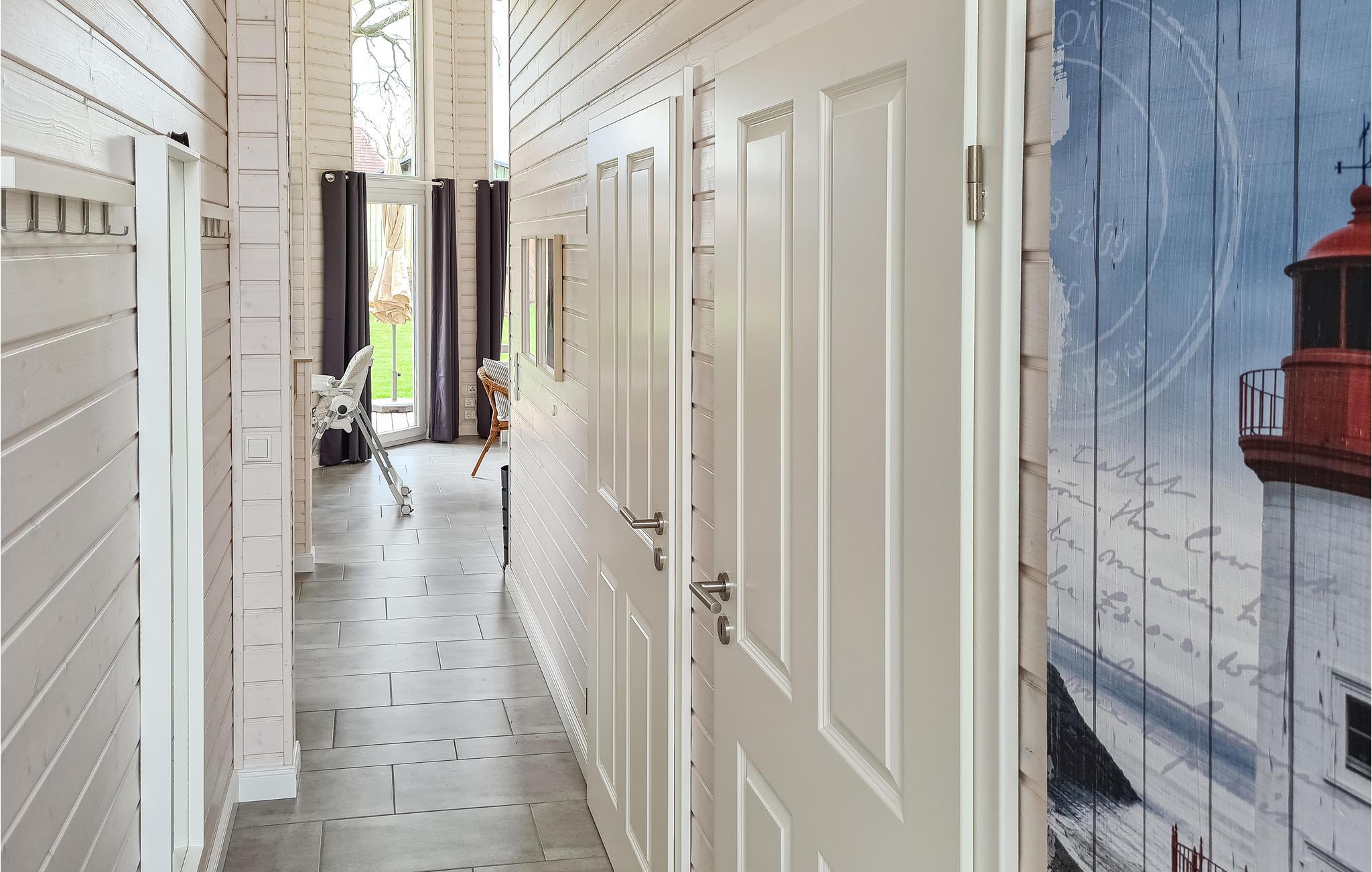Das moderne Holzhaus überzeugt durch den skandinavischen Stil und bietet ausreichend Platz für 4 Erwachsene und 2 Kinder. Aufgrund der firsthoch offenen Decke genießen Sie hier ein angenehmes Raumgefühl und lichtdurchflutete Zimmer. Die Einrichtung in hellen Tönen trägt zur Gemütlichkeit bei.