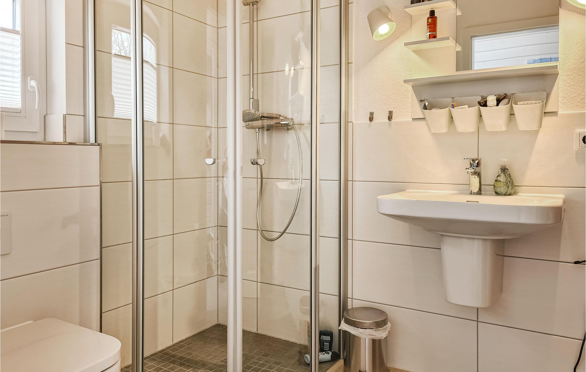 Das erste Schlafzimmer ist mit einem Doppelbett ausgestattet, im zweiten Schlafzimmer befinden sich zwei Einzelbetten. Auf dem Schlafsofa im Wohnbereich können die Kinder ihr Nachtlager aufschlagen. Die Küche befindet sich ohne Tür in einem separaten Raum und ist hochwertig ausgestattet. Der Tiefkühlschrank bietet ausreichend Platz zum Kühlen der geangelten Fische.