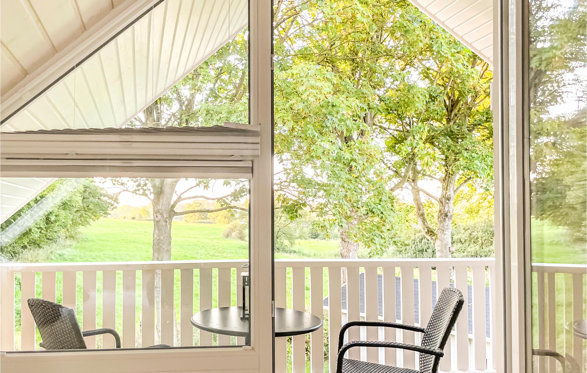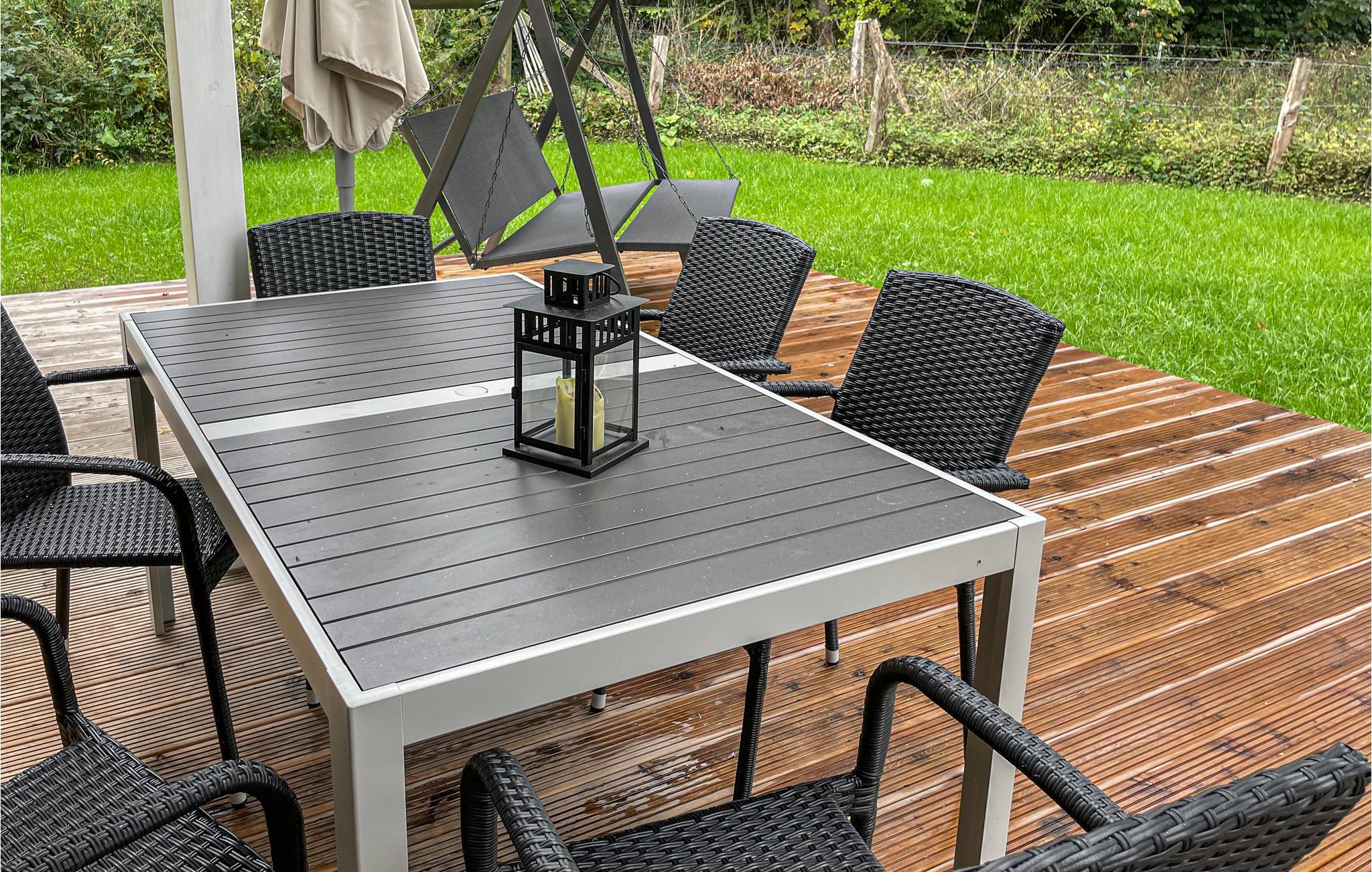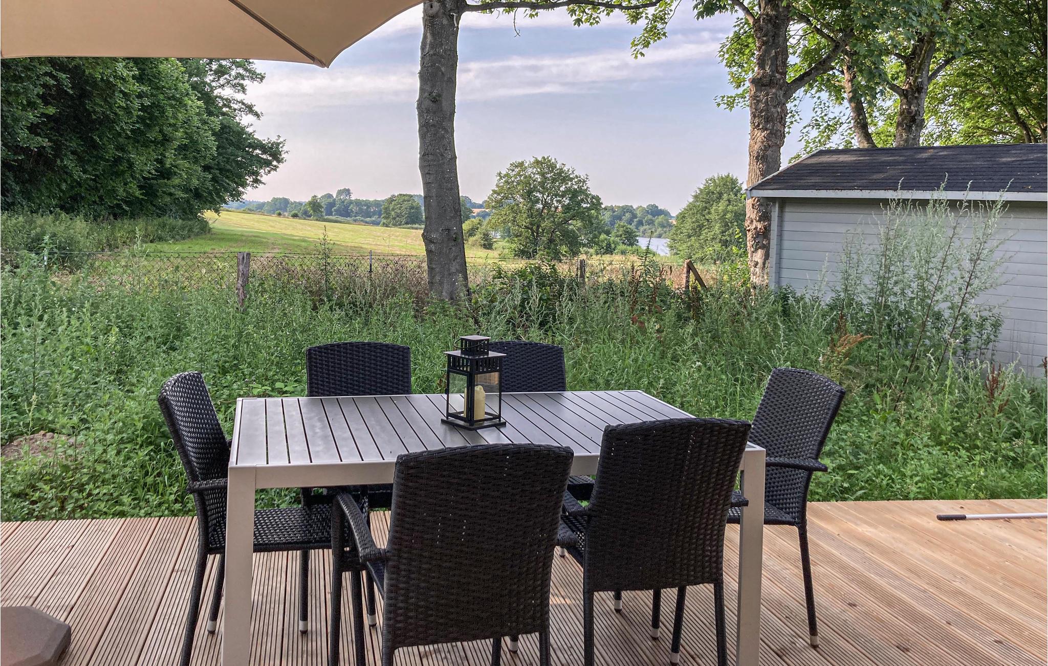 Zu dem Haus gehören 4 Fahrräder, mit denen Sie die Gegend erkunden können. In den Außenbereichen und der großzügigen Terrasse mit Hollywoodschaukel können Sie herrlich entspannen und mit der ganzen Familie frühstücken oder grillen. Von der Terrasse und vom Balkon hat man einen schönen Blick übers Feld und kann auch den See sehen. An verregneten Tagen können Sie sich in der Sauna aufwärmen und es sich anschließend vor dem Kaminofen im Wohnbereich gemütlich machen.