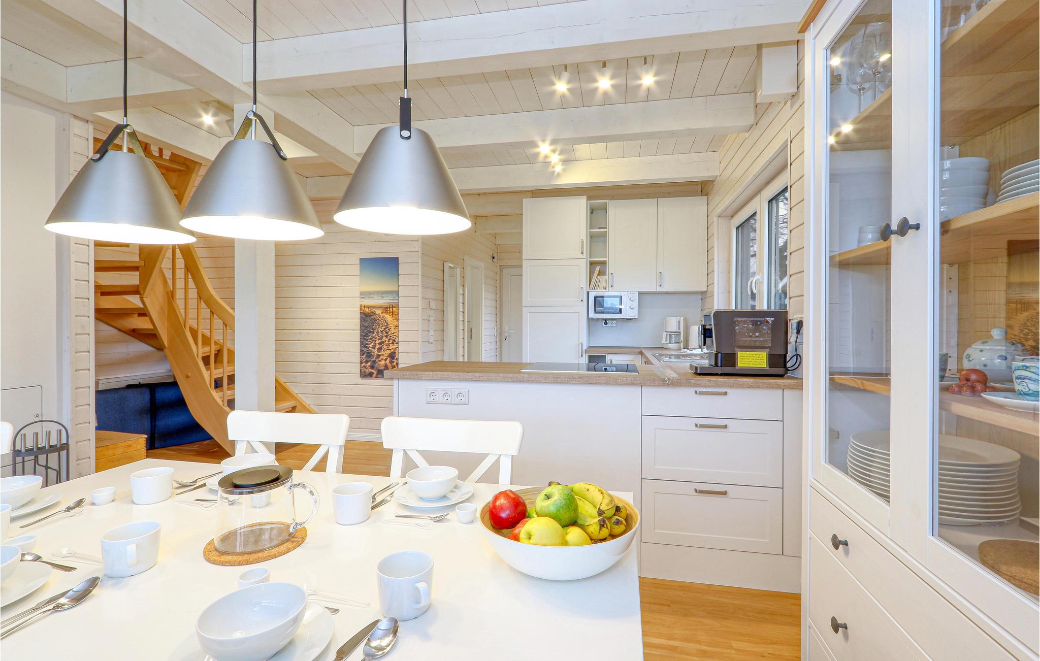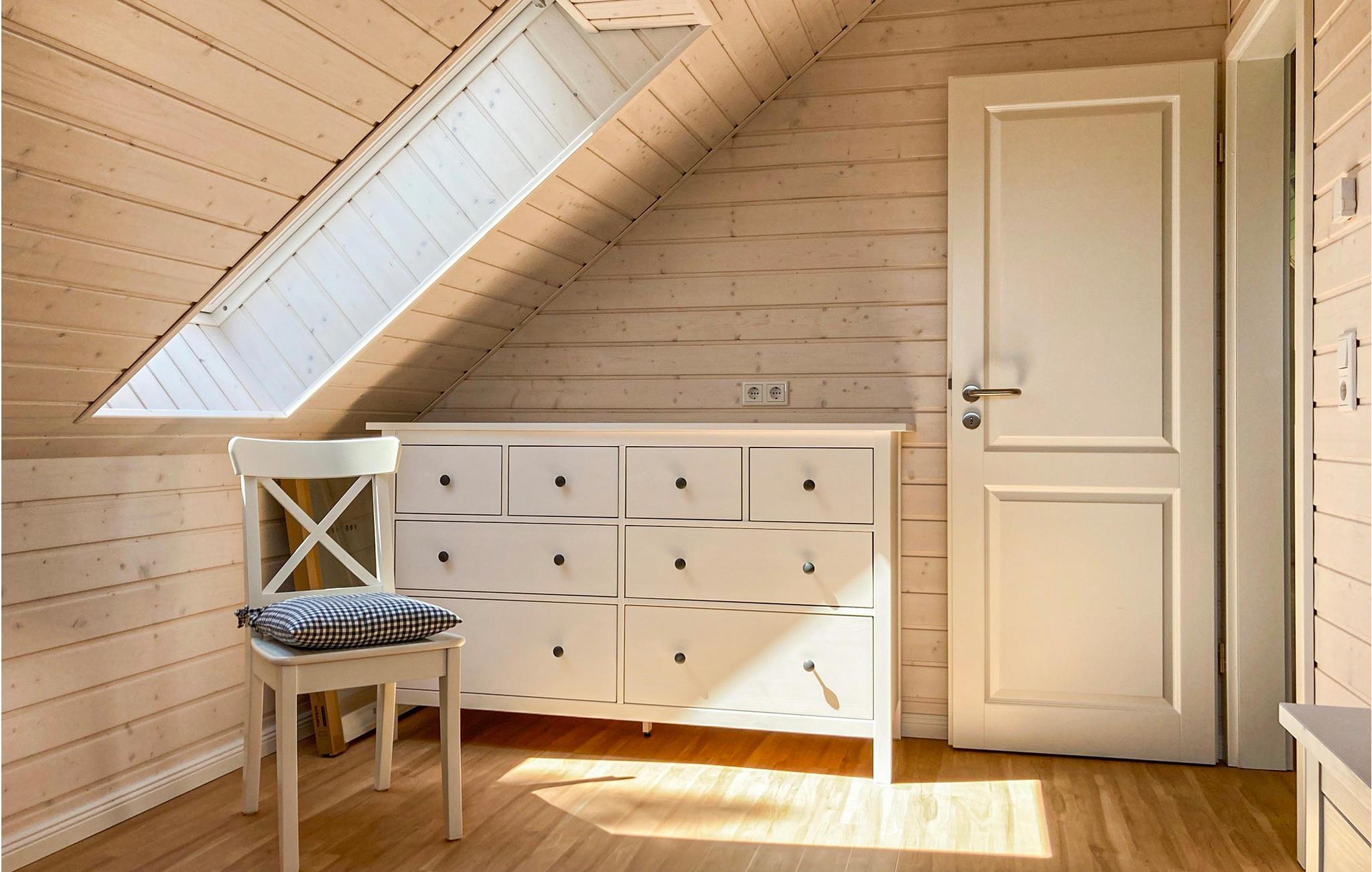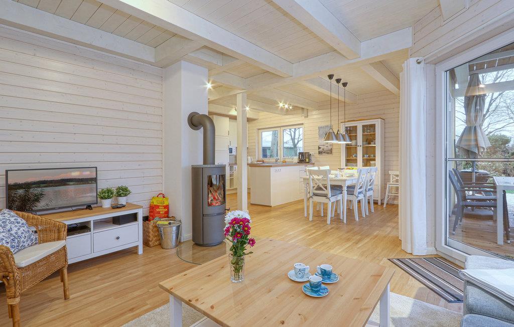 Das großzügige Holzhaus liegt nur wenige Meter von der Badestelle entfernt. Es überzeugt durch den skandinavischen Stil und bietet auf zwei Etagen ausreichend Platz für 6 Personen. Große und kleine Kinder werden sich hier wohlfühlen. Für draußen stehen Fußball und -tore, Volleyball und -netz, Badmintonset und Aquaplay bereit, aber auch drinnen ist mit LEGO, DUPLO, Bauklötzen und (Kinder-)Büchern und Gesellschaftsspielen für Abwechslung gesorgt.
