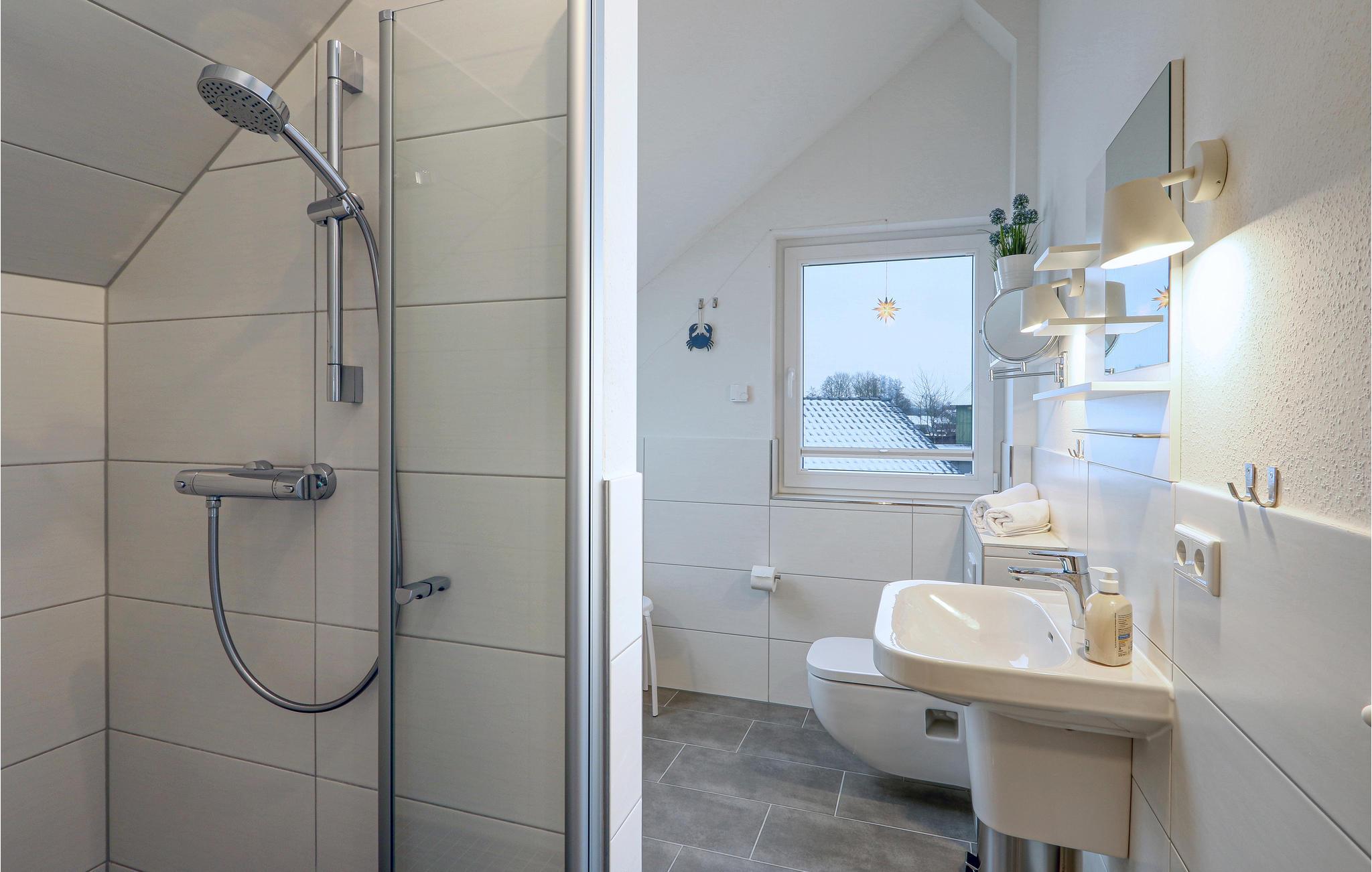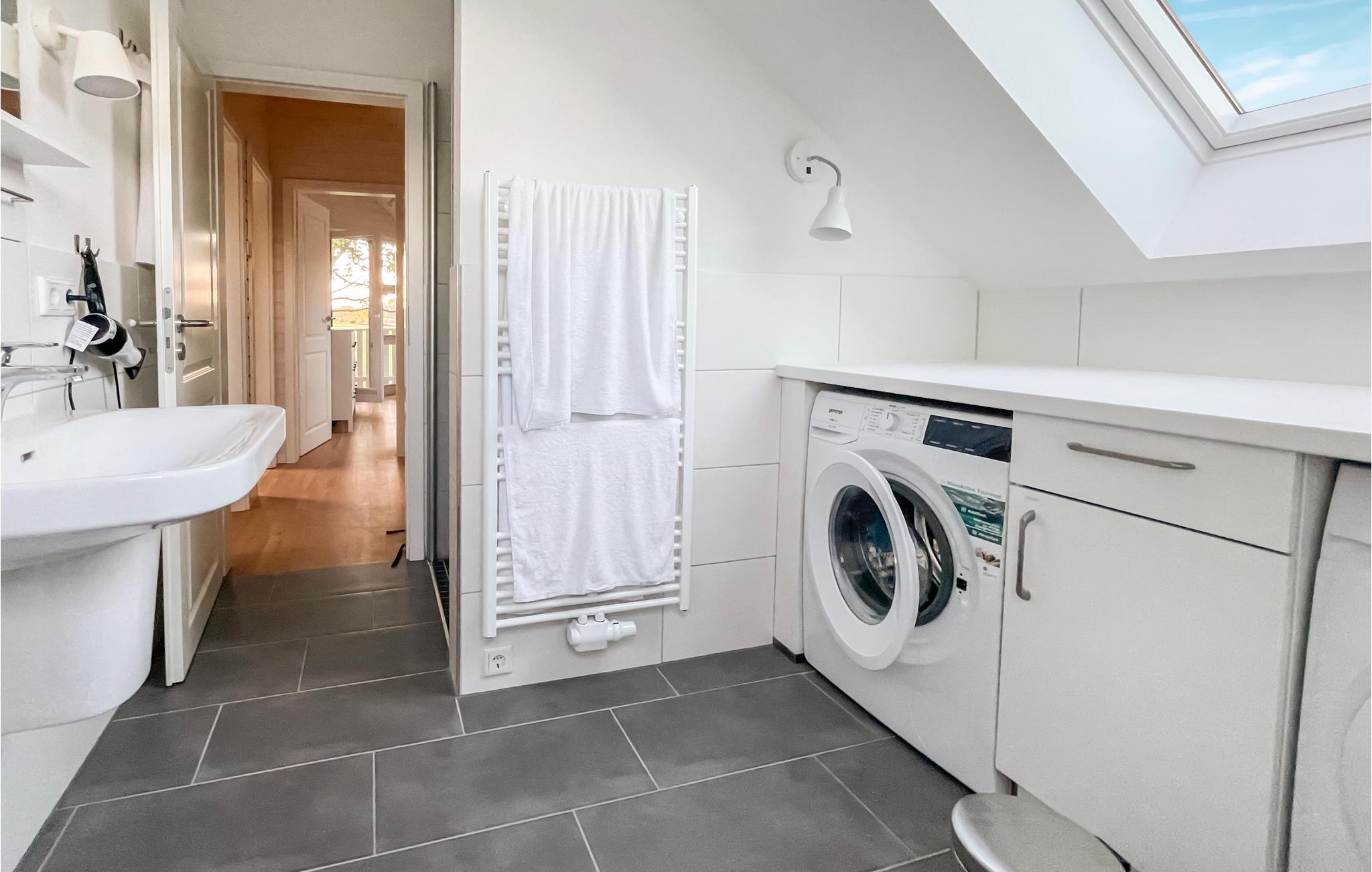 Die hochwertig eingerichteten Schlafzimmer befinden sich im 1. Obergeschoss. Im oberen Bad finden Sie auf Waschmaschine und Trockner eine großzügige Arbeitsfläche, die sich für Wäsche und als Wickelplatz eignet. In Schlafraum 3 befindet sich ein kleiner Schreibtisch. Das Sofa im Wohnzimmer hat eine hochwertige Kaltschaummatraze, damit auch ein Sofagast erholsamen Schlaf finden kann.