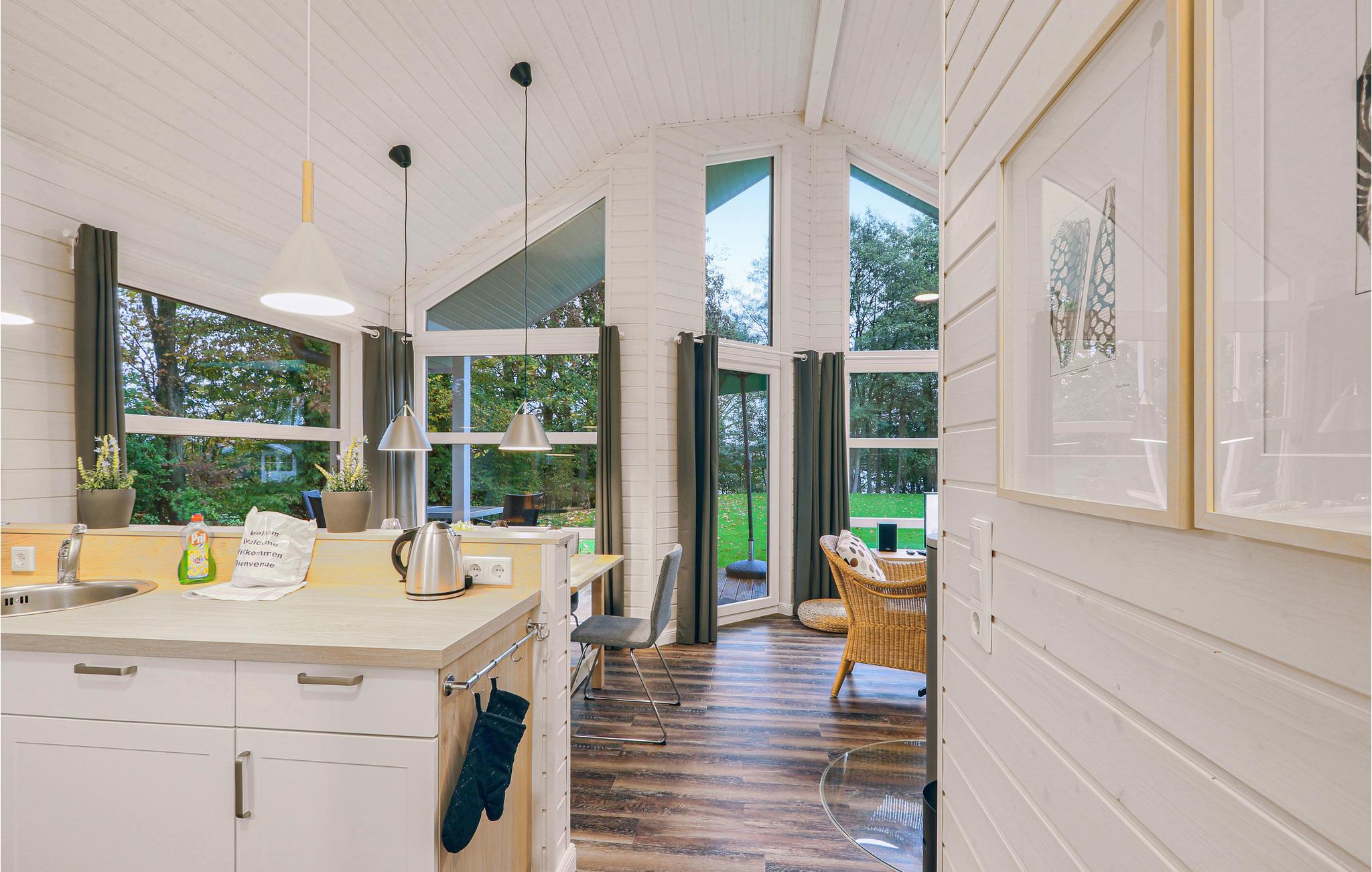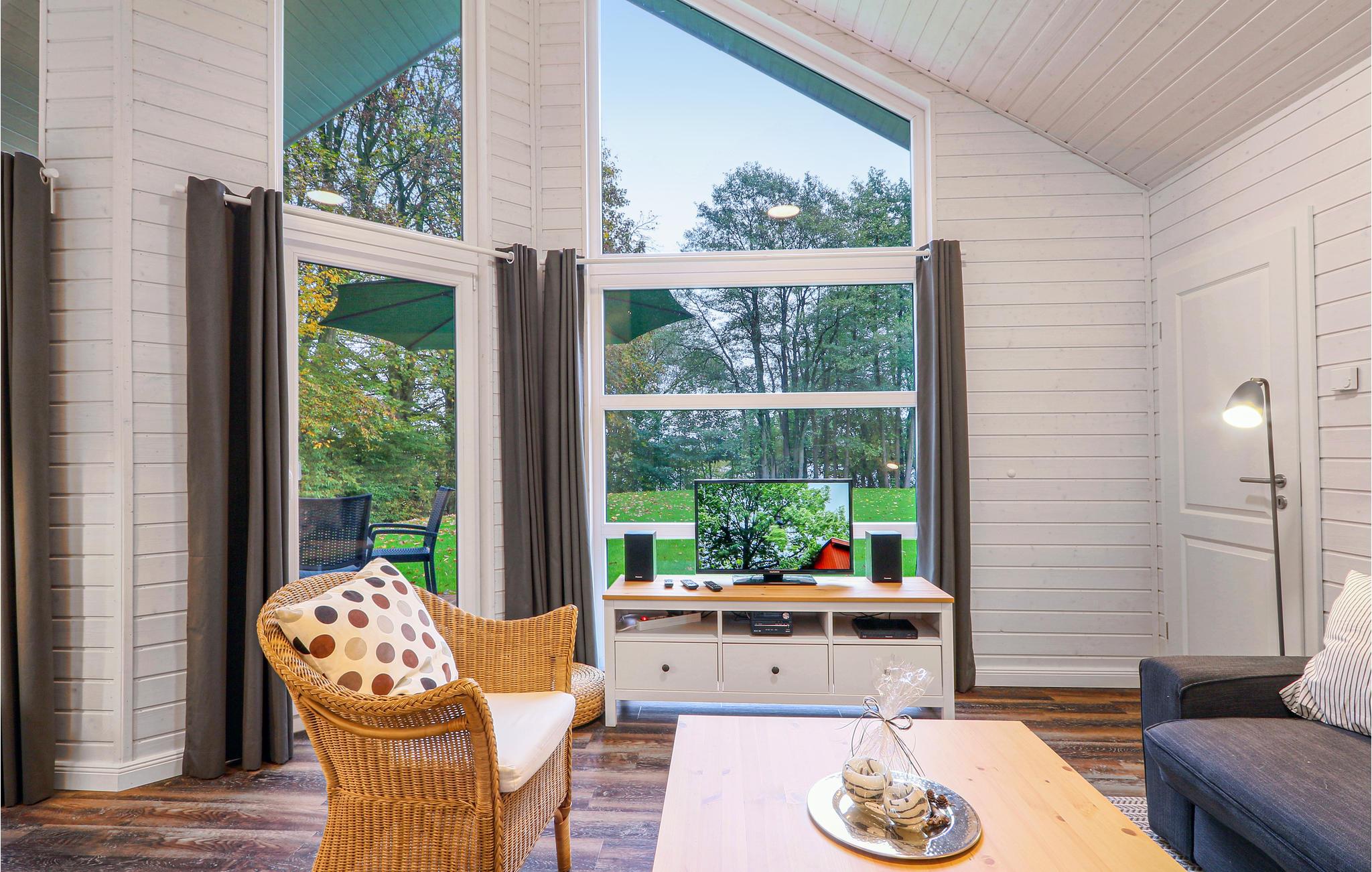 Das moderne Holzhaus „Waldliebe“ liegt am Rande des Ferienparks und überzeugt durch den skandinavischen Stil. Hier haben Sie ausreichend Platz für 4 Erwachsene und 2 Kinder. Aufgrund der firsthoch offenen Decke genießen Sie hier ein angenehmes Raumgefühl und lichtdurchflutete Zimmer. Die maritime Einrichtung in hellen Tönen trägt zur Gemütlichkeit bei.