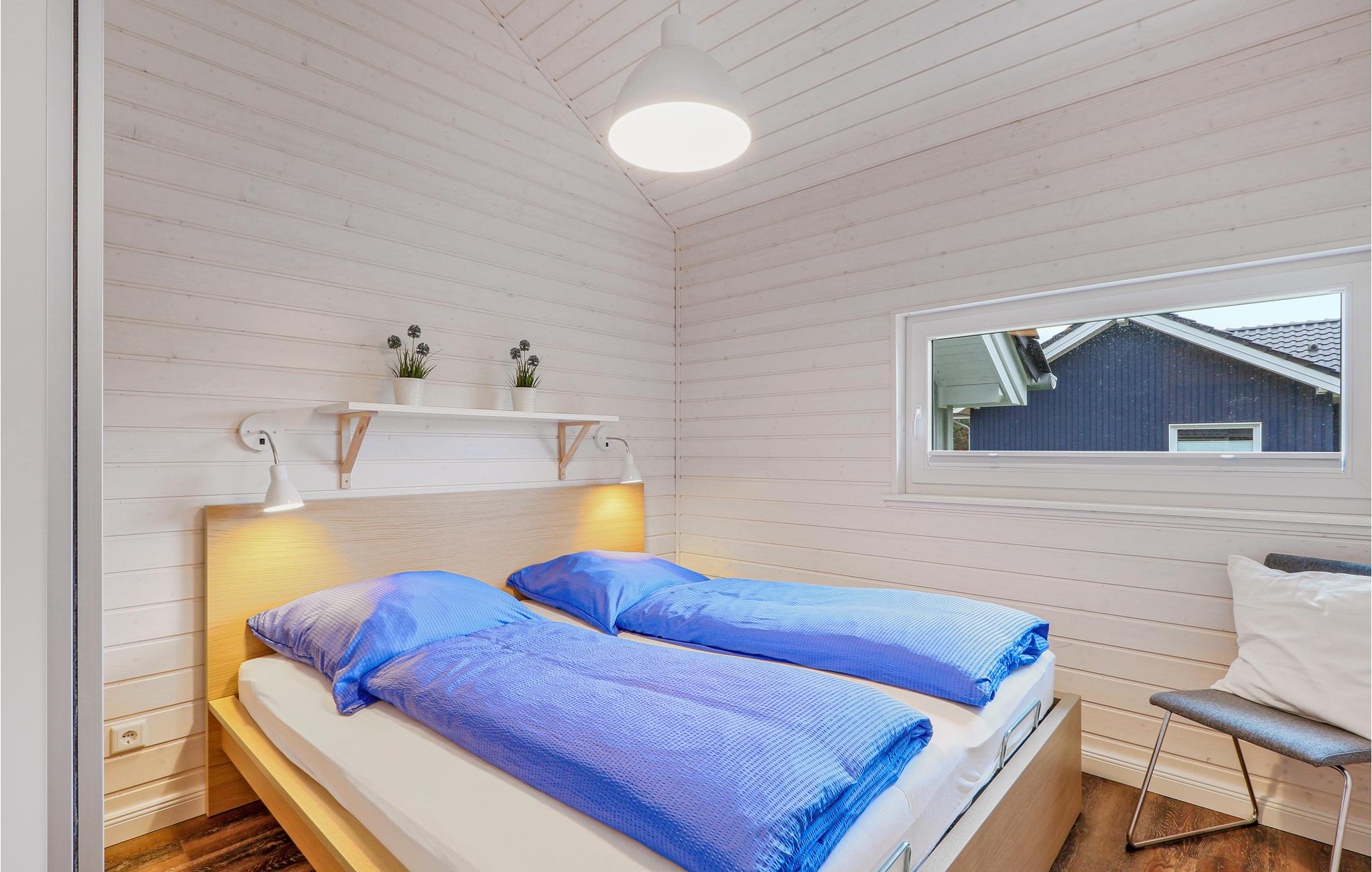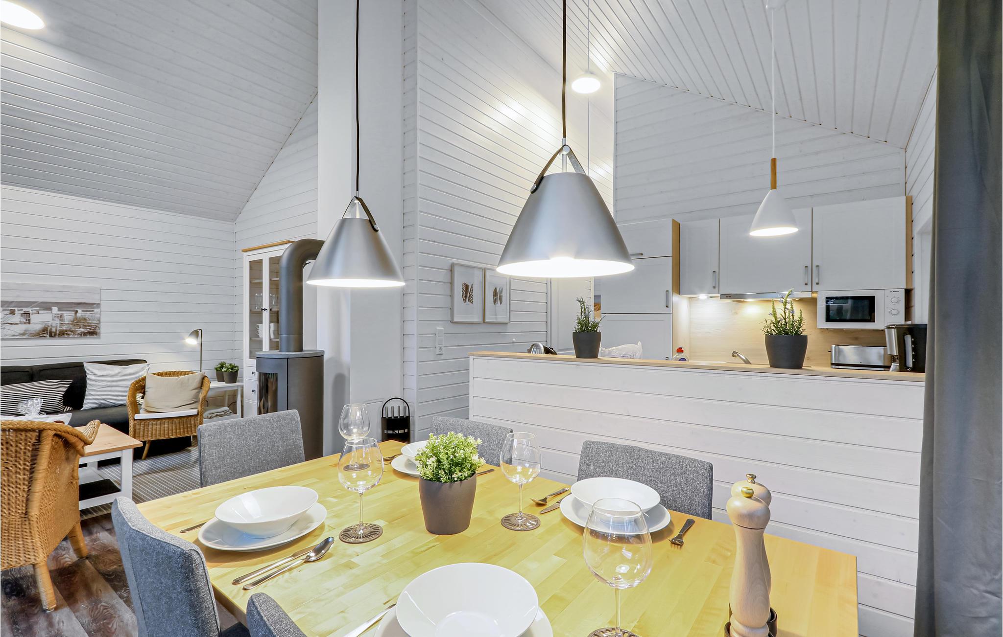 Das erste Schlafzimmer ist mit einem Doppelbett ausgestattet, im zweiten Schlafzimmer befinden sich zwei Einzelbetten. Auf dem Schlafsofa im Wohnbereich können die Kinder ihr Nachtlager aufschlagen. Die Küche befindet sich ohne Tür in einem separaten Raum und ist hochwertig ausgestattet. Der Tiefkühlschrank bietet ausreichend Platz zum Kühlen der geangelten Fische. Geschirr und Besteck ist in doppelter Menge für Sie vorhanden.