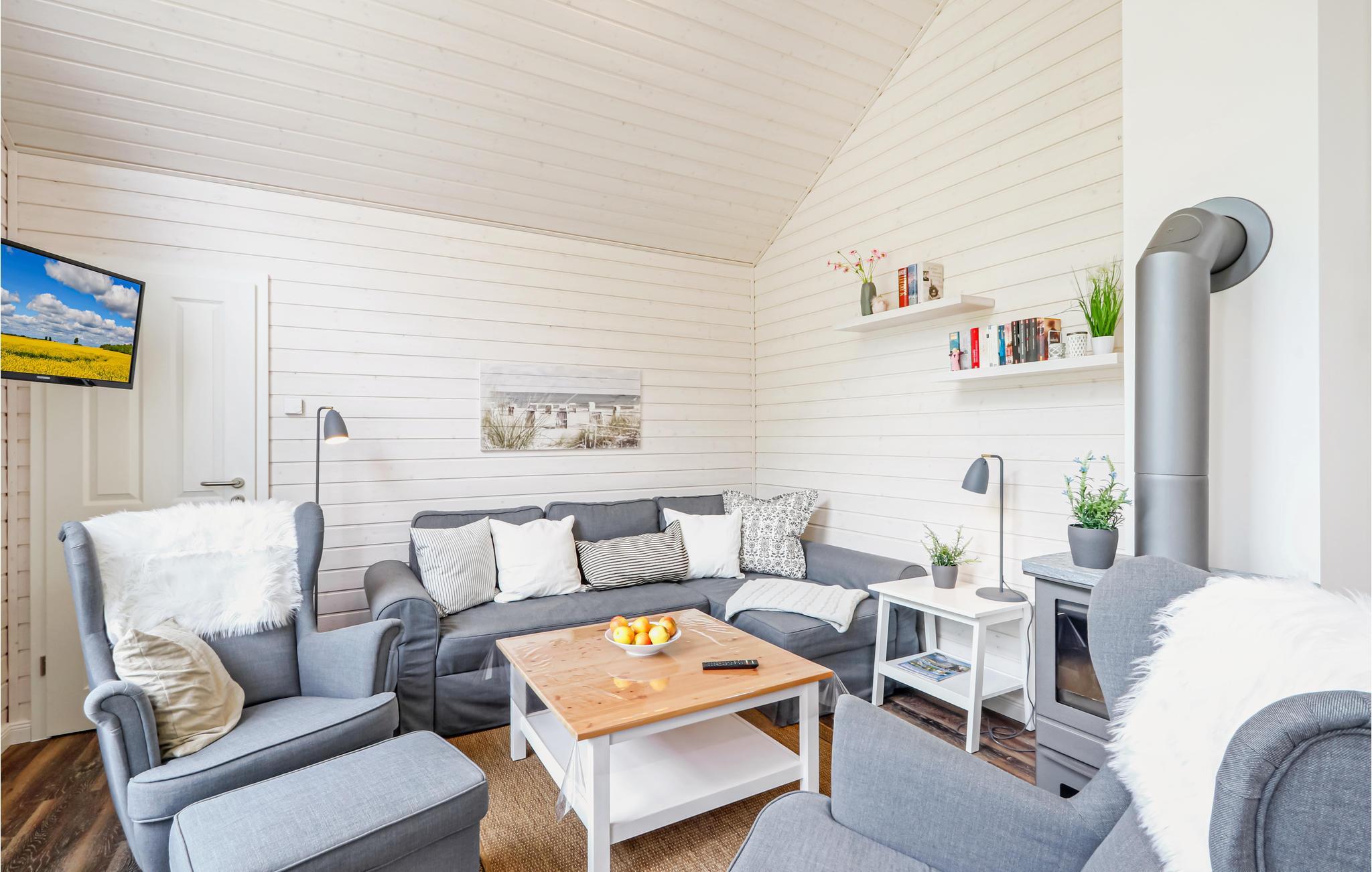 An verregneten Tagen können Sie sich in der Sauna aufwärmen und es sich anschließend vor dem Kaminofen im Wohnbereich gemütlich machen. Für gemeinsame Filmabende steht ein Blu-Ray-Player zur Verfügung.