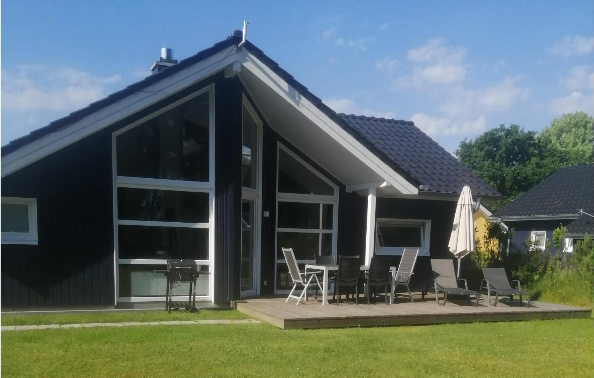Modernes Ferienhaus im skandinavischen Stil am Wardersee mit Sauna und Kaminofen, ideal für Familien.