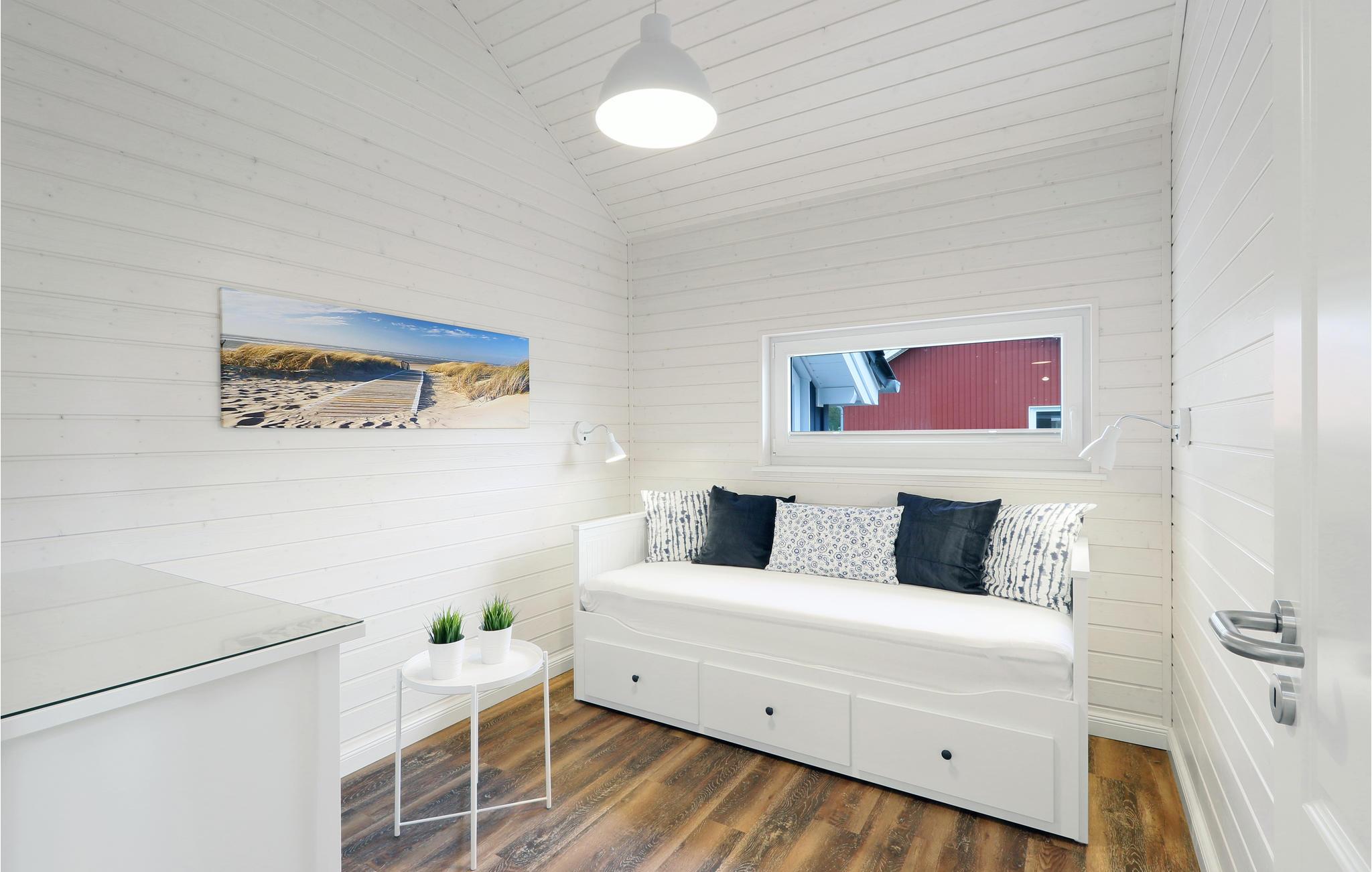 Das moderne Holzhaus „Seezauber“ überzeugt durch den skandinavischen Stil und bietet ausreichend Platz für 6 Erwachsene und 2 Kinder. Aufgrund der firsthoch offenen Decke genießen Sie hier ein angenehmes Raumgefühl und lichtdurchflutete Zimmer. Die maritime Einrichtung in hellen Tönen trägt zur Gemütlichkeit bei.