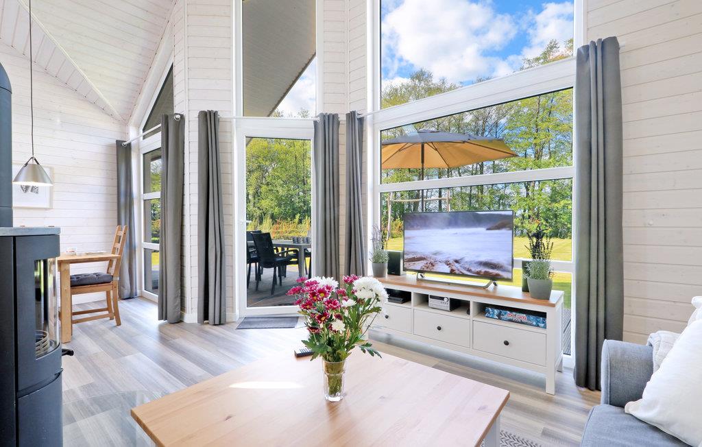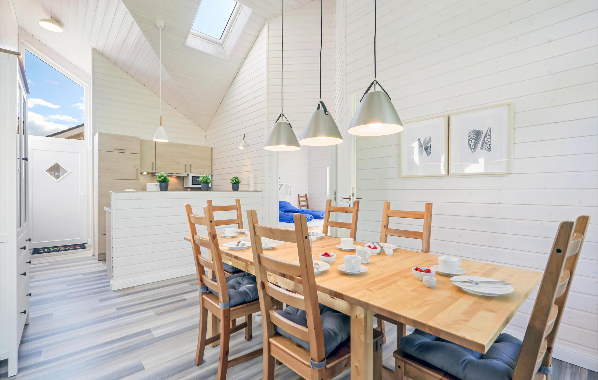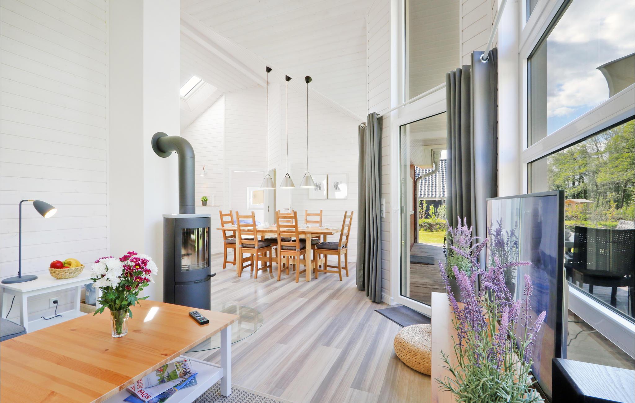 Das moderne Holzhaus „Seezauber“ liegt hinter den Bäumen in erster Reihe zum Wasser und überzeugt durch den skandinavischen Stil. Hier finden Sie ausreichend Platz für bis zu 8 Personen, besonders Kinder werden sich hier sehr wohlfühlen. Aufgrund der firsthoch offenen Decke genießen Sie hier ein angenehmes Raumgefühl und lichtdurchflutete Zimmer. Die maritime Einrichtung in hellen Tönen trägt zur Gemütlichkeit bei.