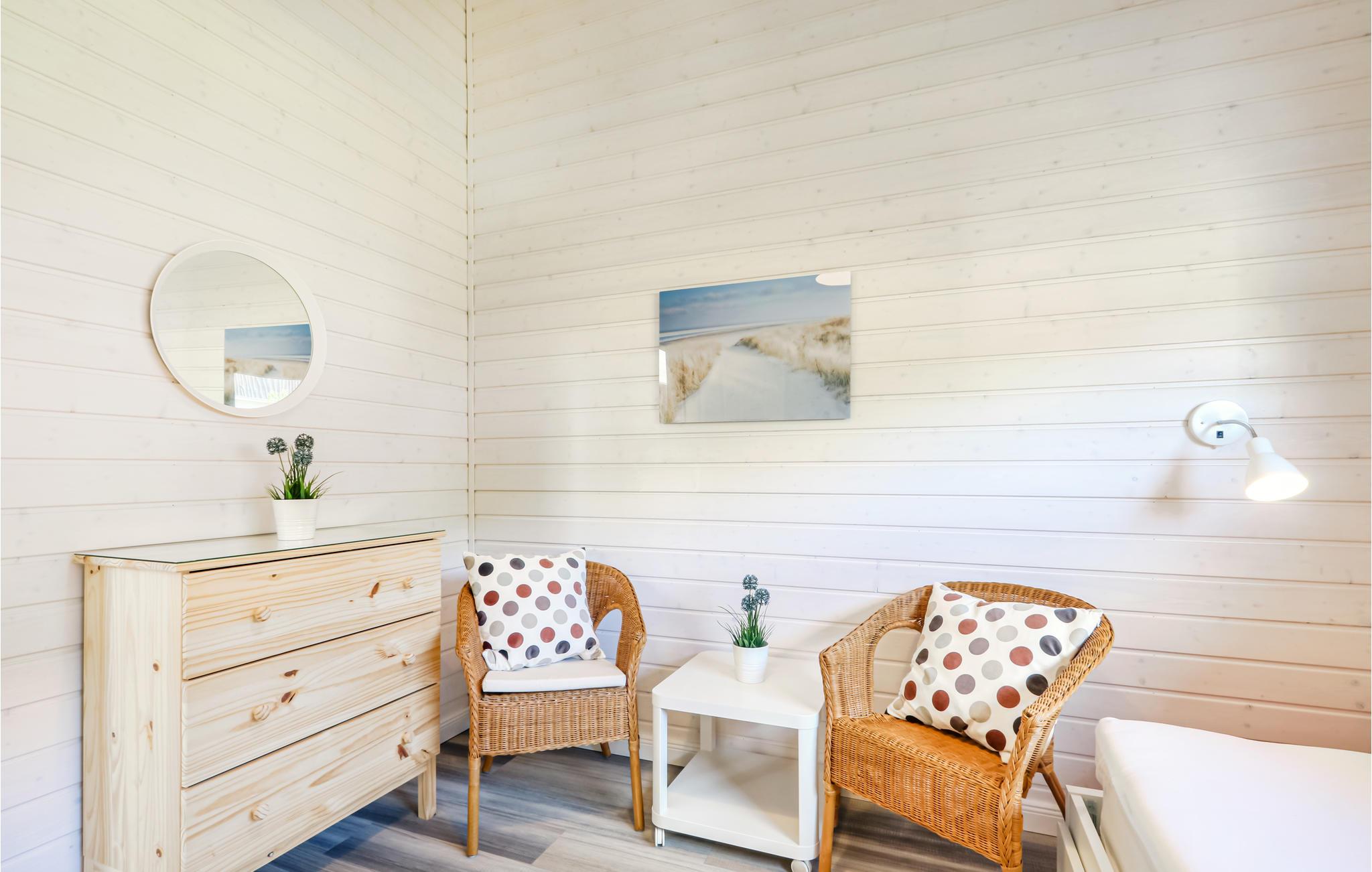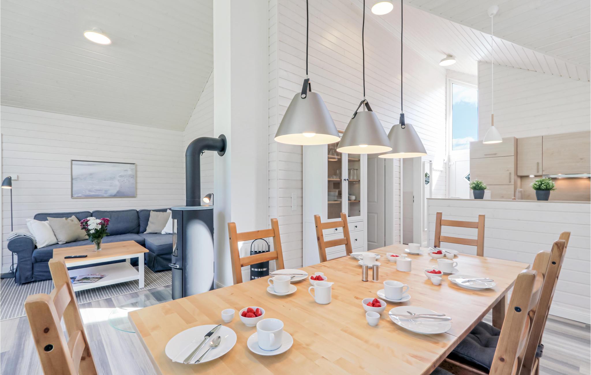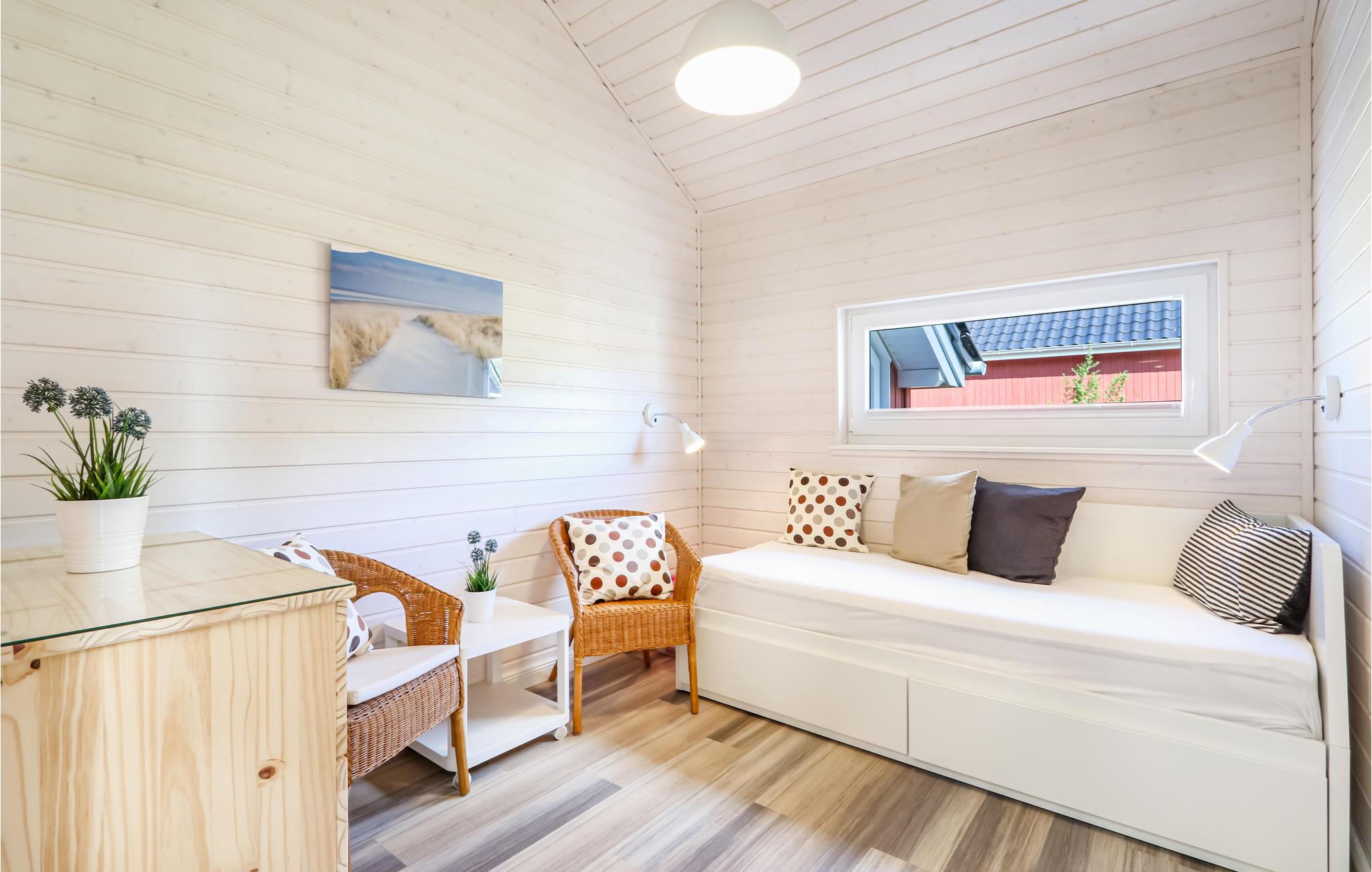Das moderne Holzhaus „Seezauber“ liegt hinter den Bäumen in erster Reihe zum Wasser und überzeugt durch den skandinavischen Stil. Hier finden Sie ausreichend Platz für bis zu 8 Personen, besonders Kinder werden sich hier sehr wohlfühlen. Aufgrund der firsthoch offenen Decke genießen Sie hier ein angenehmes Raumgefühl und lichtdurchflutete Zimmer. Die maritime Einrichtung in hellen Tönen trägt zur Gemütlichkeit bei.