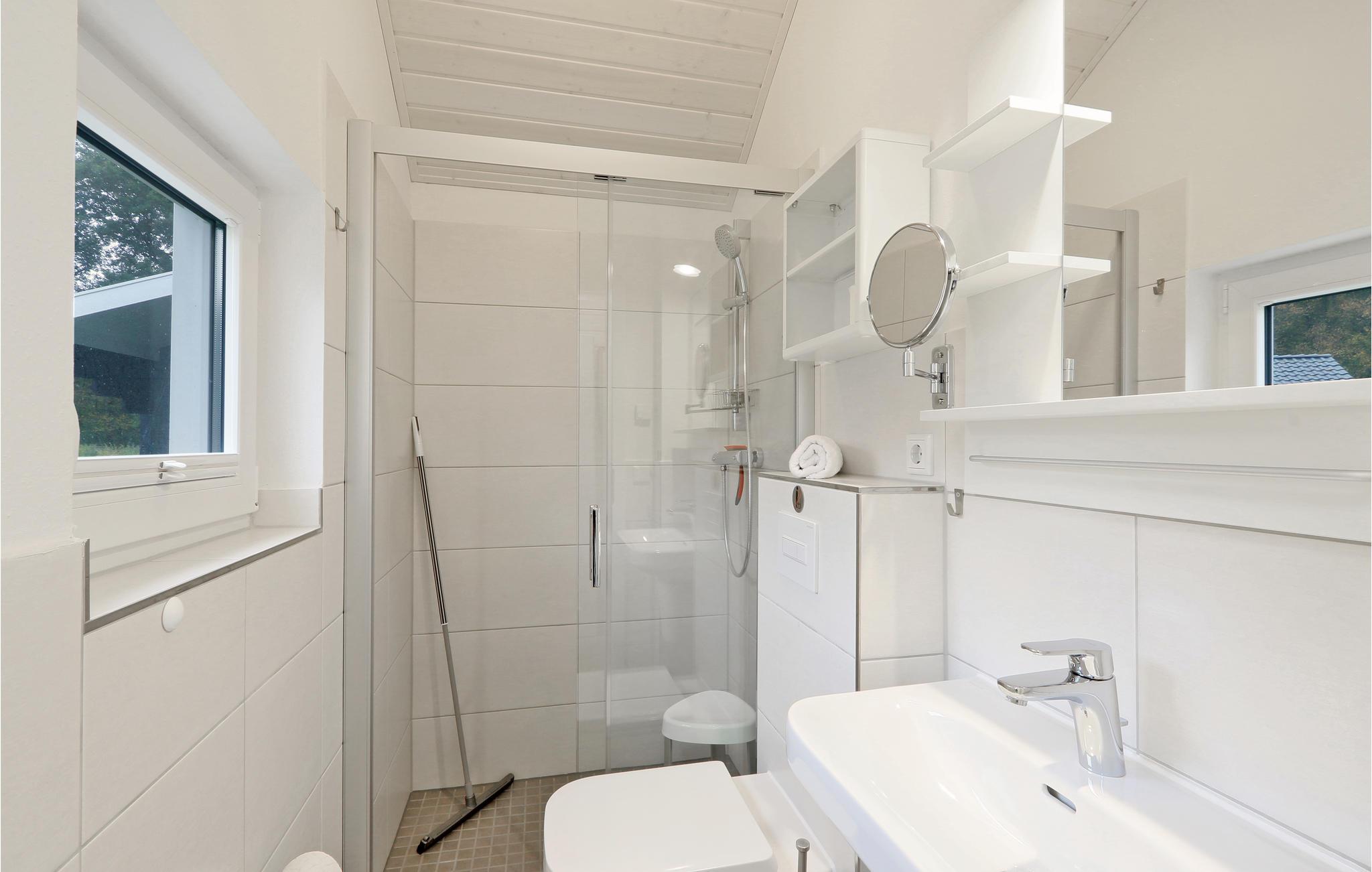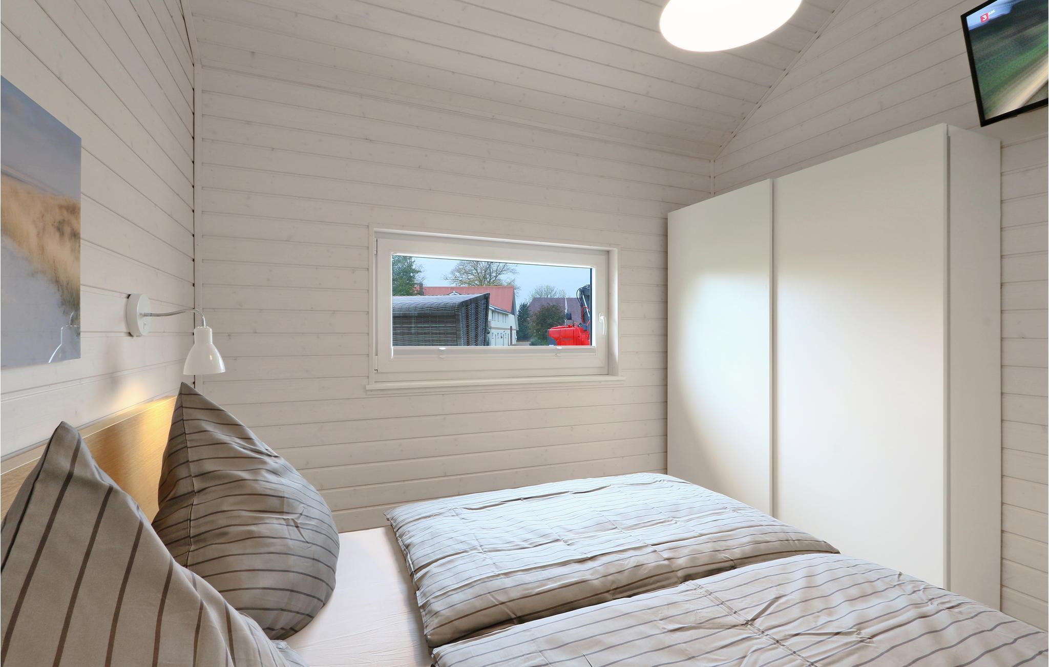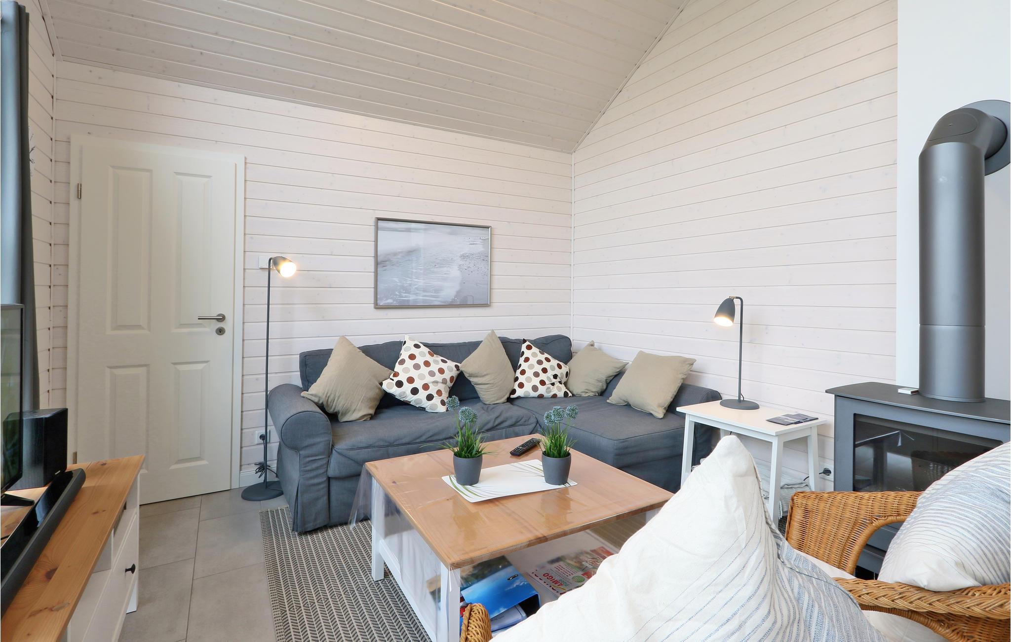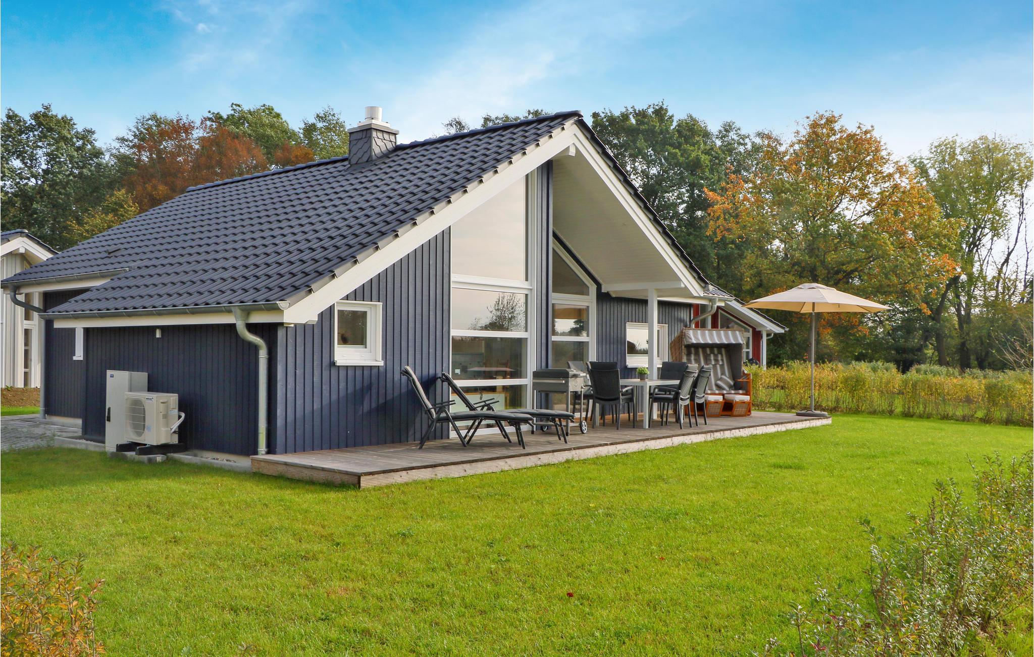 Modernes Holzferienhaus „Seezauber“ im skandinavischen Stil nahe Wardersee mit Sauna und Kaminofen.