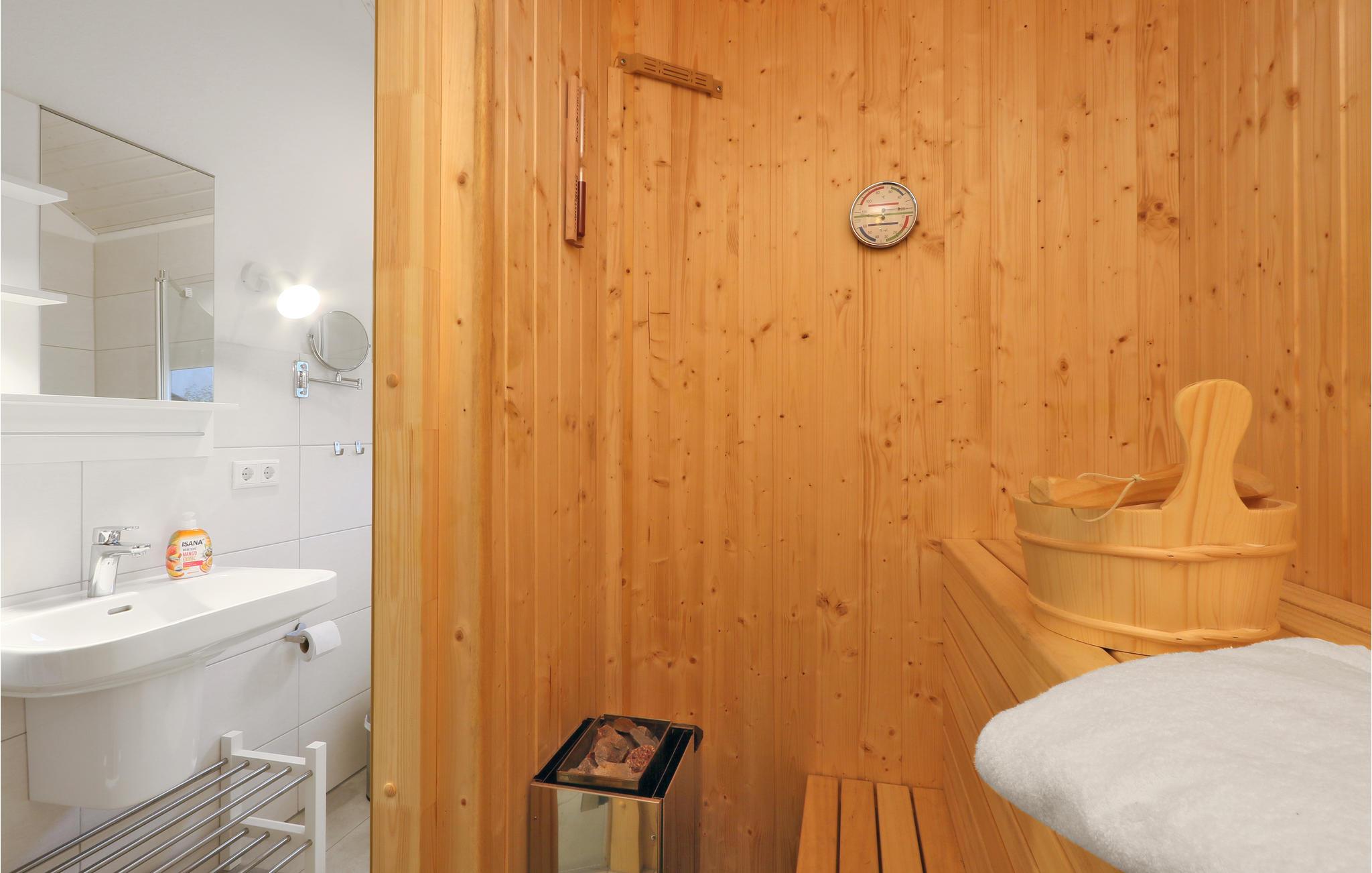An verregneten Tagen können Sie sich in der Sauna aufwärmen und es sich anschließend vor dem Kaminofen im Wohnbereich gemütlich machen. Insgesamt stehen Ihnen 4 Fernseher sowie DVD- & Blue-Ray-Player zur Verfügung, so dass hier auch bei schlechtem Wetter keine Langeweile aufkommt.