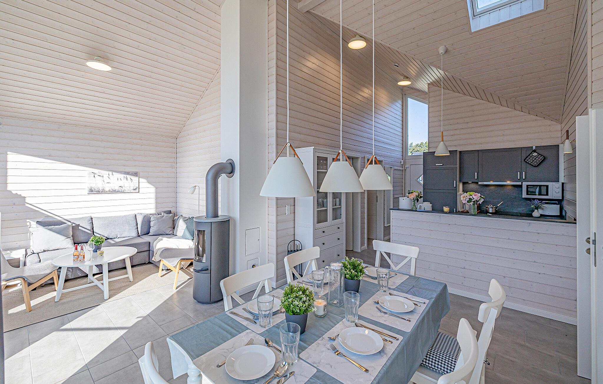 Nur wenige Schritte vom Ufer des malerischen Wardersees entfernt lädt Sie dieses komfortable und behagliche Ferienhaus zu einer unvergesslichen Auszeit ein. Freuen Sie sich auf gesellige Kochabende und harmonische Mahlzeiten am stilvoll beleuchteten Esstisch. Entspannen Sie nach einem langen Spaziergang in der Sauna und entfachen Sie in der kühleren Jahreszeit den Kaminofen, bevor Sie es sich für einen Filmabend auf dem Sofa gemütlich machen.