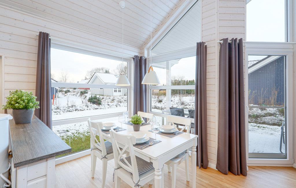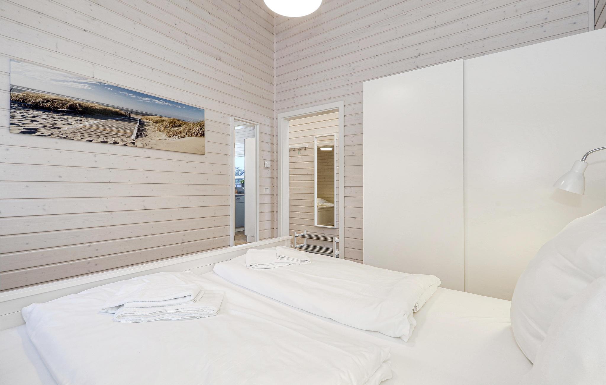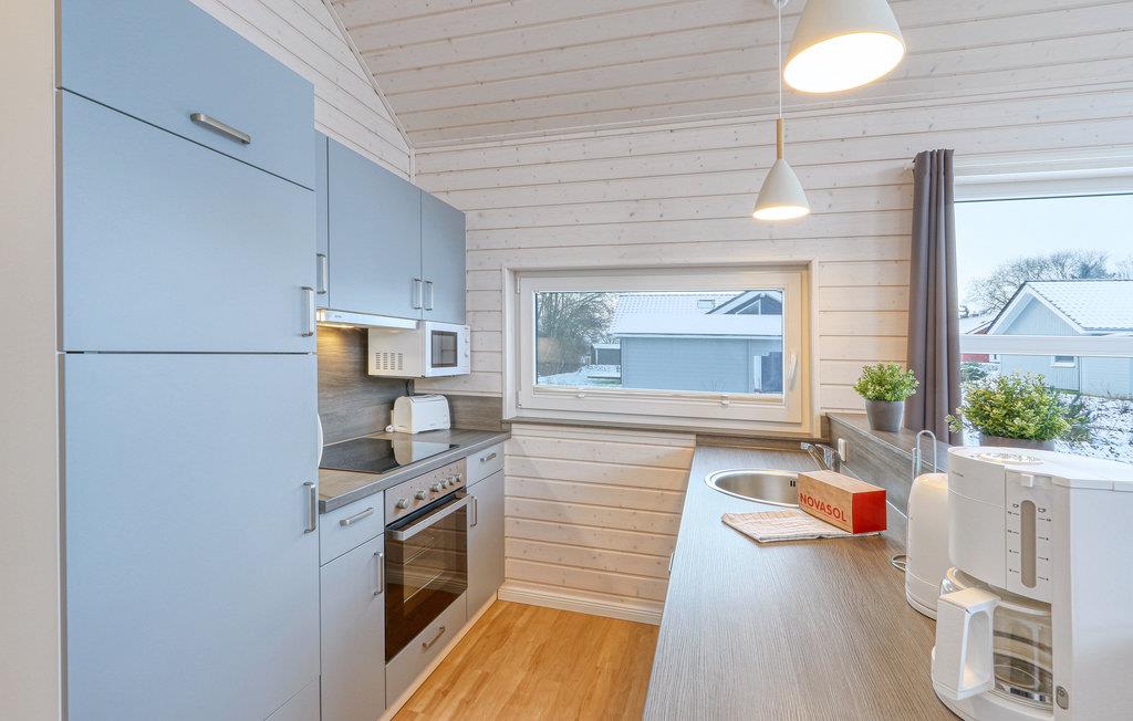 Das erste Schlafzimmer ist mit einem Doppelbett ausgestattet, im zweiten Schlafzimmer befinden sich zwei Einzelbetten. Auf dem Schlafsofa im Wohnbereich können die Kinder ihr Nachtlager aufschlagen. Die Küche befindet sich ohne Tür in einem separaten Raum und ist hochwertig ausgestattet. Der Tiefkühlschrank bietet ausreichend Platz zum Kühlen der geangelten Fische. Geschirr und Besteck ist in doppelter Menge für Sie vorhanden.