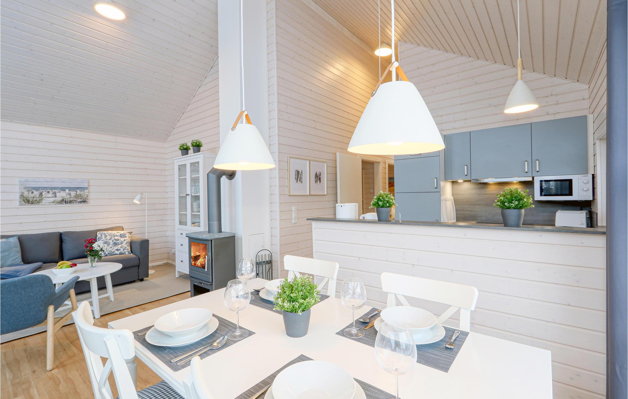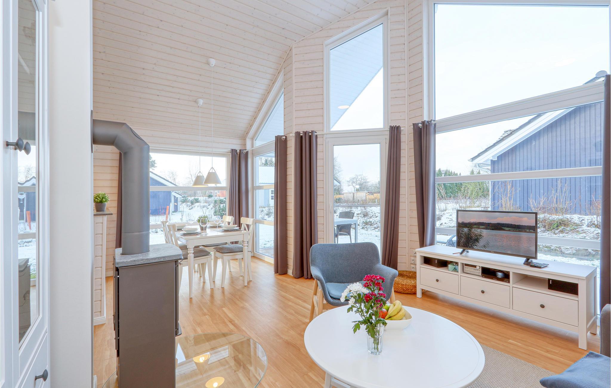 Das moderne Holzhaus „Waldfrieden“ überzeugt durch den skandinavischen Stil und bietet ausreichend Platz für 4 Erwachsene und 2 Kinder. Aufgrund der firsthoch offenen Decke genießen Sie hier ein angenehmes Raumgefühl und lichtdurchflutete Zimmer. Die maritime Einrichtung in hellen Tönen trägt zur Gemütlichkeit bei.