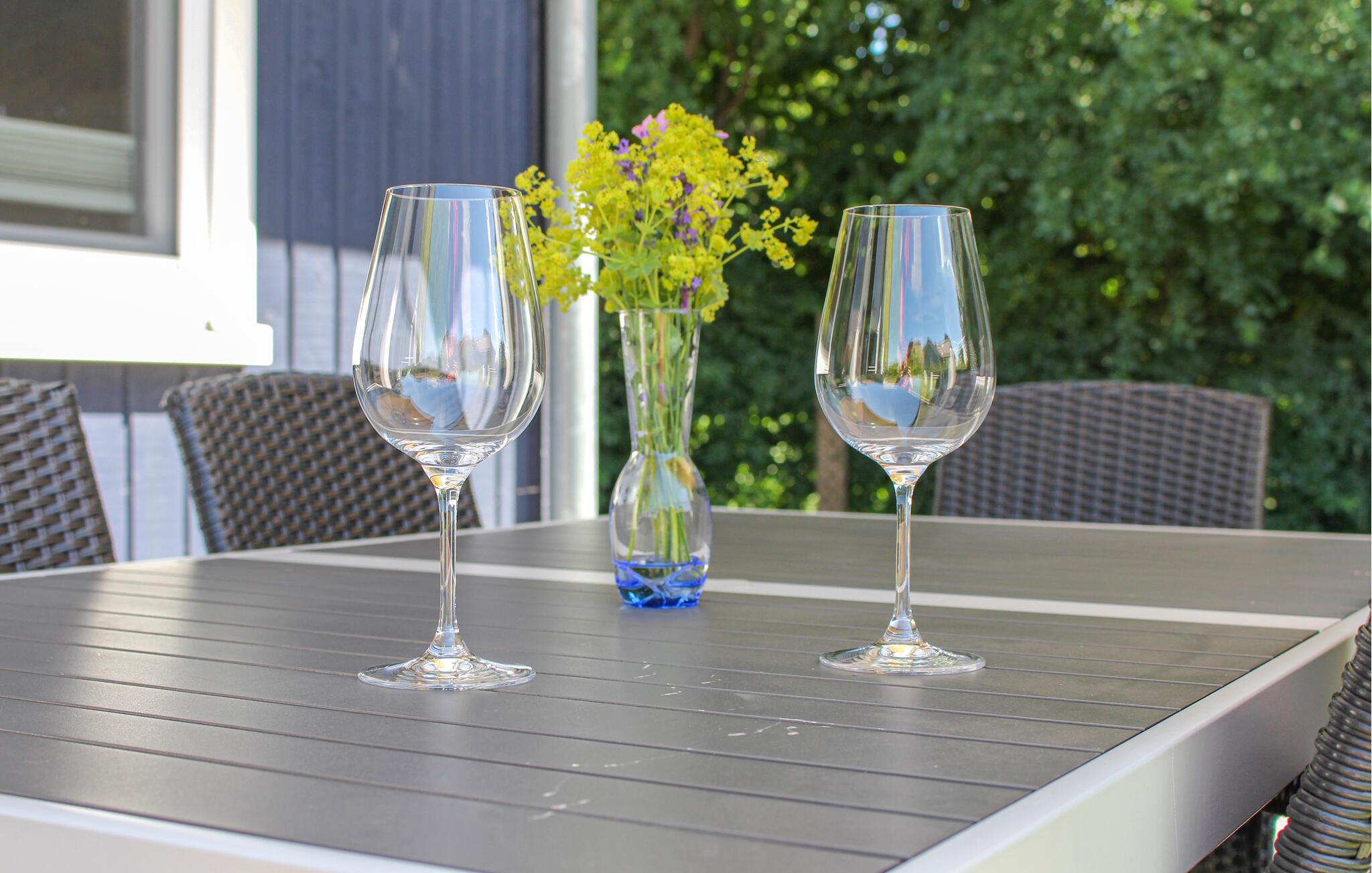 An warmen Tagen können Sie mit der ganzen Familie auf der großzügigen Terrasse frühstücken, es sich auf den schönen Gartenmöbeln bequem machen und den Tag mit einem gemütlichen Grillabend beenden.