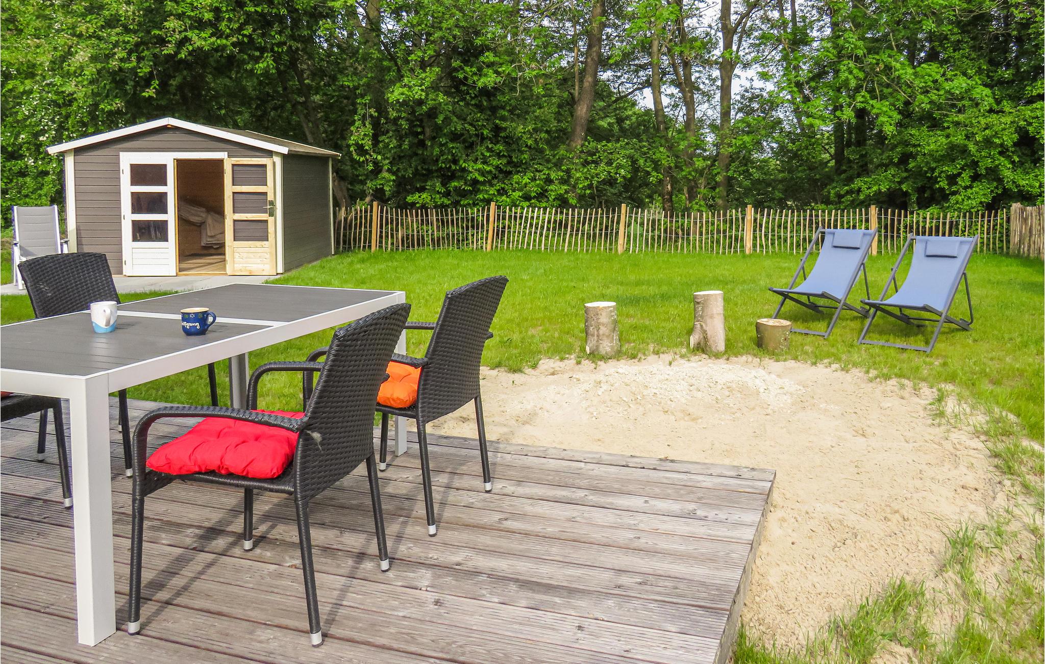 Auf der großzügigen Terrasse können Sie herrlich entspannen und mit der ganzen Familie frühstücken. Gartenmöbel und Sonnenliegen stehen für Sie zur Verfügung. Für Ihre Kinder gibt es einen Sandkasten und Spielzeug, außerdem sind 4 Badmintonschläger vorhanden.