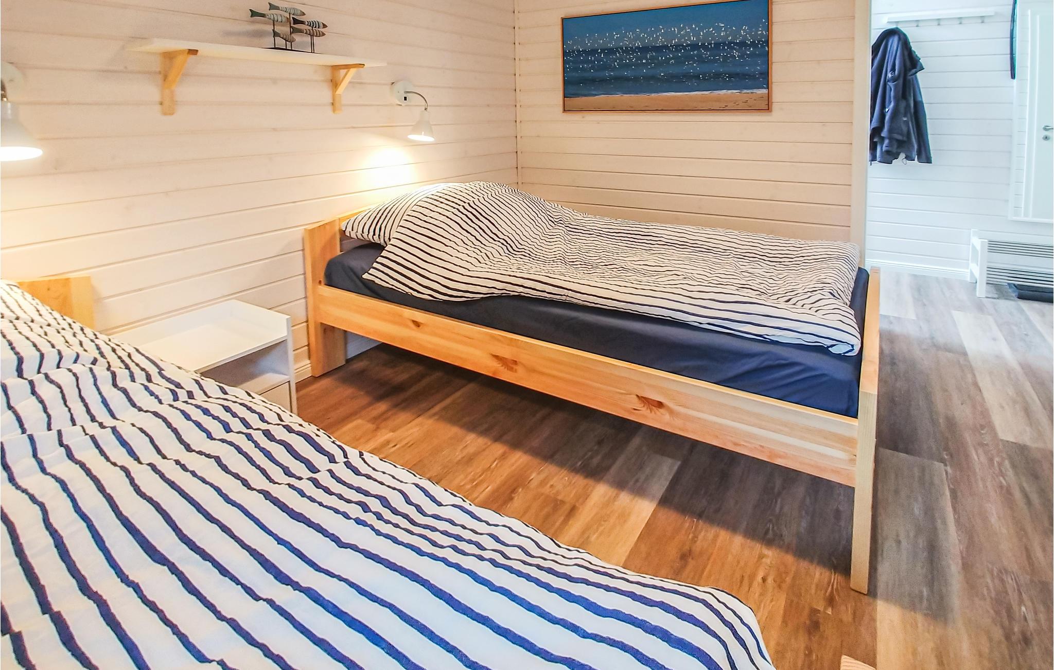 Das moderne Holzhaus erwartet Sie im Feriendorf Wardersee und überzeugt durch den skandinavischen Stil. Dank offenem Dachfirst genießen Sie hier ein angenehmes Raumgefühl und lichtdurchflutete Zimmer. Die maritime Einrichtung in hellen Tönen trägt zur Gemütlichkeit bei. An kühleren Tagen können Sie sich in der Sauna aufwärmen und es sich anschließend vor dem Kaminofen im Wohnbereich gemütlich machen.