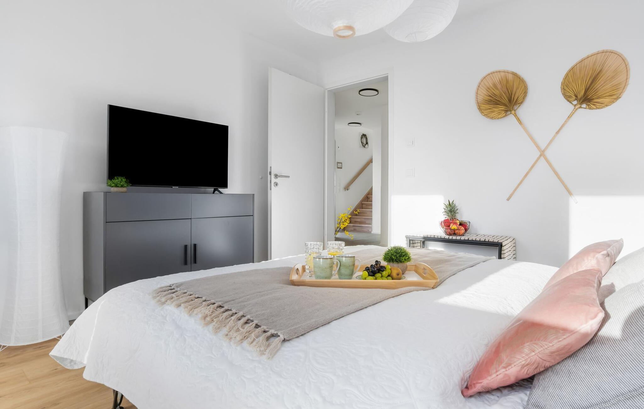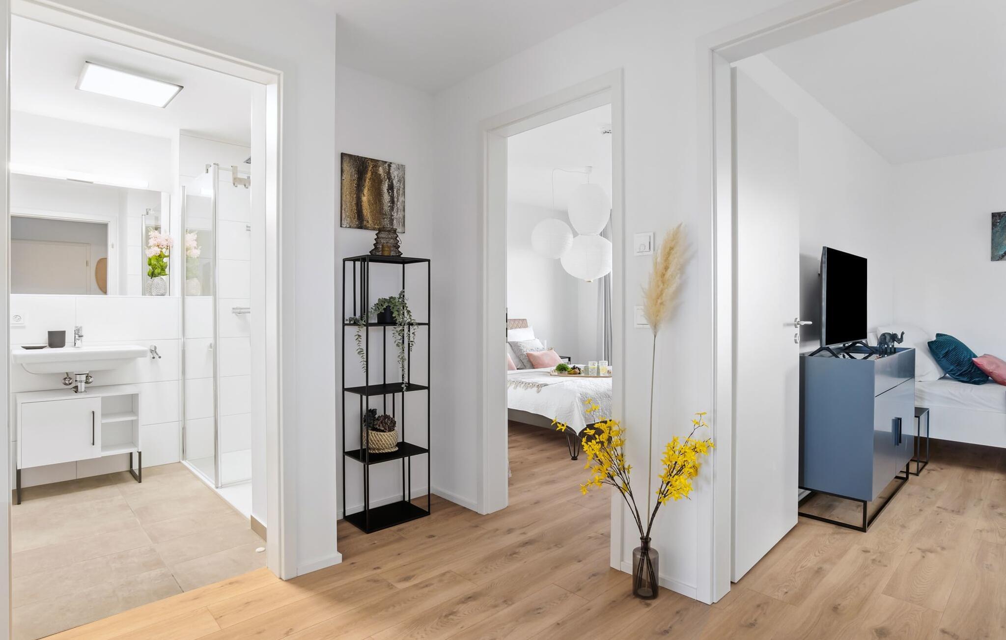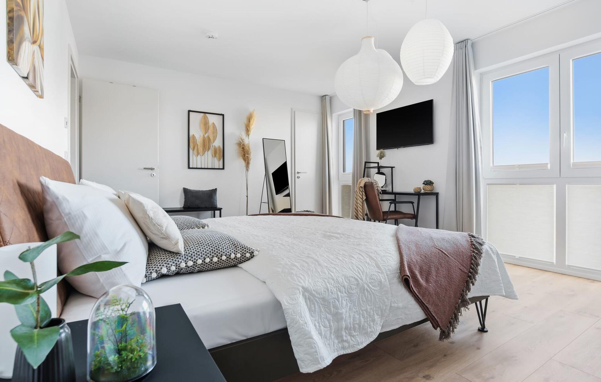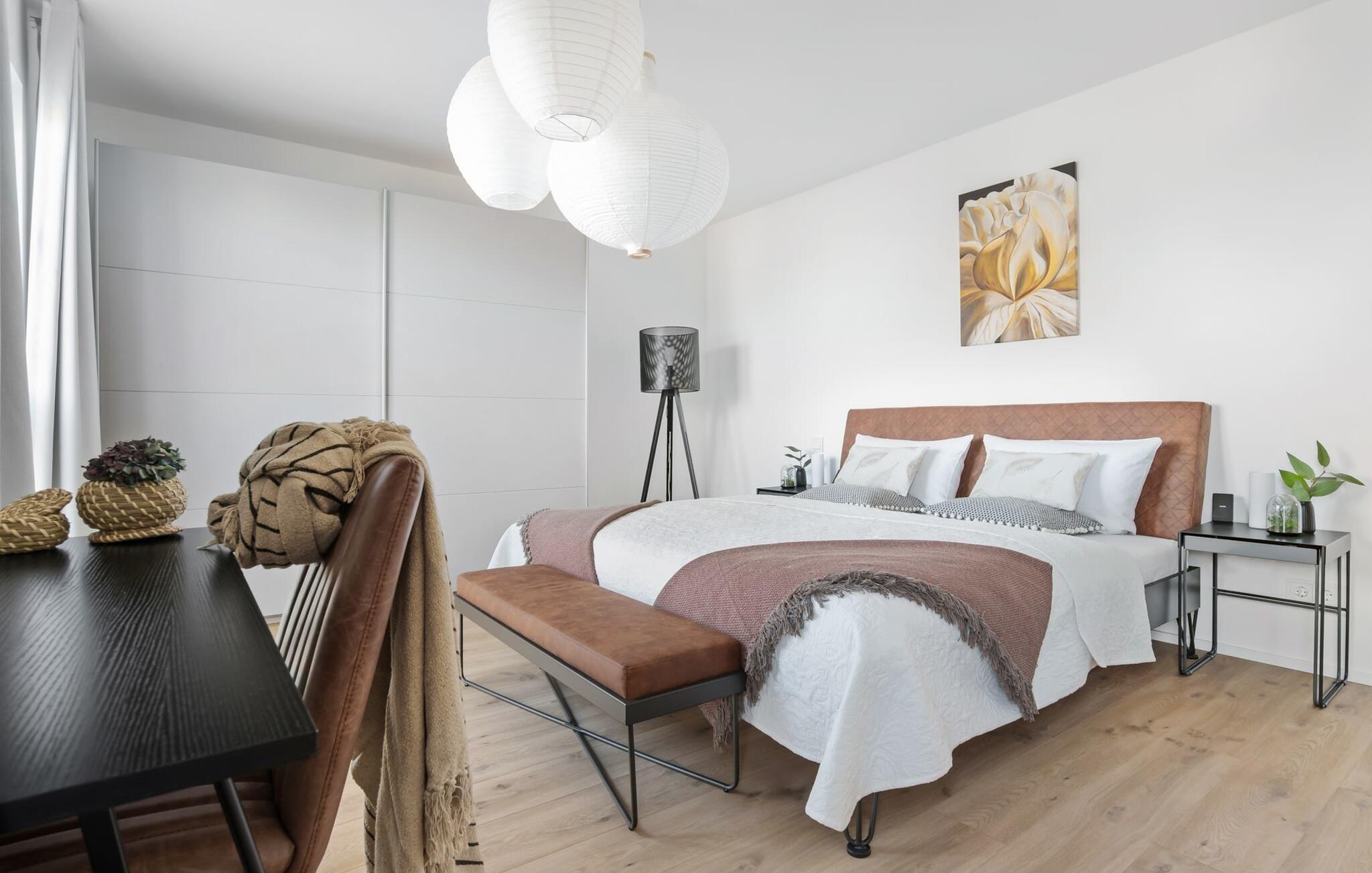 Im zweiten Geschoss eröffnet sich der offene Wohnbereich, der mit einer vollständig ausgestatteten Küche nach höchsten Standards auf euch wartet. Die Küche bildet das Herzstück für kulinarische Genüsse und gesellige Kochabende. An den Küchenbereich schließt sich der gemütliche Wohnbereich an, der mit einer einladenden Wohnlandschaft lockt. Die geschmackvolle Einrichtung im minimalistisch asiatischen Stil verleiht dem gesamten Loft eine harmonische und beruhigende Atmosphäre.