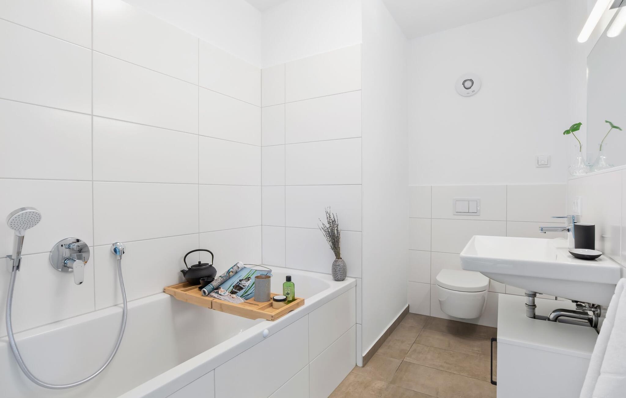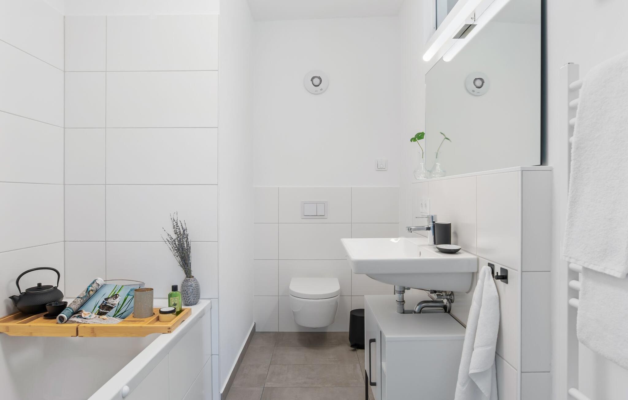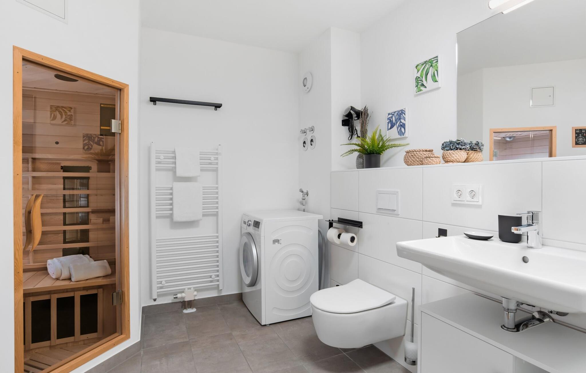 In diesem Stockwerk findet ihr ein zweites Badezimmer mit Badewanne, welches das Wohlfühlfeeling abrundet und zu jeder Jahreszeit für einen erholsamen Aufenthalt sorgt.