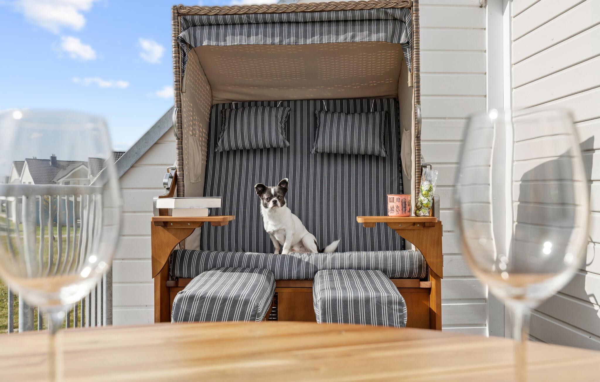 Unser Lieblingsplatz: Im Strandkorb auf dem Balkon - morgens mit einer Tasse Kaffee in der frischen Meeresbrise wehen alle Alltagssorgen davon.