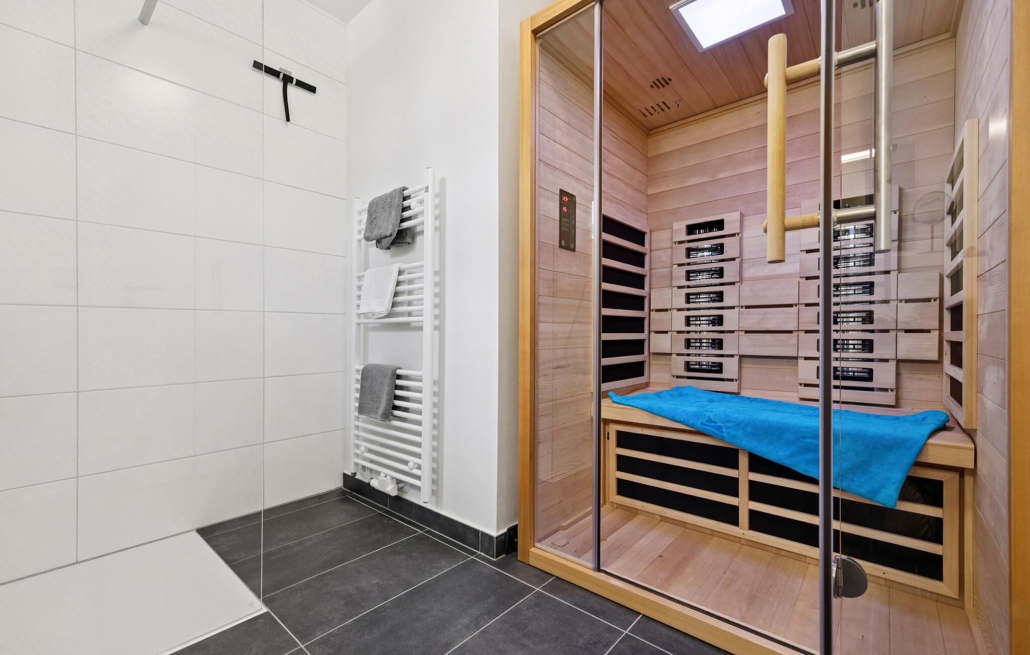 Die Unterkunft beherbergt zwei Schlafzimmer, jedes liebevoll gestaltet. Ein Schlafzimmer verfügt über ein gemütliches Doppelbett, während das andere mit zwei Einzelbetten ausgestattet ist. In beiden Zimmern findet ihr zudem einen Smart TV, um sich auch hier euren Lieblingsprogrammen hinzugeben. Das Wellnessbad überzeugt mit einer bodengleichen Dusche und einer Infrarotsauna. Ein Ort der Entspannung und Erholung nach erlebnisreichen Tagen.