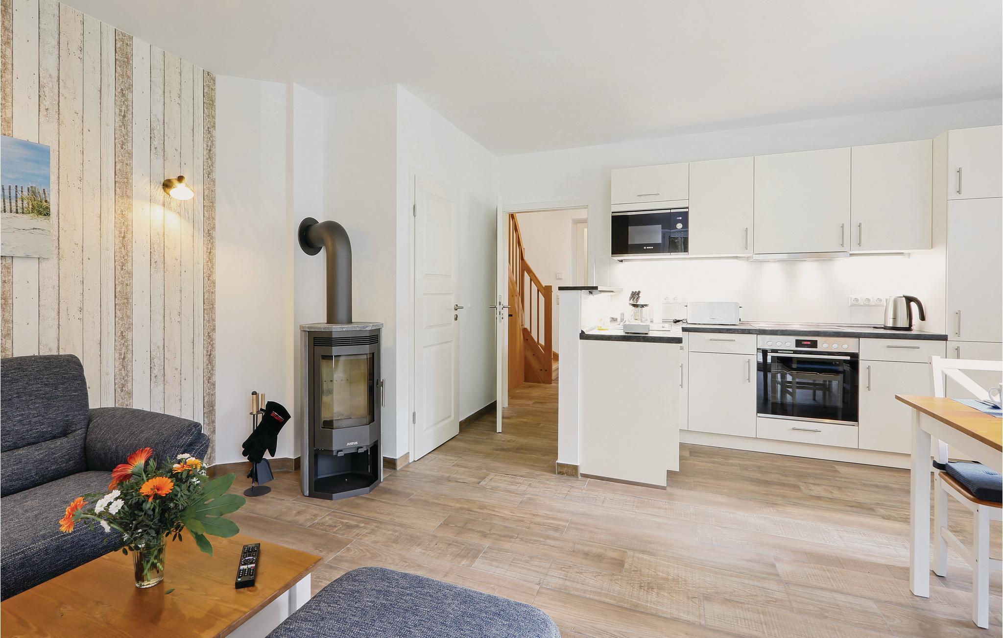 Die hochwertig und individuell ausgestattete Doppelhaushälfte liegt am Waldrand in einer Sackgasse und erstreckt sich über zwei Etagen. Sie ist sehr modern und hochwertig eingerichtet und verfügt über 2 LED Fernseher und kostenloses WLAN. Vom kombinierten Wohn- und Essbereich erreichen Sie die Terrasse mit eigenem Garten und Buddelkasten, auf der Sie die herrlichen Sonnenstunden Usedoms genießen, den Grill anwerfen oder den Rasen für verschiedene Spiele nutzen können. Neben Terrassenmöbeln stehen auch ein Strandkorb und eine Liege zum Entspannen oder Sonne zur Verfügung. An kalten Tagen können Sie sich in der Sauna aufwärmen oder es sich vor dem Kaminofen im Wohnzimmer gemütlich machen. Die Sauna befindet sich im Bad im Erdgeschoss und hat eine ebenerdige Dusche. Die voll ausgestattete, hochwertige Einbauküche mit Bosch Geräten lädt zum gemeinsamen Kochen und Genießen ein.
