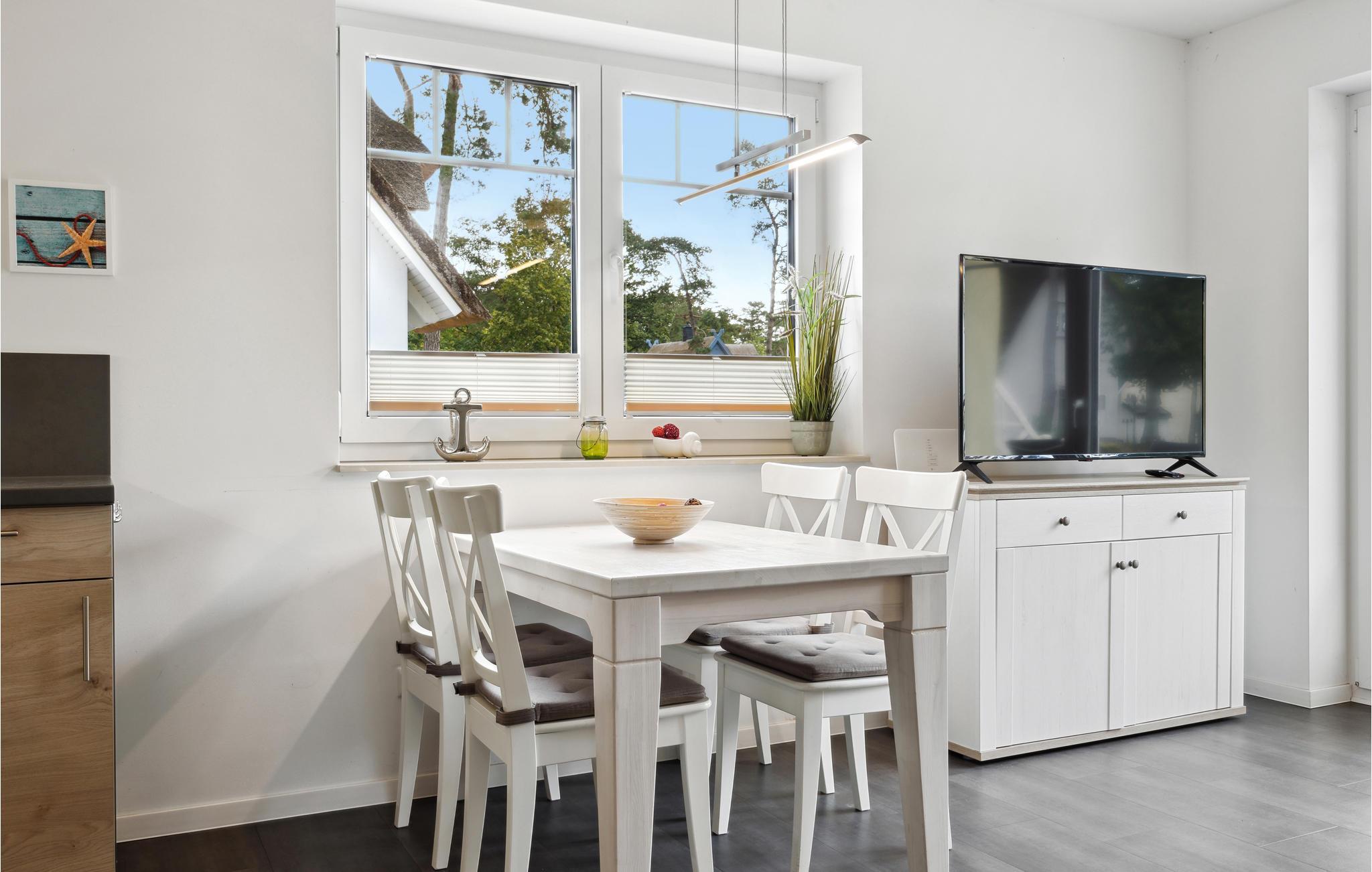 Auf der Sonneninsel Usedom im idyllischen Fischerdorf Zirchow liegen diese schönen Ferienhäuser unter Reet. Das Feriendorf am Stettiner Haff bietet für jeden Geschmack die richtige Unterkunft für die ganze Familie. Die hochwertig ausgestattete Doppelhaushälfte ist modern und freundlich eingerichtet. Vom kombinierten Wohn- und Essbereich erreichen Sie die Terrasse, auf der Sie die herrlichen Sonnenstunden Usedoms genießen können. Grill und Gartenmöbel stehen für Sie bereit, so dass Sie hier mit der ganzen Familie gesellige Grillabende verbringen können. Alle Fenster im Haus sind mit Insektenschutznetzen ausgestattet.