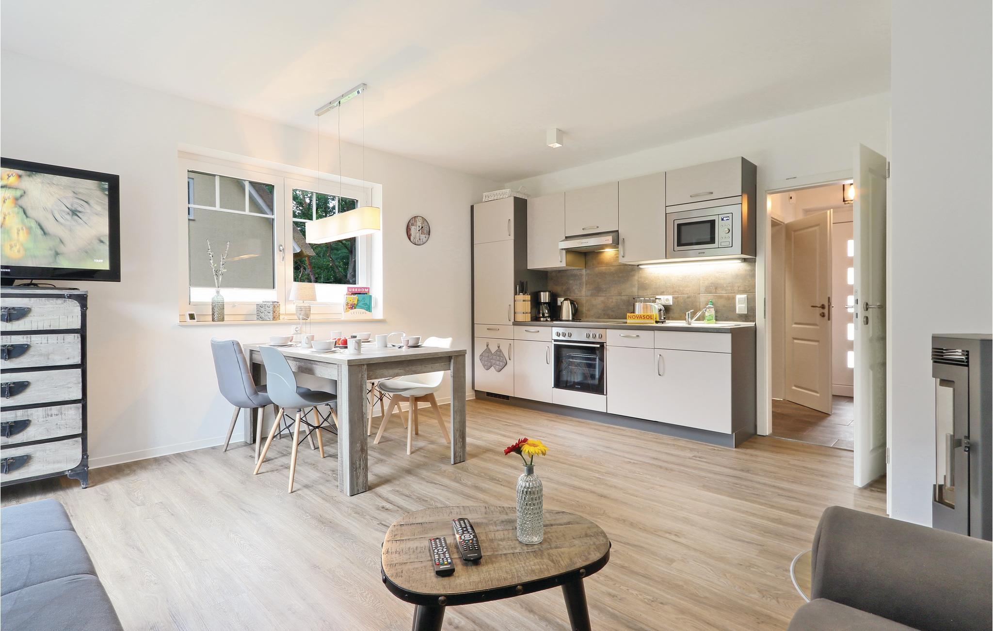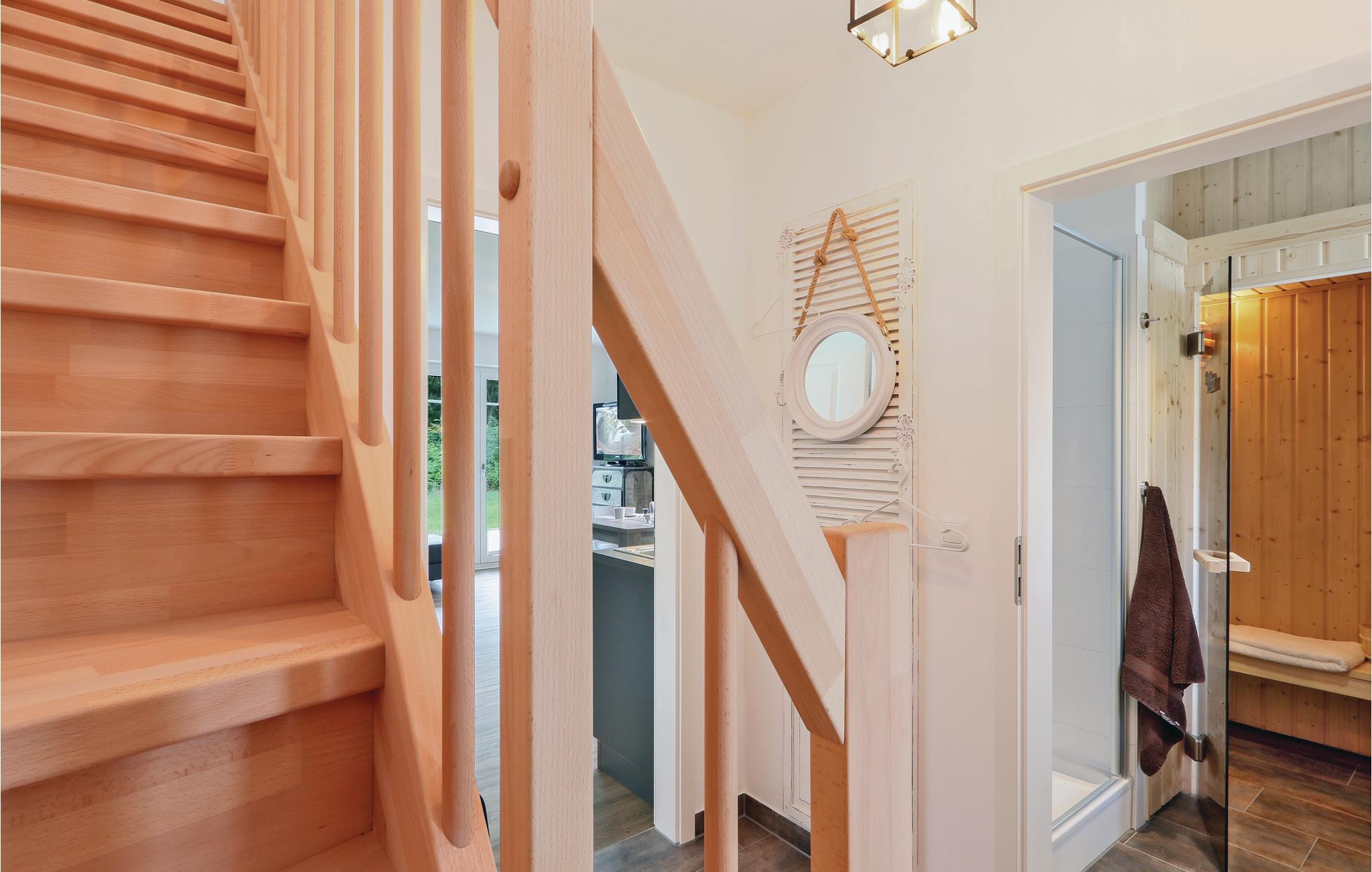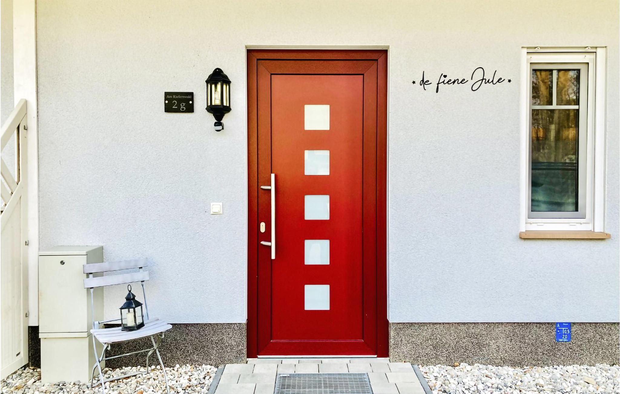 Die am Waldrand gelegene, hochwertig ausgestattete Doppelhaushälfte „de fiene Jule“ erstreckt sich über zwei Etagen und ist modern und freundlich gestaltet. Vom kombinierten Wohn- und Essbereich erreichen Sie die Terrasse nach Westen zum Wald hin, auf der Sie ruhige und sonnige Nachmittage und Abende genießen können. An kalten Tagen können Sie sich in der Sauna aufwärmen und anschließend vor dem Kaminofen entspannen. Das erste Schlafzimmer verfügt über ein gemütliches Doppelbett. Im zweiten Schlafzimmer befinden sich zwei Einzelbetten.