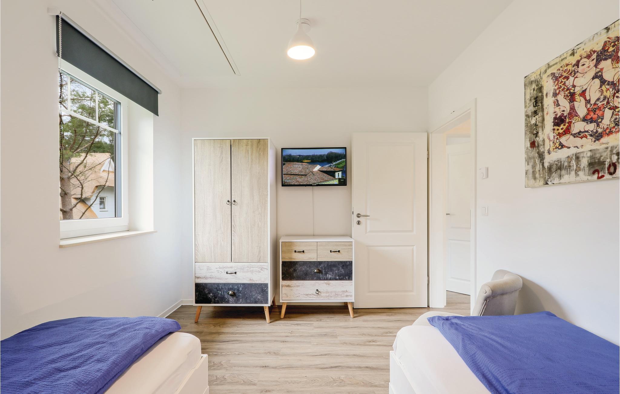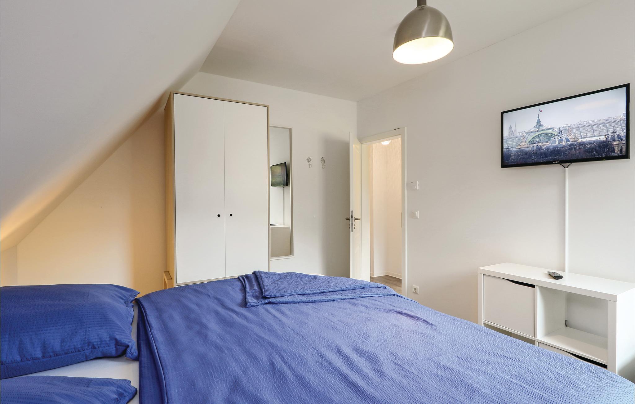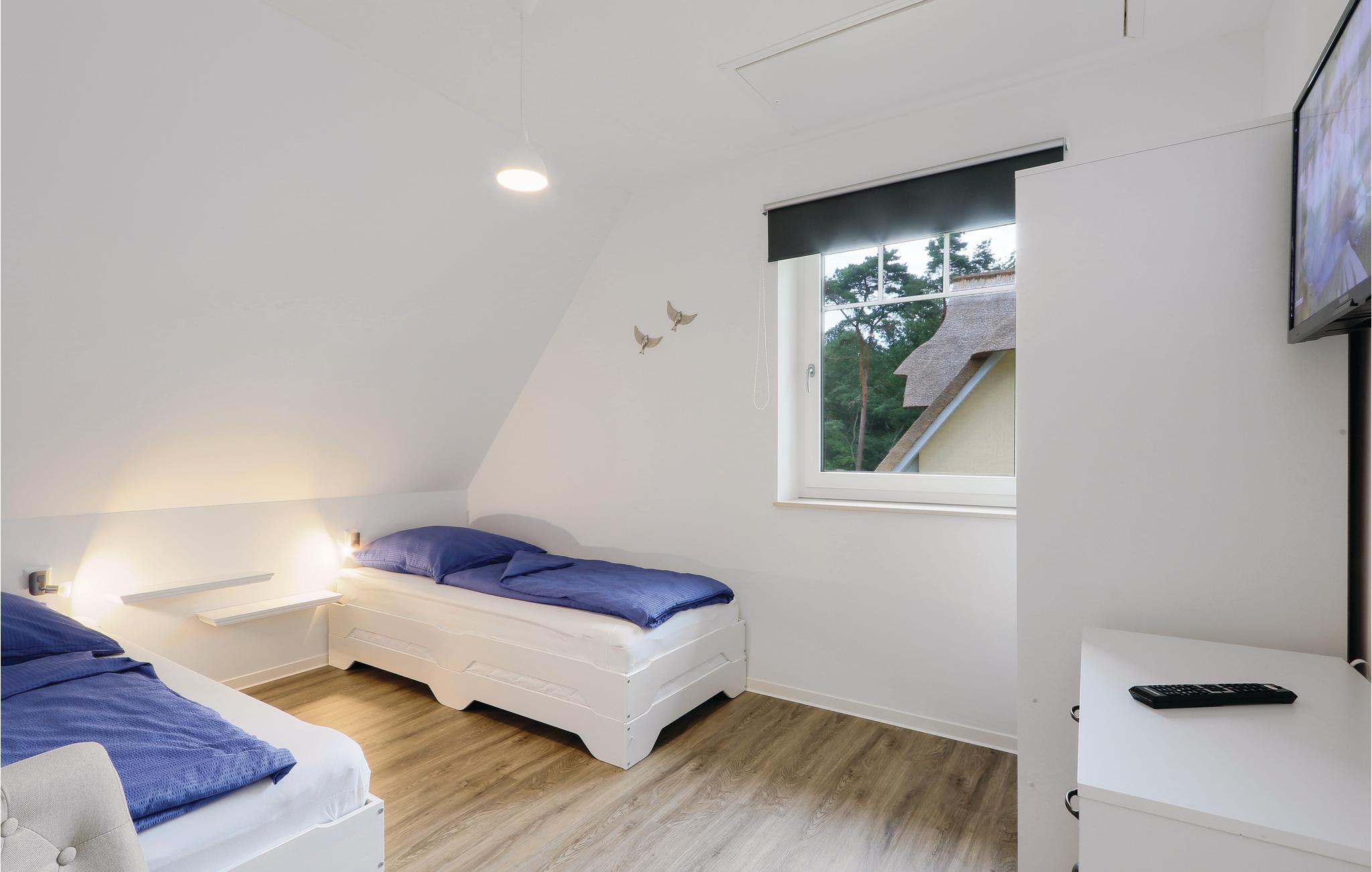 Die am Waldrand gelegene, hochwertig ausgestattete Doppelhaushälfte „de fiene Jule“ erstreckt sich über zwei Etagen und ist modern und freundlich gestaltet. Vom kombinierten Wohn- und Essbereich erreichen Sie die Terrasse nach Westen zum Wald hin, auf der Sie ruhige und sonnige Nachmittage und Abende genießen können. An kalten Tagen können Sie sich in der Sauna aufwärmen und anschließend vor dem Kaminofen entspannen. Das erste Schlafzimmer verfügt über ein gemütliches Doppelbett. Im zweiten Schlafzimmer befinden sich zwei Einzelbetten.