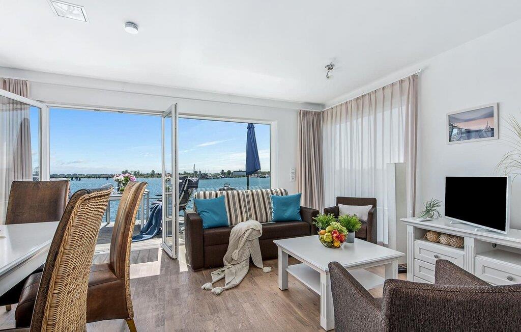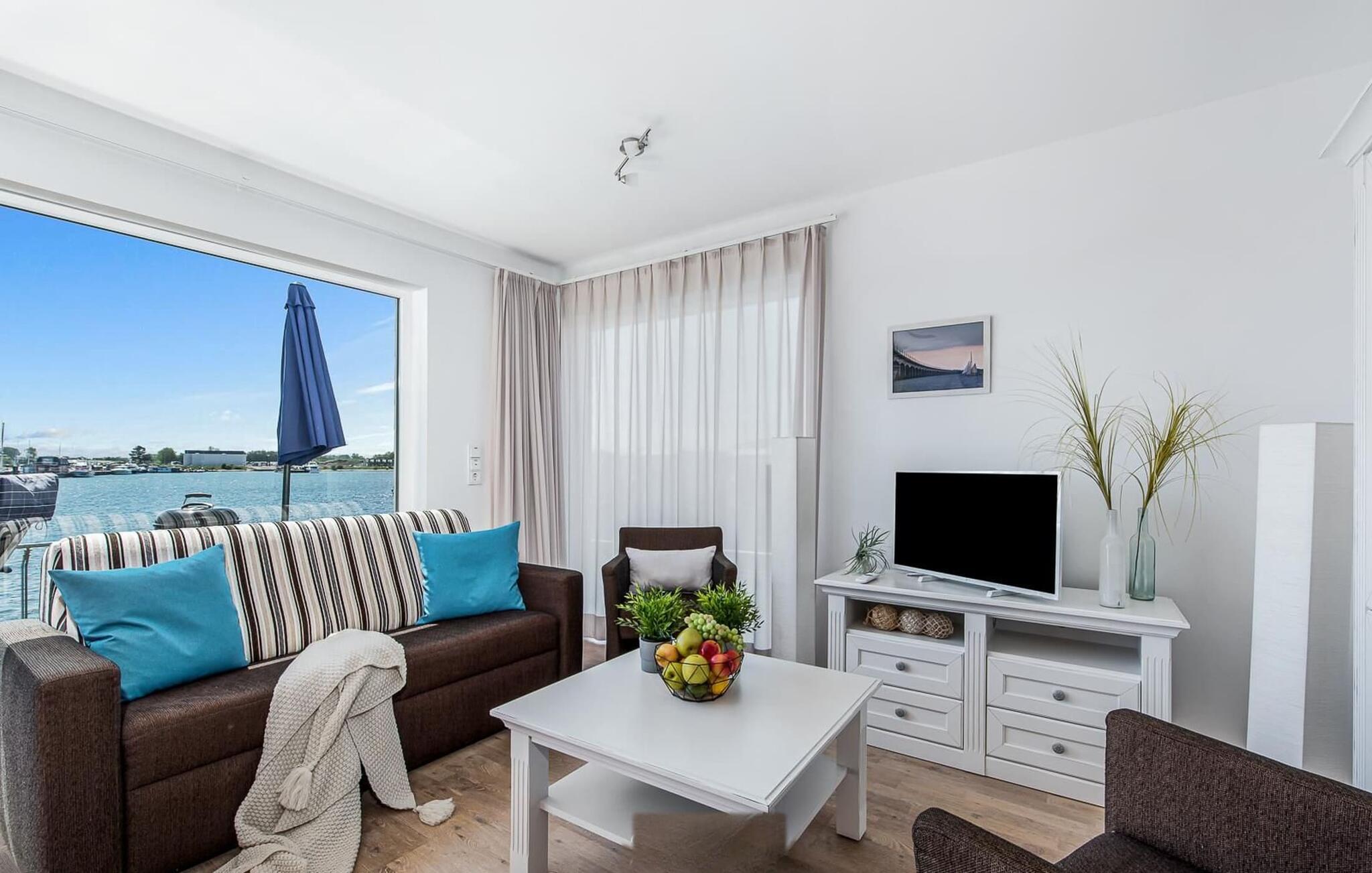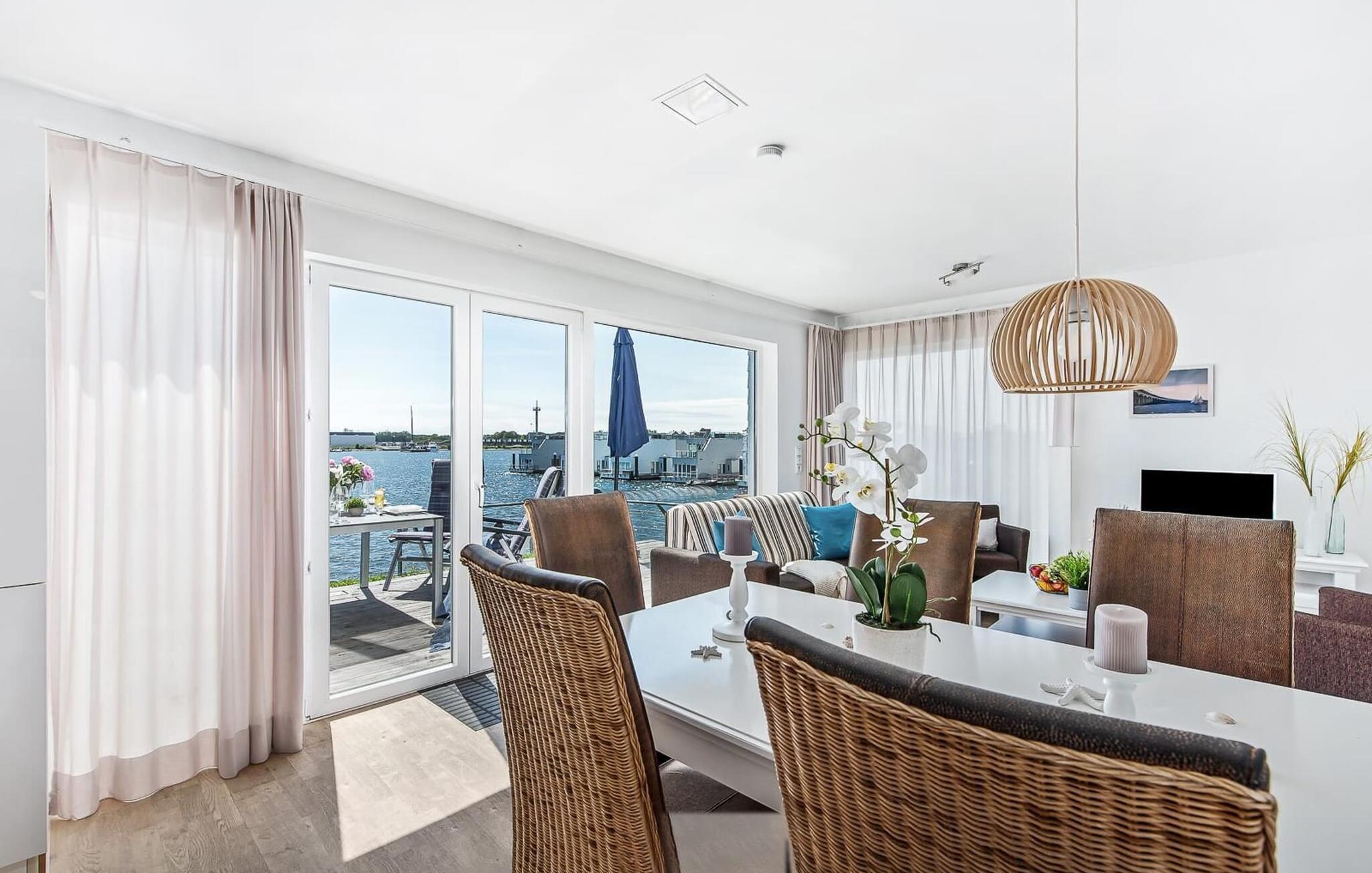 Traumhafte Aussichten eröffnen sich aus dem Wohn- und Essbereich und auf der angrenzenden Terrasse mit Blick über die Marina. Hafenkino sorgt hier für Unterhaltung während eines geselligen Grillabends oder romantischen Candle-Light-Dinners.