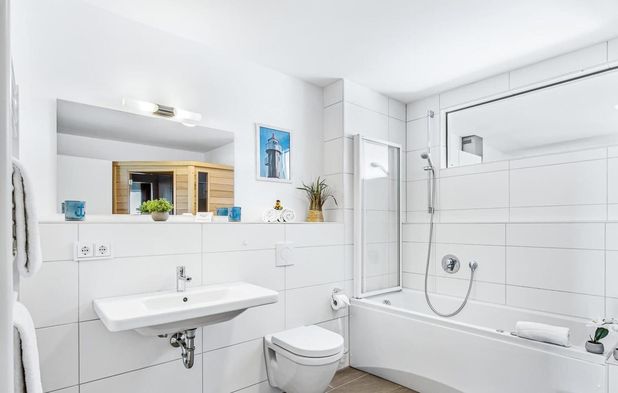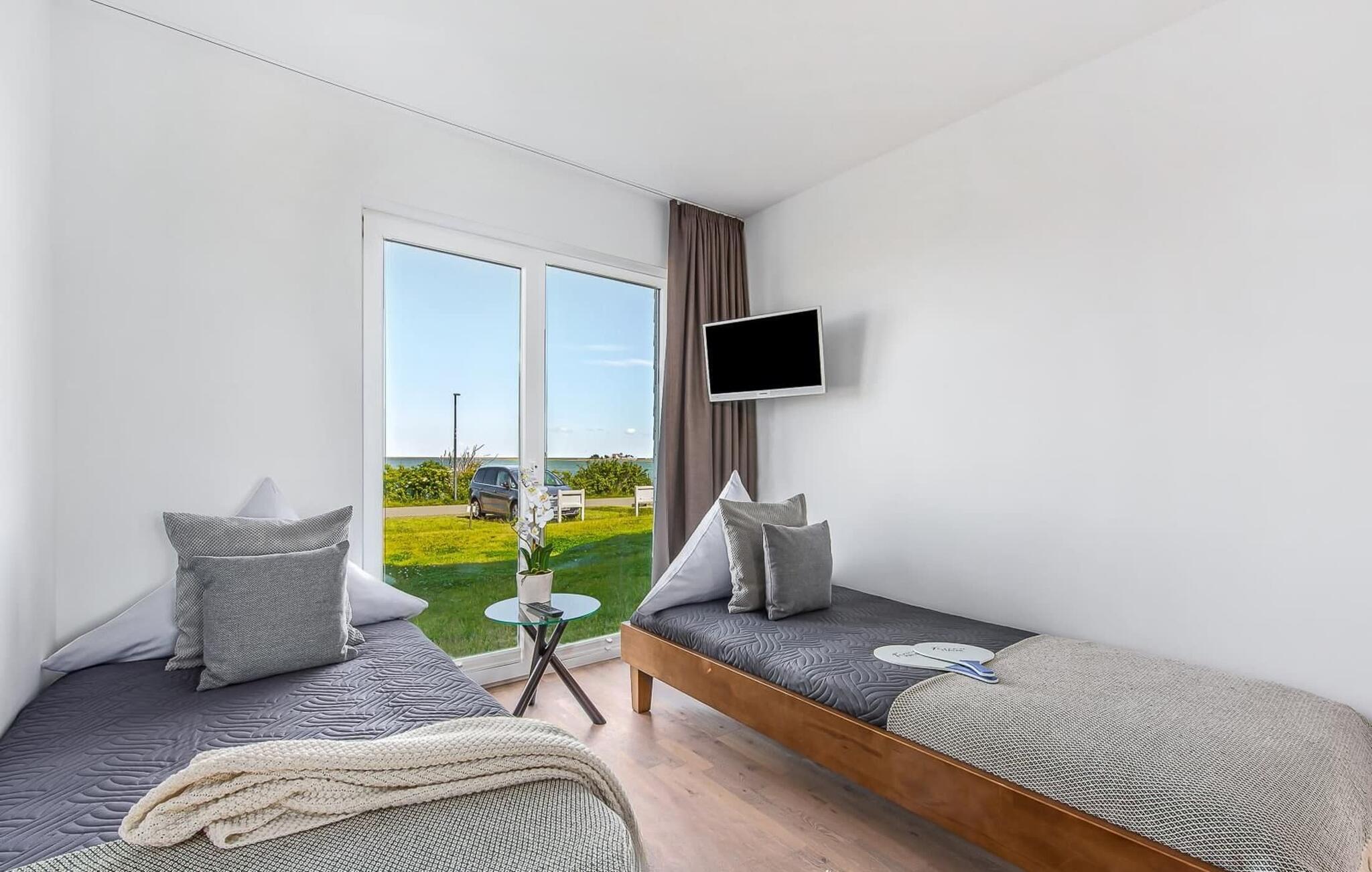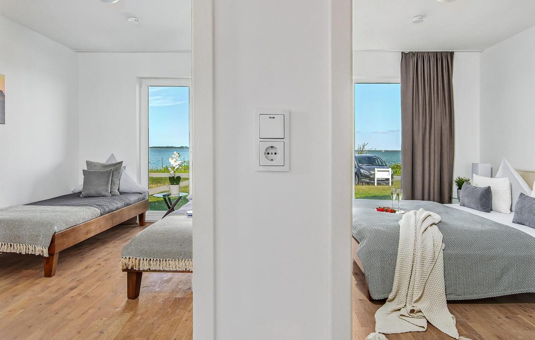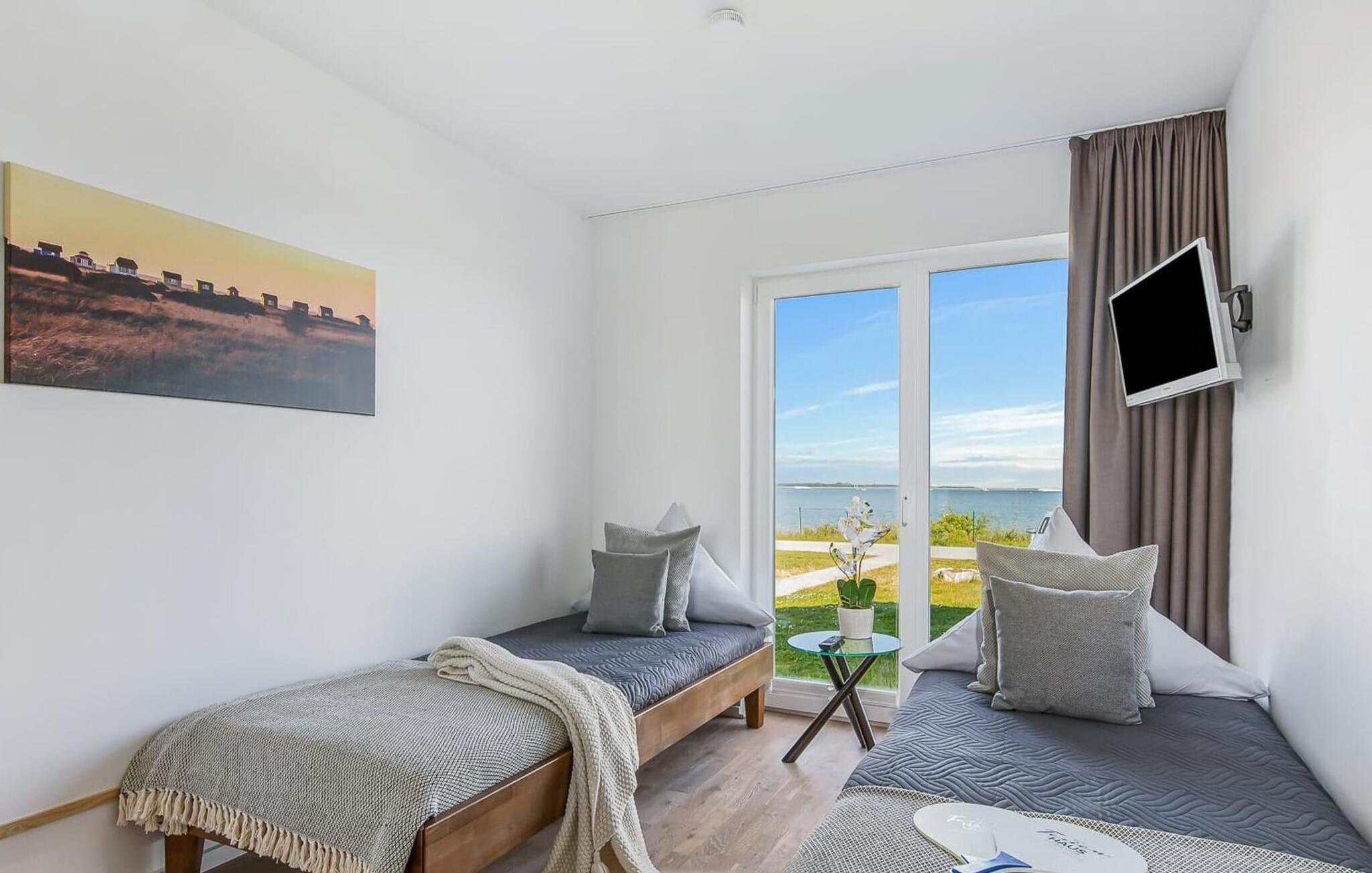 Erleben Sie eine exklusive Ferienwohnung mit traumhaftem Wasserblick, Infrarotsauna und Whirlpool im OstseeResort Olpenitz.