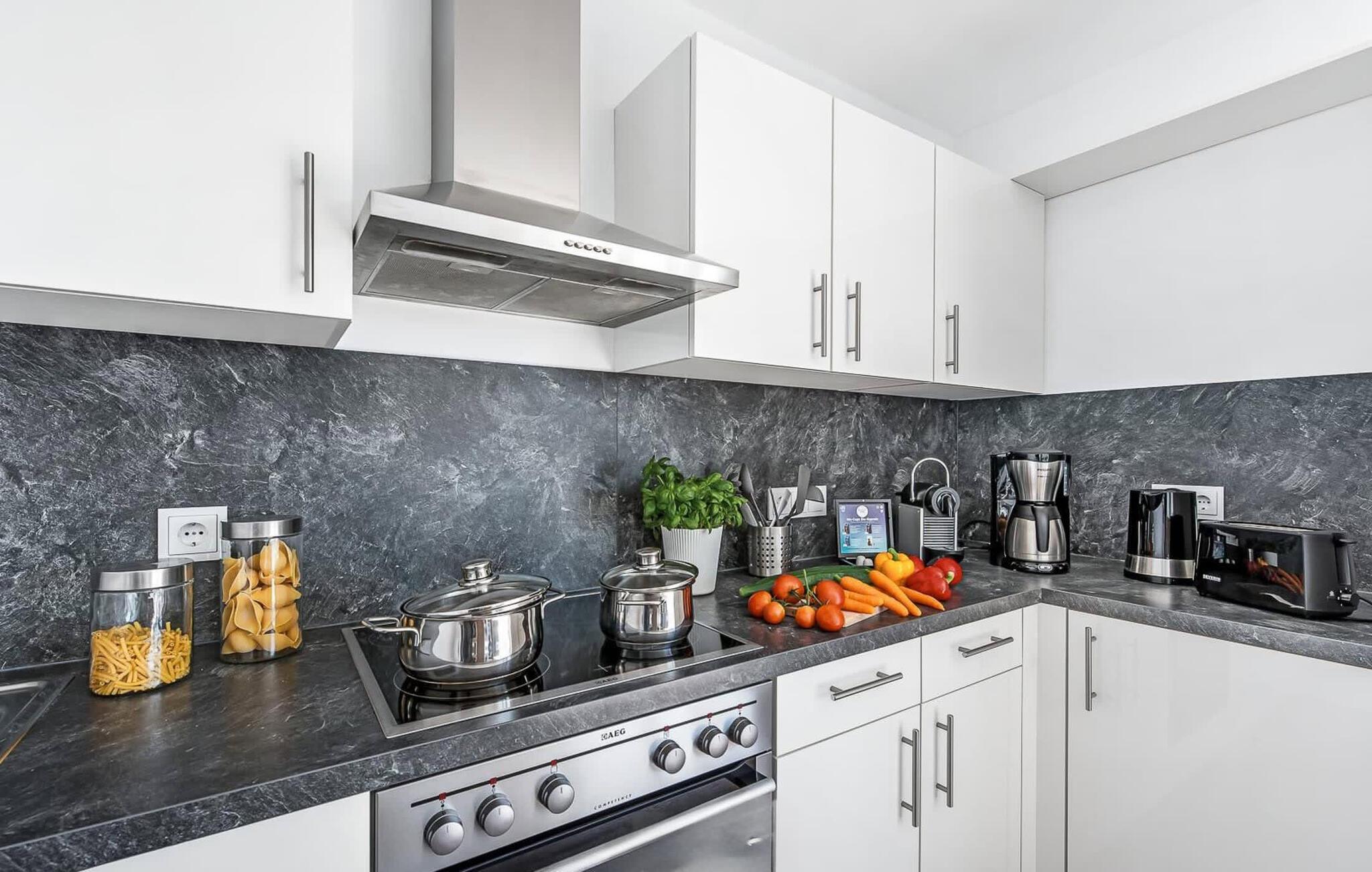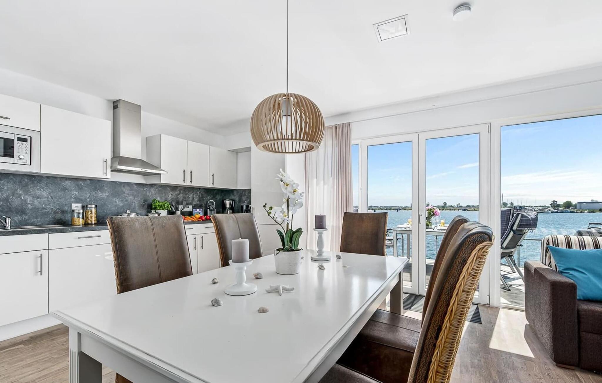Im Urlaub ist Zeit für kreatives Kochen, die rundum ausgestattete Wohnküche lässt hierbei keine Wünsche offen. Frühstücken direkt am Wasser, Urlaubsfeeling pur.