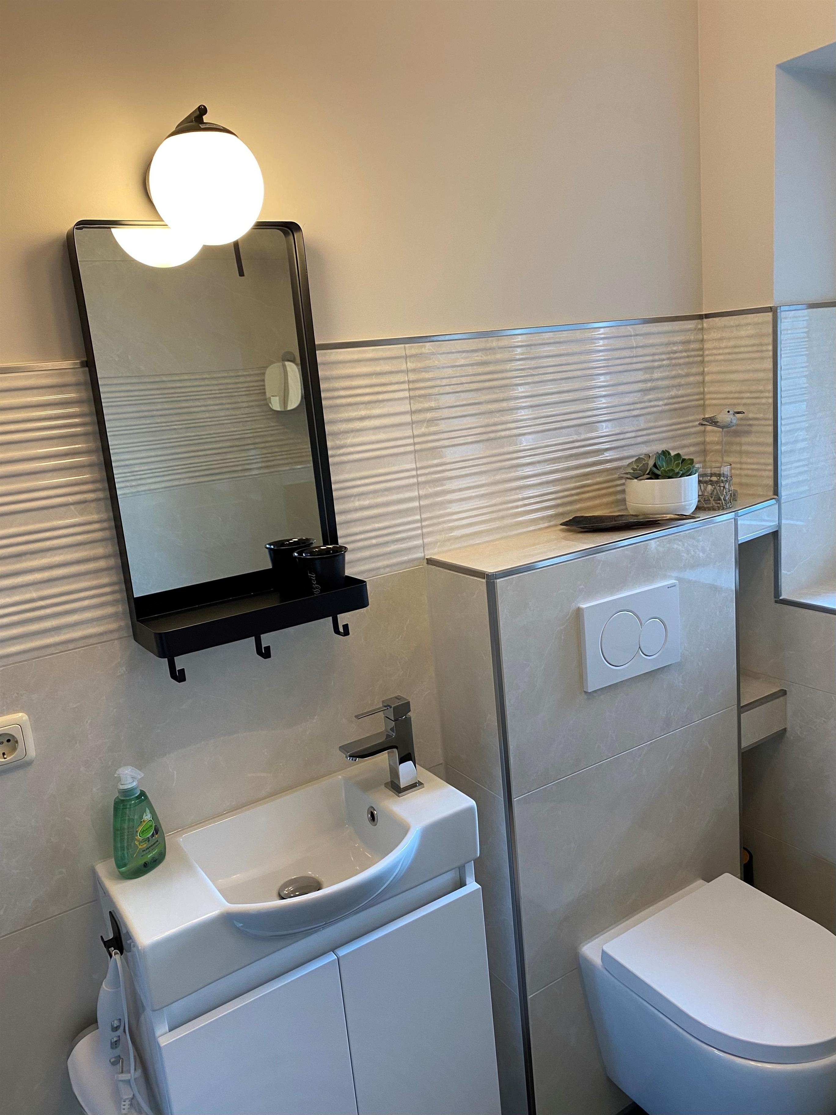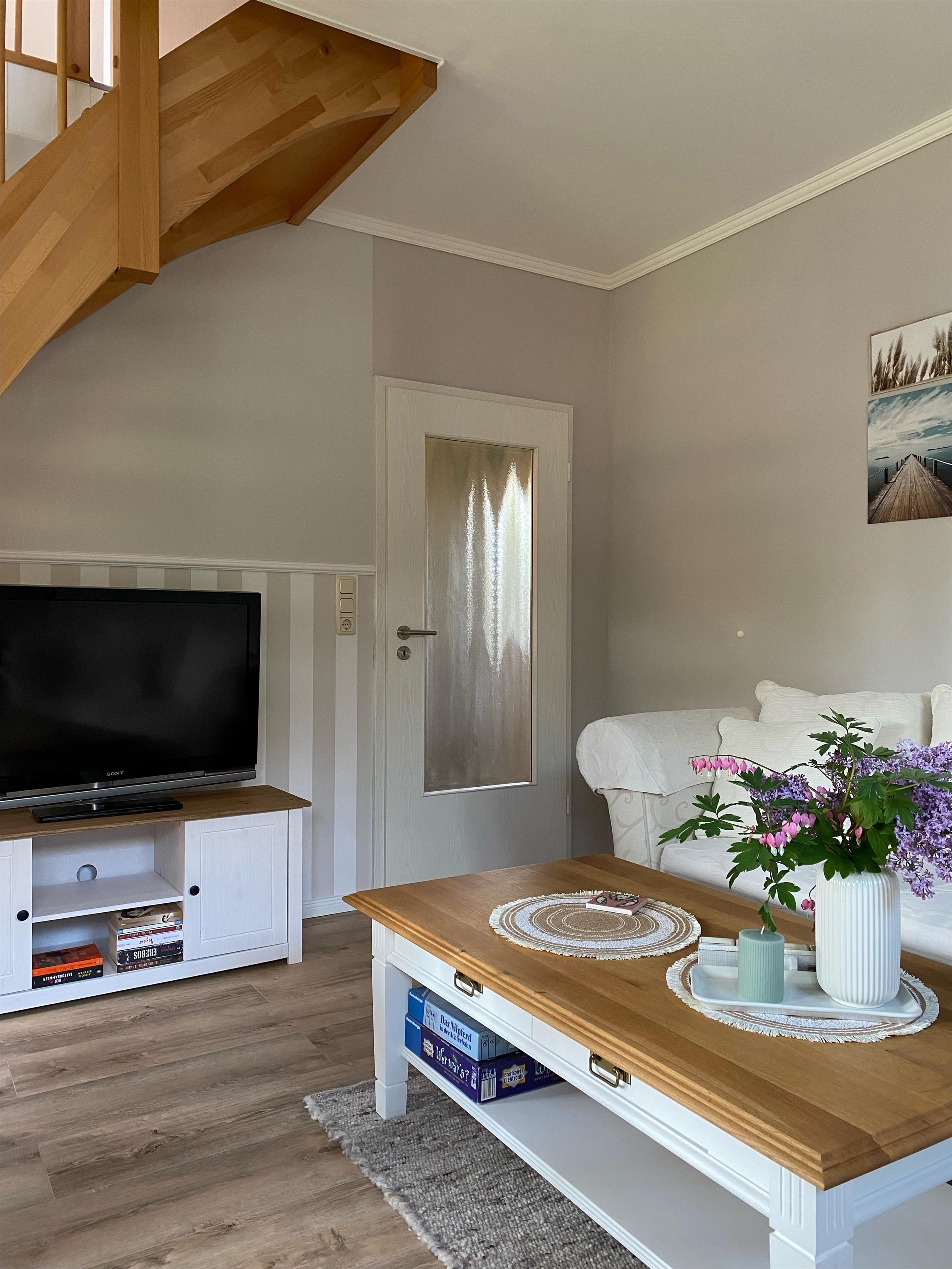 Die Ferienwohnung befindet sich in einer Einliegerwohnung des Einfamilienhauses und wurde 2023 komplett saniert. Mit 60qm auf zwei Etagen verteilt eignet sich die Wohnung für 2-3 (max. 4) Personen. Die Ferienwohnung hat einen separaten Eingang und eine eigene Terrasse mit Grillmöglichkeit. Die Ferienwohnung ist hell, modern und auf dem Stand der Zeit. Sie verfügt über zwei separate Schlafräume. Ein Schlafzimmer mit einem Doppelbett (160x200) und ein Schlafzimmer mit einem ausziehbaren Tagesbett. Des Weiteren verfügt die Ferienwohnung über eine voll ausgestattete Küche, angrenzend an einen Wohn- und Essbereich mit einer gemütlichen Sitzgruppe und einem TV-Gerät. Sowie zwei Bäder. Das Badezimmer im EG ist mit einer begehbaren Dusche ausgestattet. Das Bad im OG mit WC und Waschtisch. Unsere sonnige Terrasse ist mit einem Steingrill und Gartenmöbeln bestückt. Der Garten kann mitbenutzt werden. Einkaufsmöglichkeiten wie Edeka-Markt, Bäcker, Apotheke und Restaurants sind fußläufig zu erreichen.