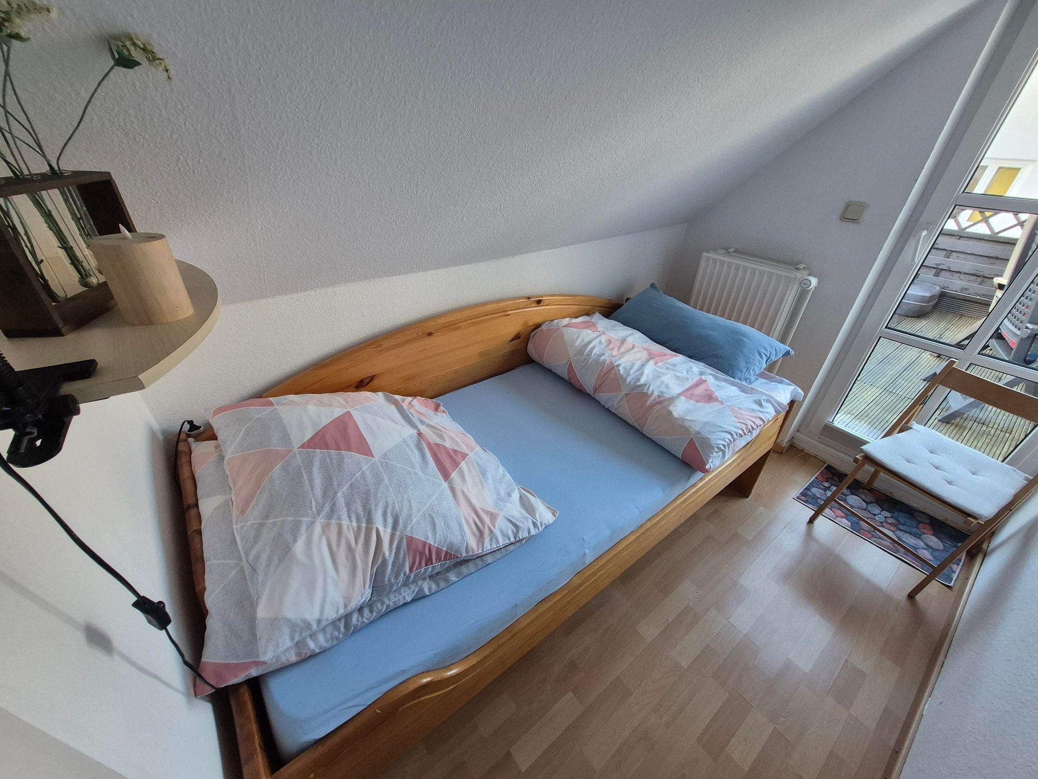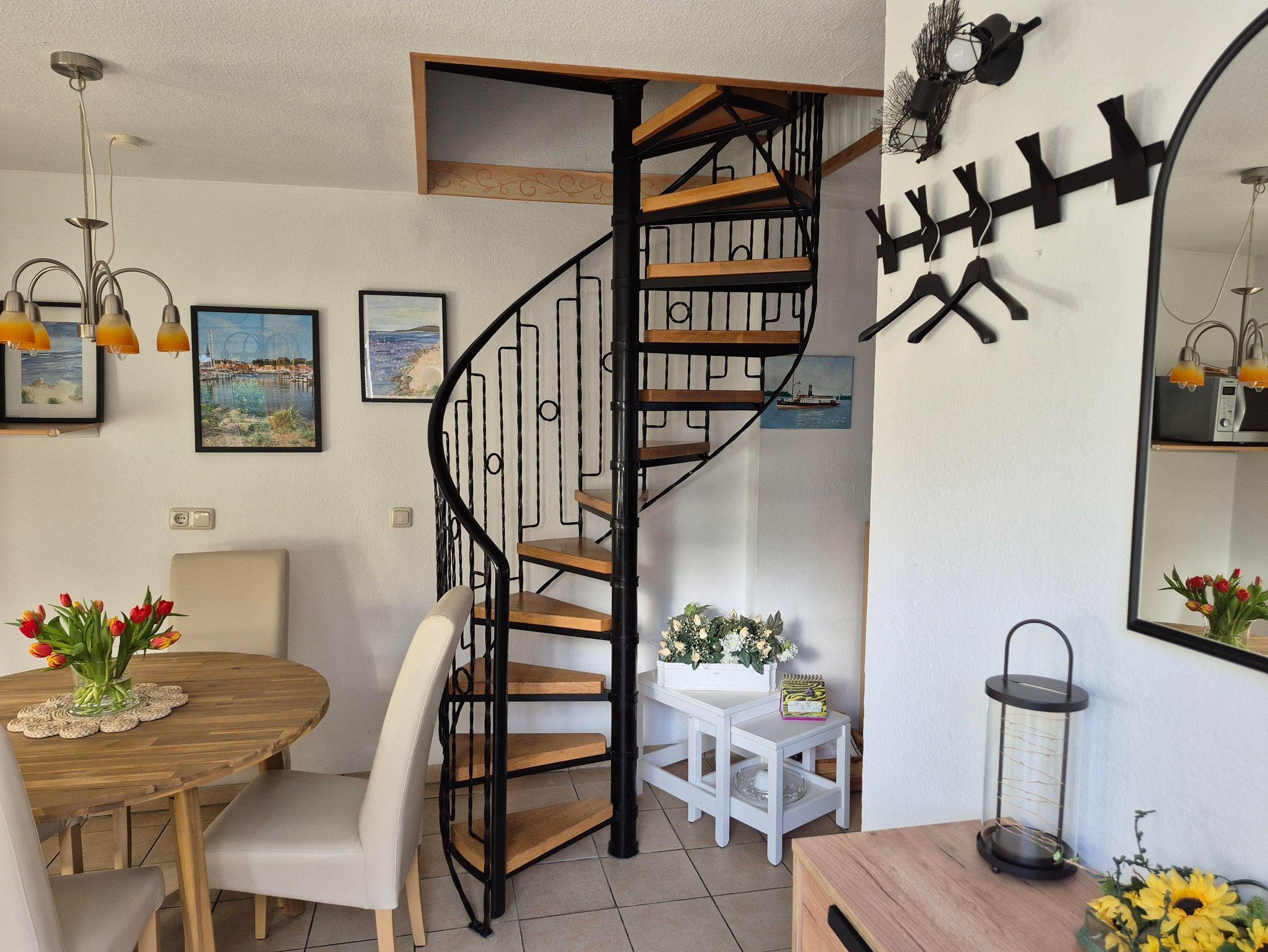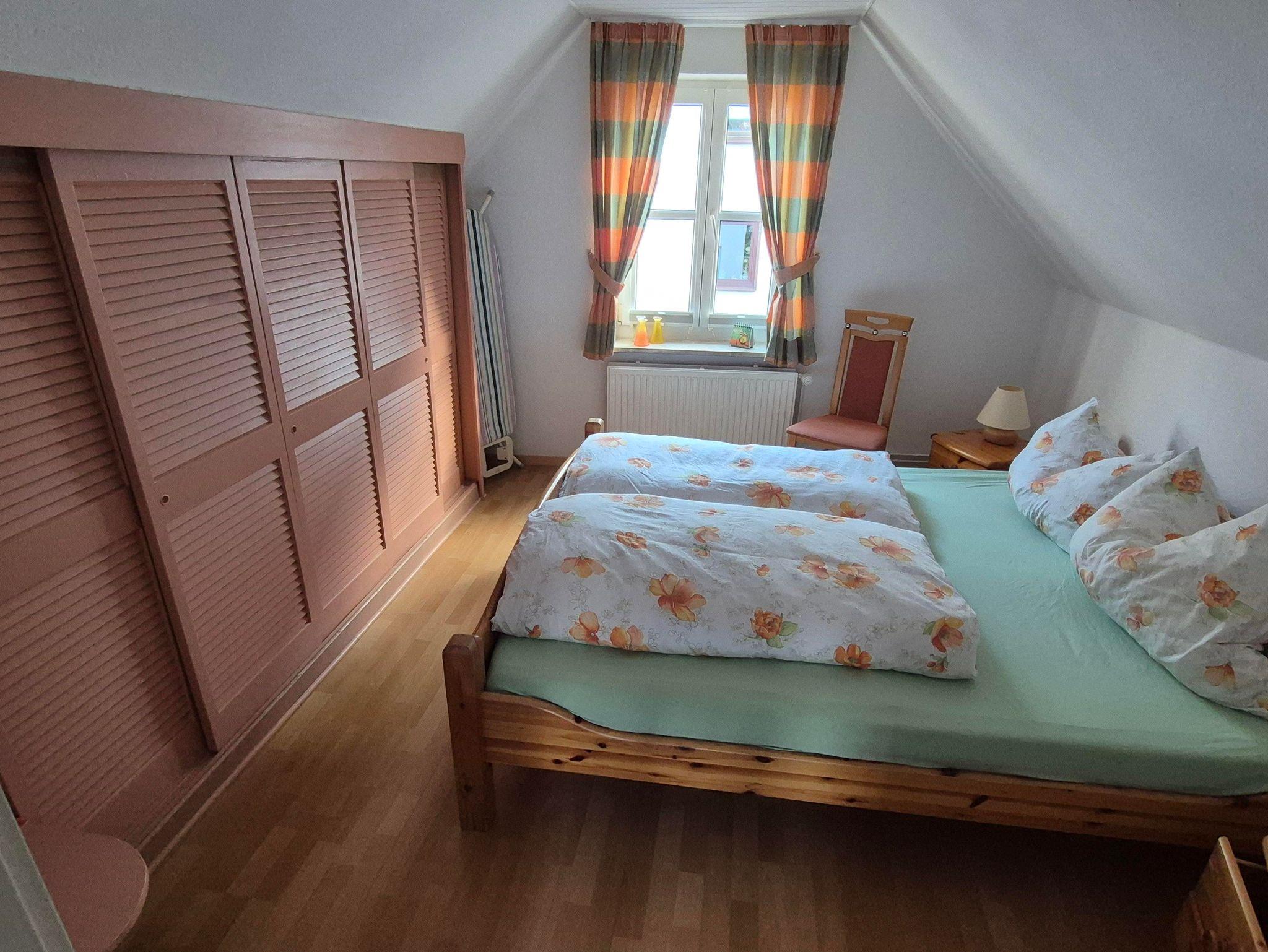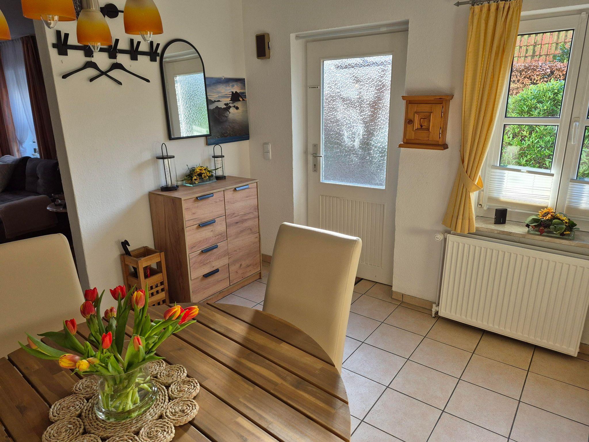 Das Ferienhaus ist 64 qm groß, über zwei Etagen verteilt und ist über einen seperaten Eingang erreichbar.Zur Verfügung stehen Ihnen zwei Schlafräume, 1 Doppelbett und ein Einzelbett, sowie auch eine Schlafgelegenheit für zwei Personen im Wohnraum, eine ausgestattete Wohnküche ( mit Mikrowelle, Wasserkocher, Kaffeemaschine etc.), ein Badezimmer, WC mit Dusche Föhn, Waschmaschine und Wäschetrockner. Ebenfalls steht Ihnen eine Dachterrasse mit Gartenmöbel zur Nutzung zur Verfügung sowie ein überdachter Pkw-Stellplatz.