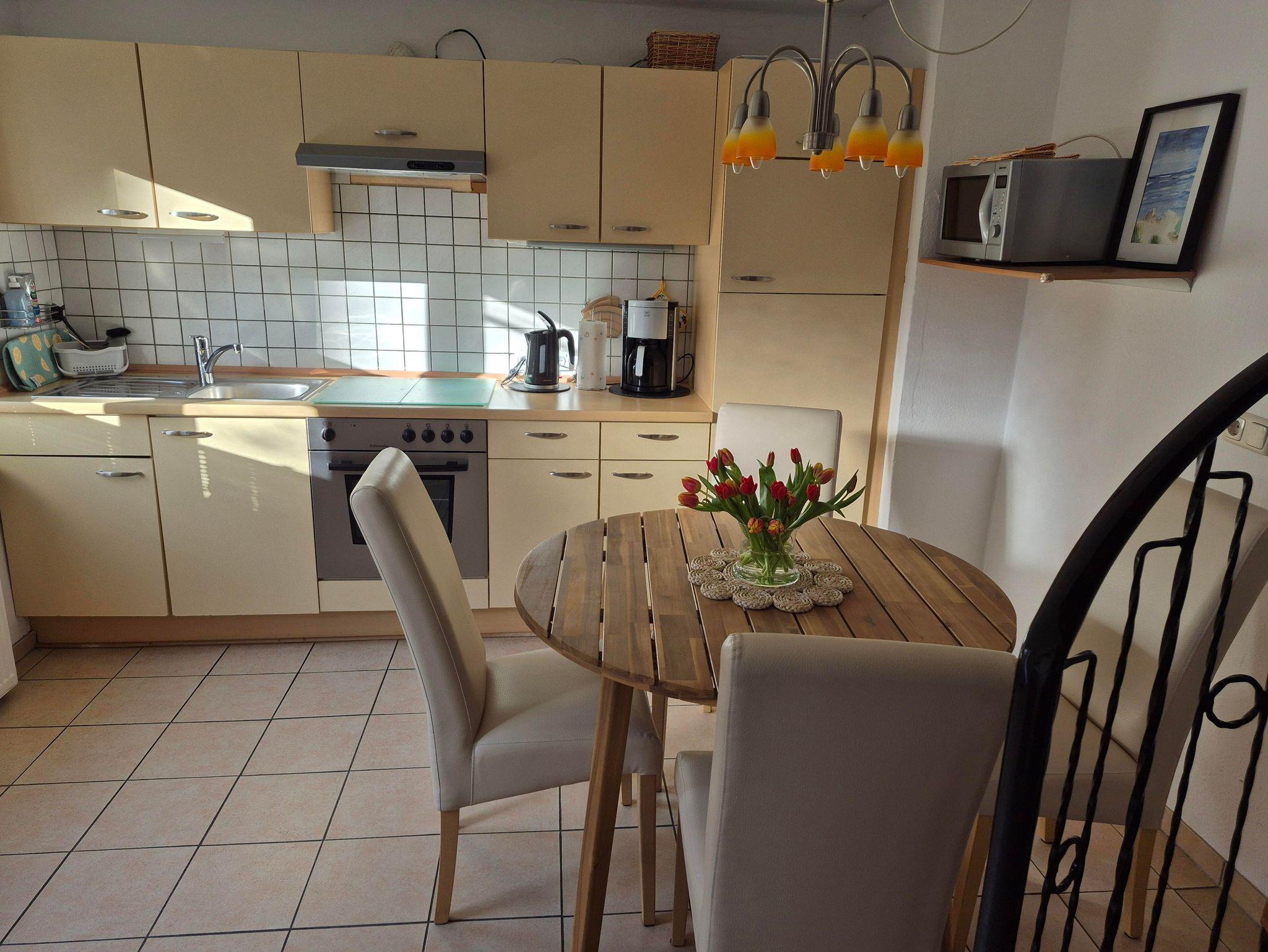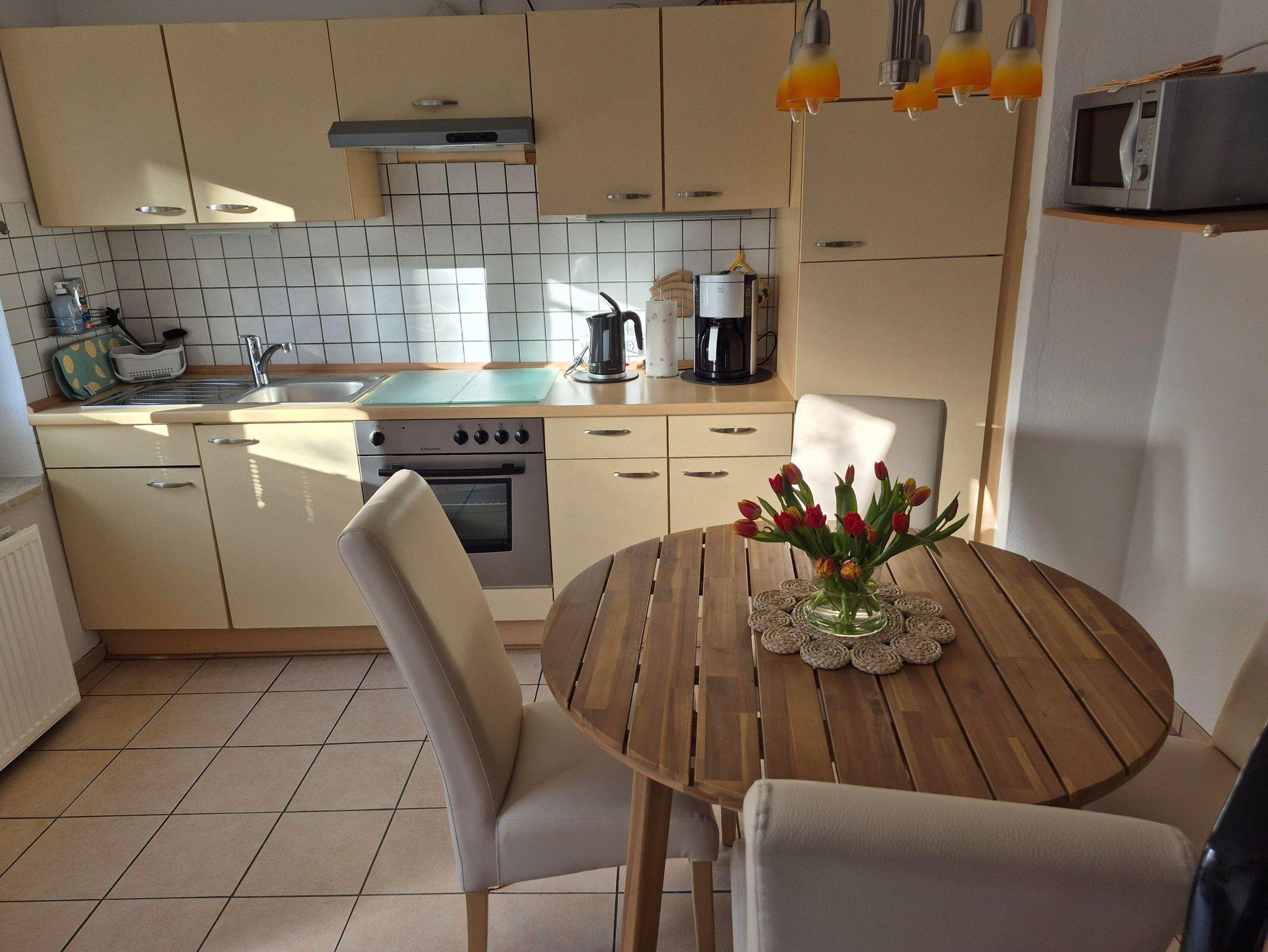 Gemütliches Ferienhaus in Flensburg mit Dachterrasse, moderner Küche und Parkplatz, ideal für Familien und Haustierfreunde.