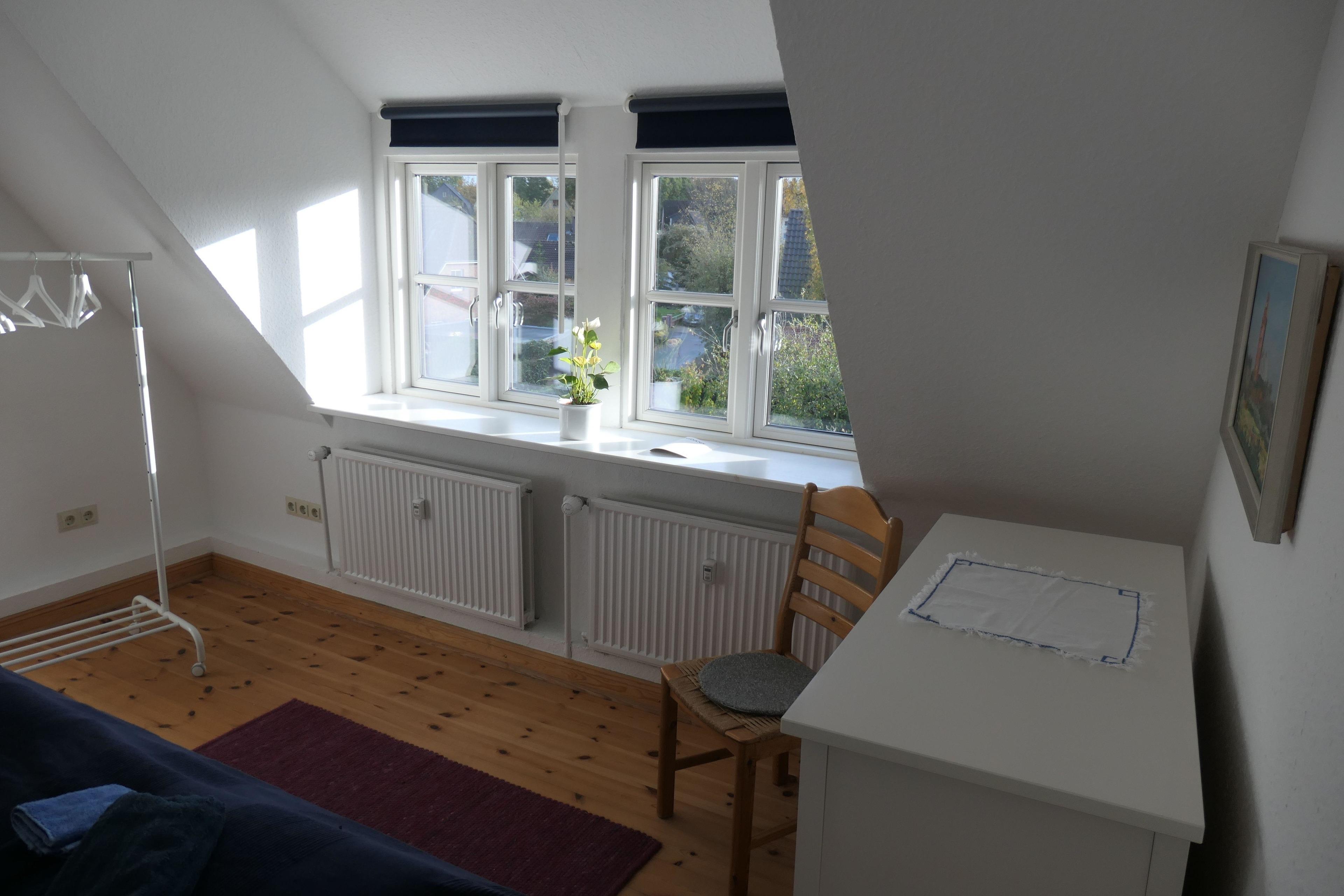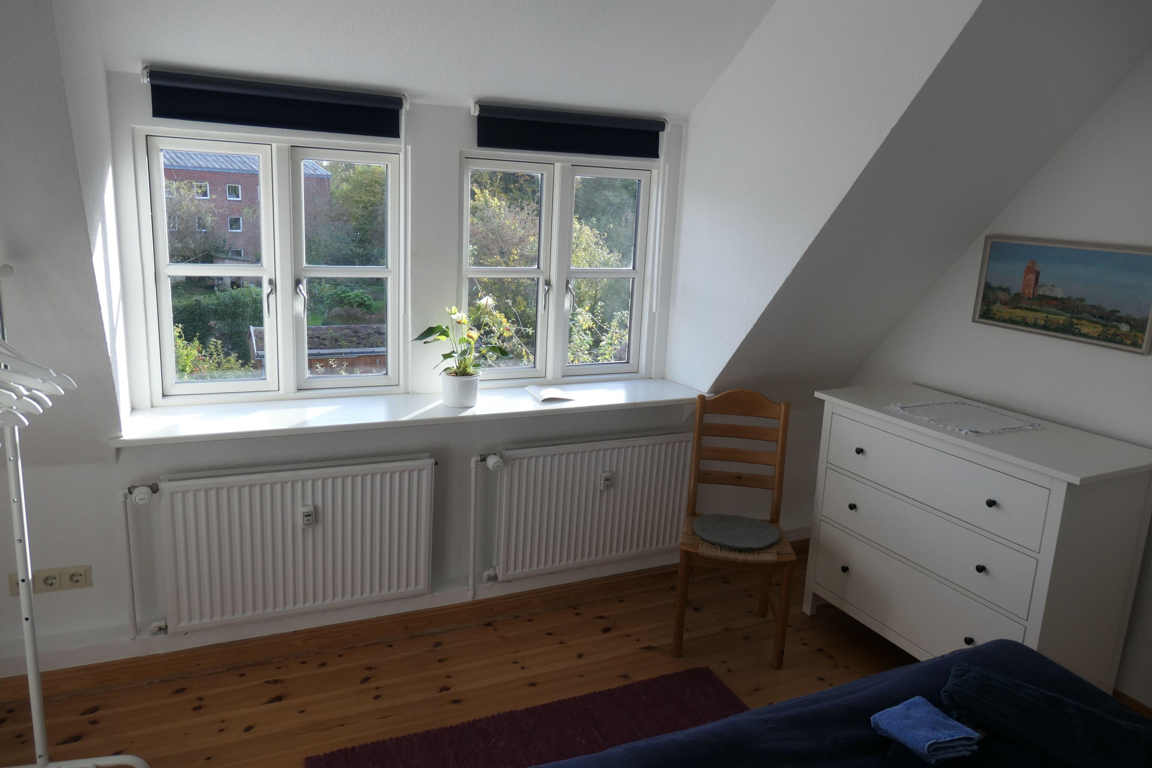 Die Ferienwohnung hat ein besonderes Flair durch die Giebel, die dänischen Sprossenfenster, die Holzdielen und den schönen Blick ins Grüne.