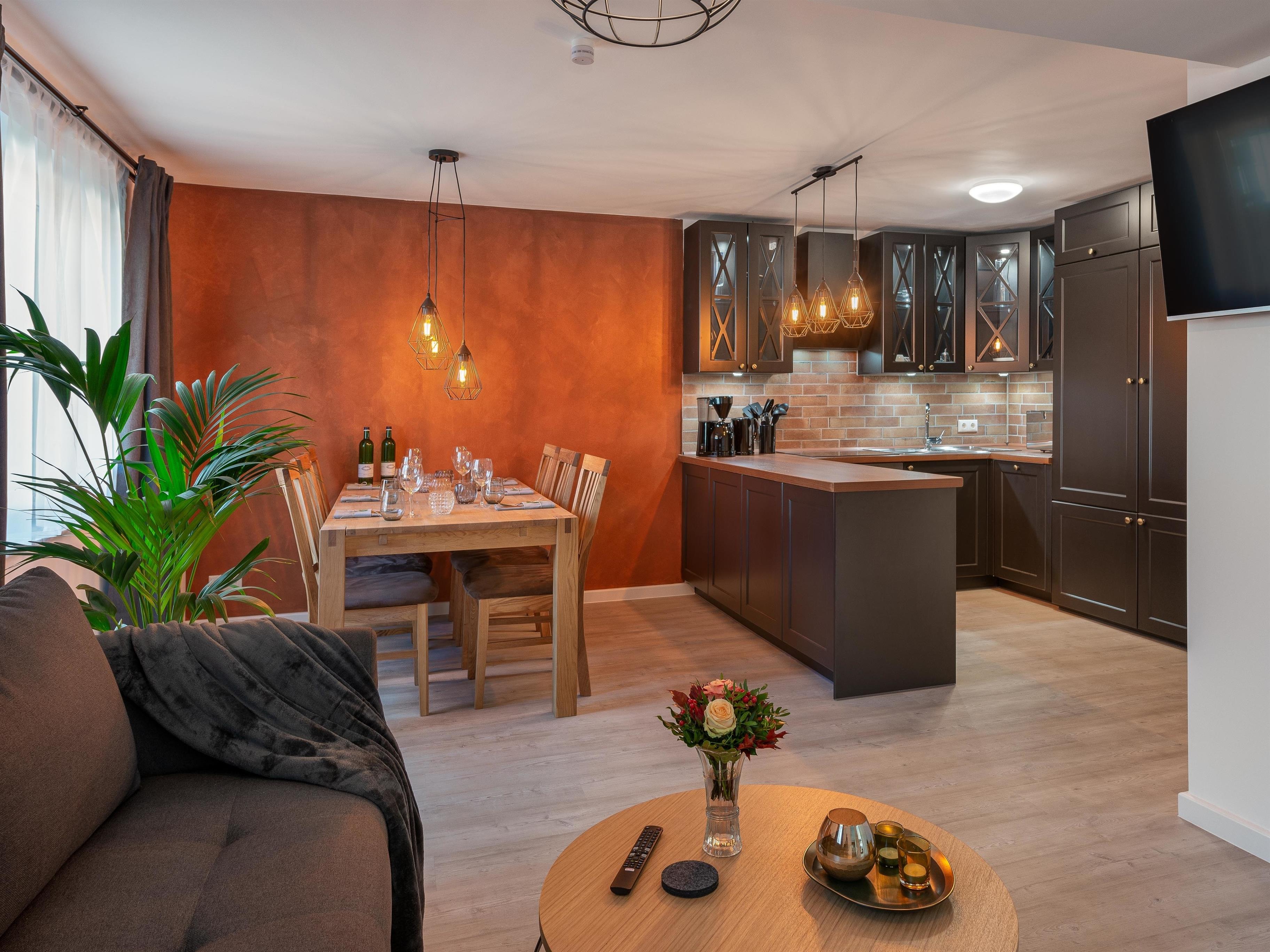 Die rundum modernisierte Ferienwohnung bietet eine moderne Einrichtung mit offener Wohnküche, einen geräumigen Wohn- und Essbereich, zwei Schlafzimmer und ein Badezimmer. Die Wohnung verfügt über ein Ehebett, zwei Einzelbetten und ein Schlafsofa.
