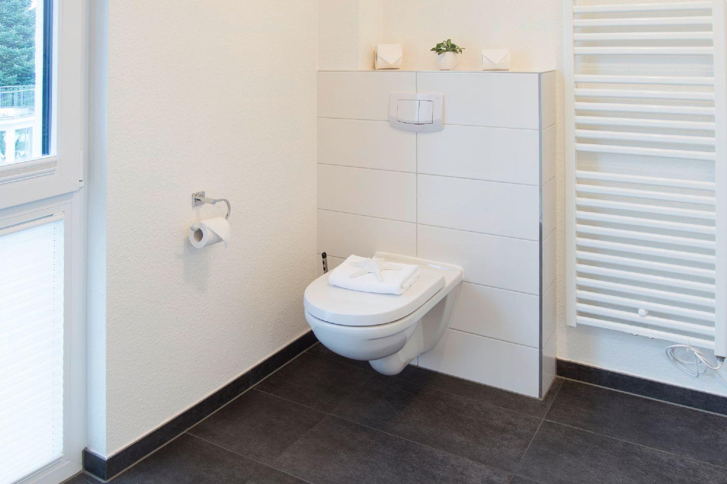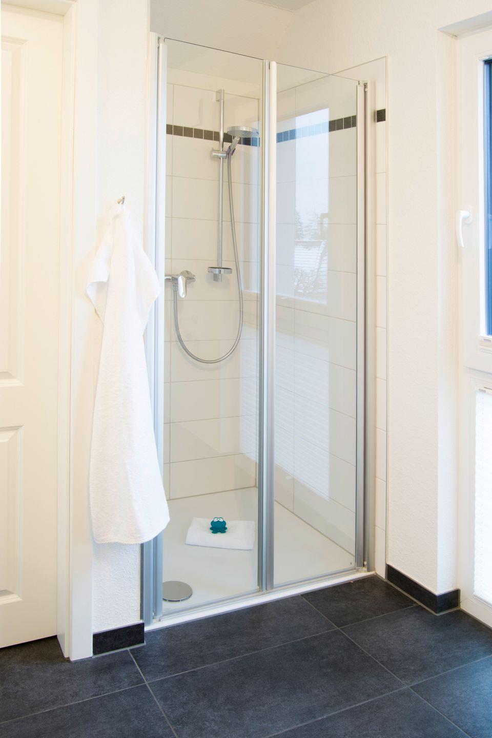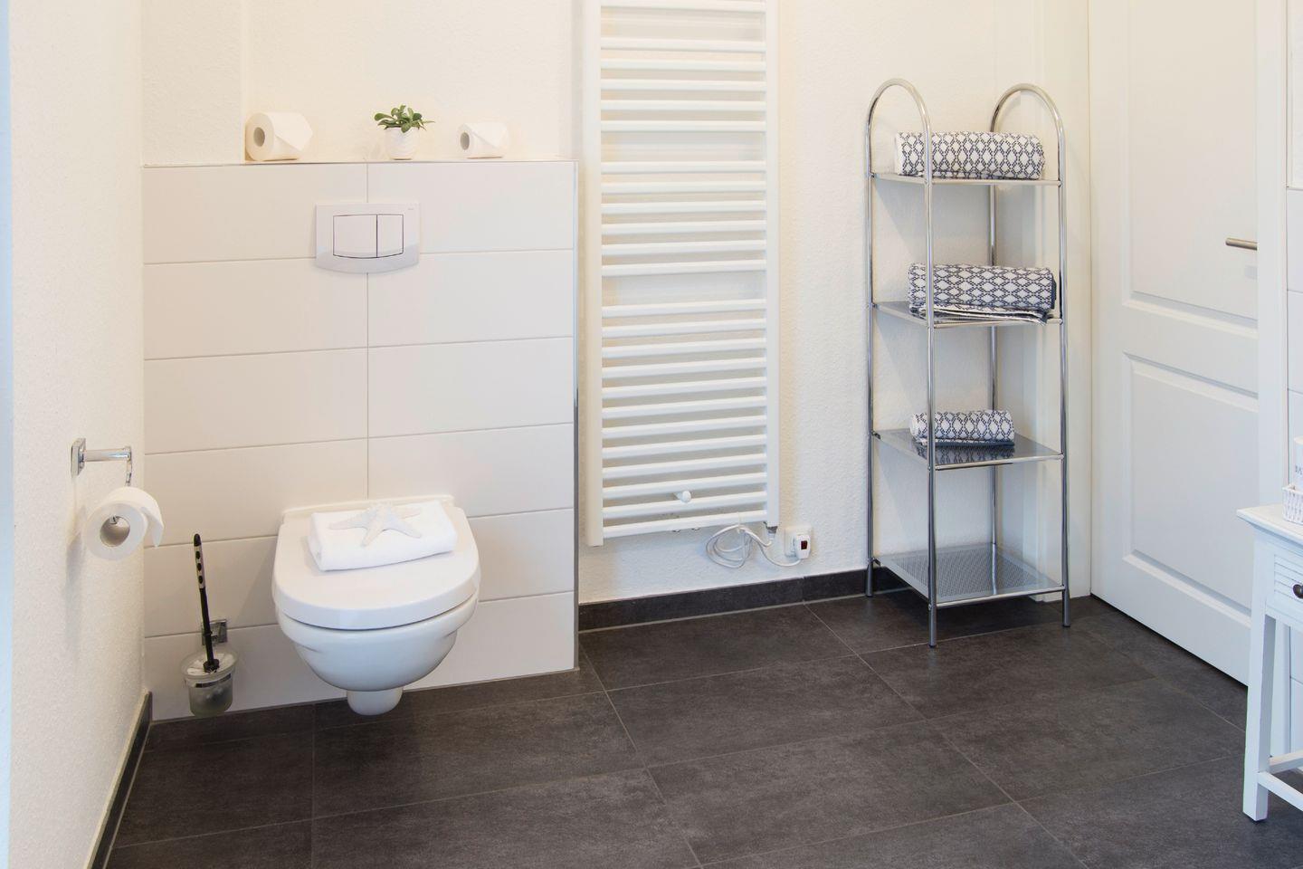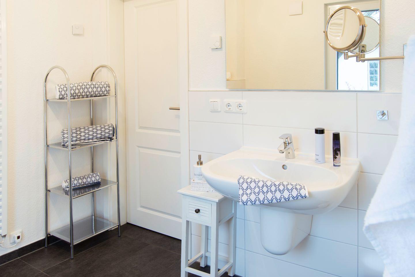 Das Badezimmer bietet Dir eine ebenerdige Dusche.