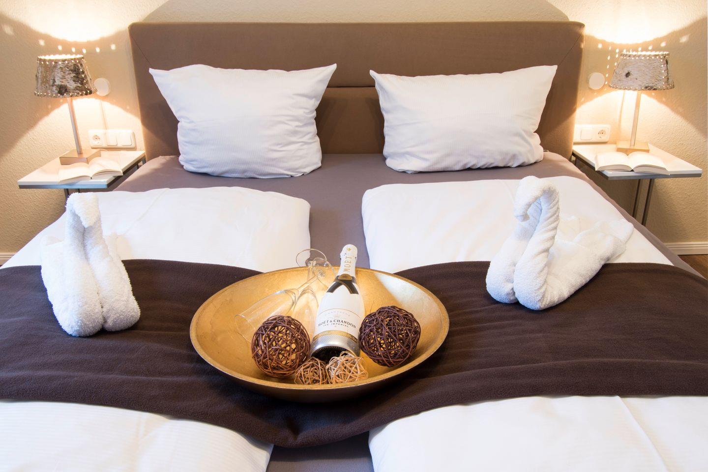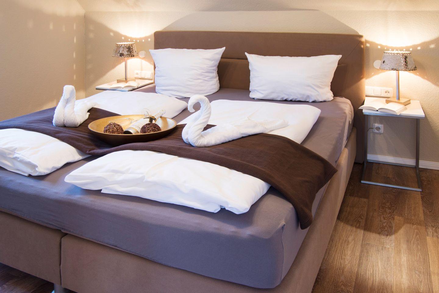 Das Schlafzimmer bietet Dir ein gemütliches Doppelbett (180x200 cm) und zwei weitere Personen finden auf dem Schlafsofa im Wohnzimmer Platz.