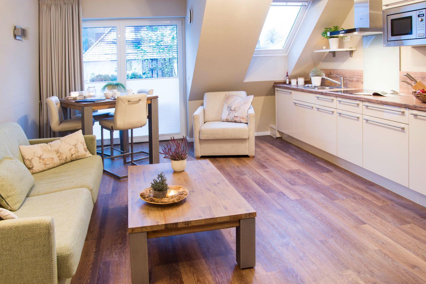 Fördewald bietet Platz für insgesamt 4 Personen, von denen 2 im Schlafzimmer mit Doppelbett und 2 weitere auf einer hochwertigen Funktionscouch im Wohnzimmer schlafen können. Der kombinierte Wohn- und Essbereich mit einer modernen, offenen Einbauküche, hat einen Zugang zum Balkon. Die komplette Wohnung verfügt über eine Fußbodenheizung.