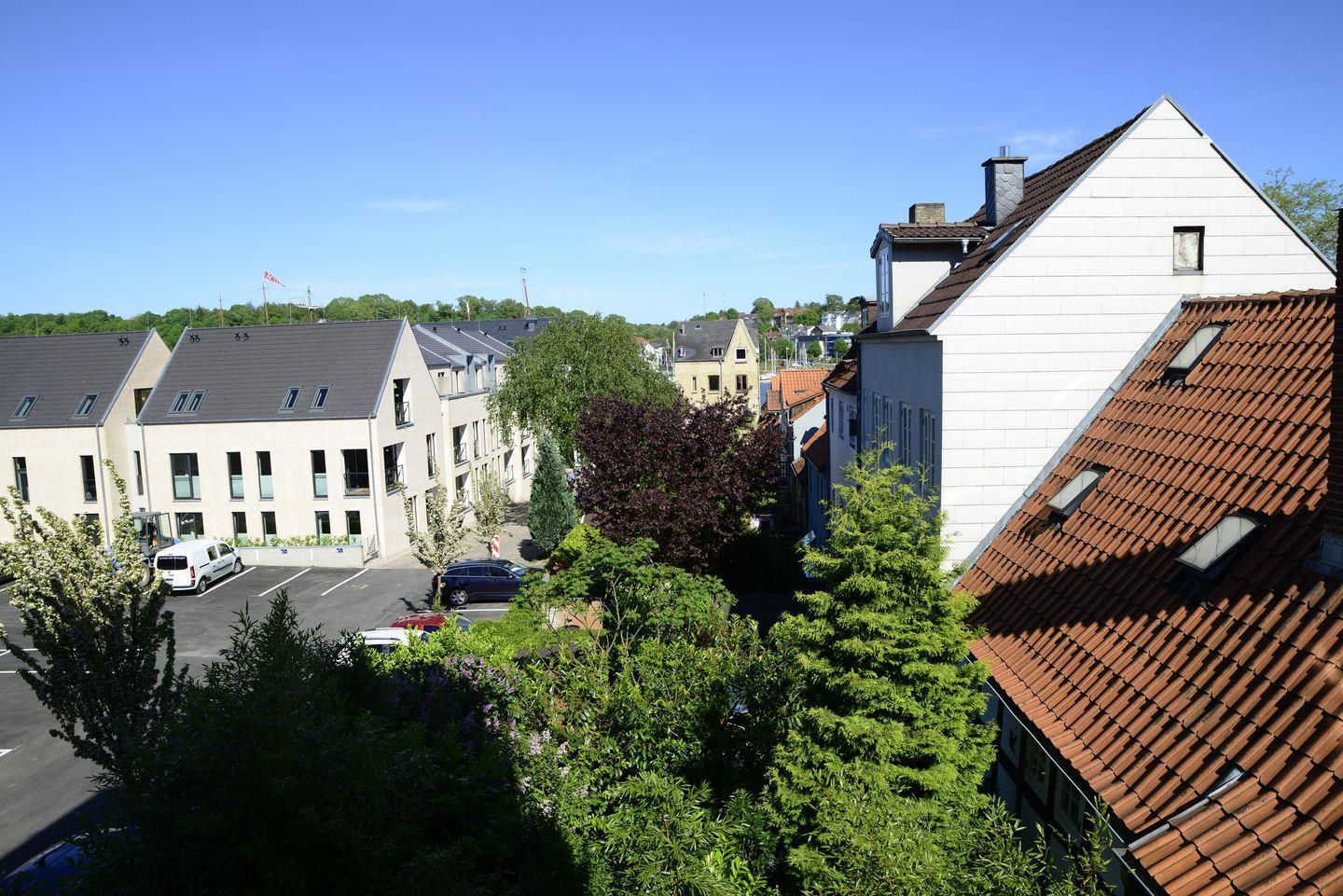 Elegante Altbauwohnung "Albatros" mit Blick auf Flensburgs Norderstraße und modernem Komfort.